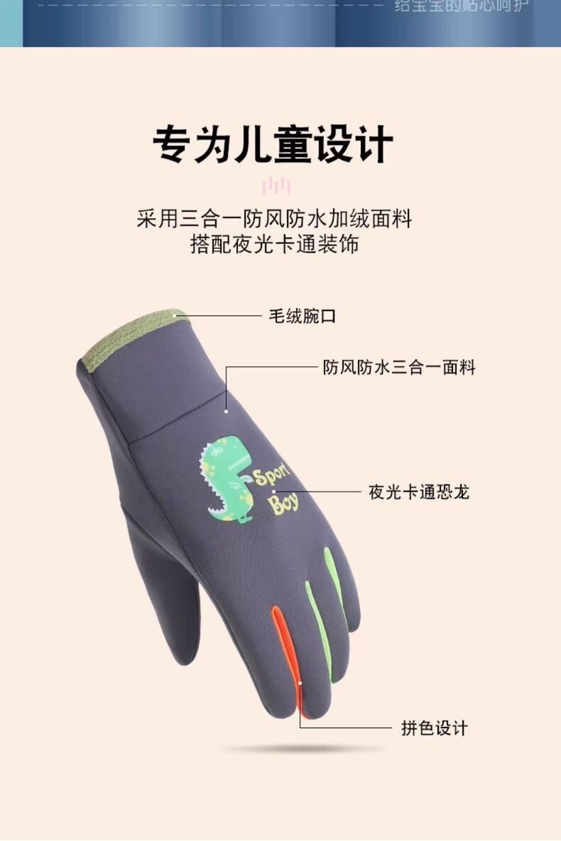 👉儿童卡通夜光运动保暖冬季防风防水手套