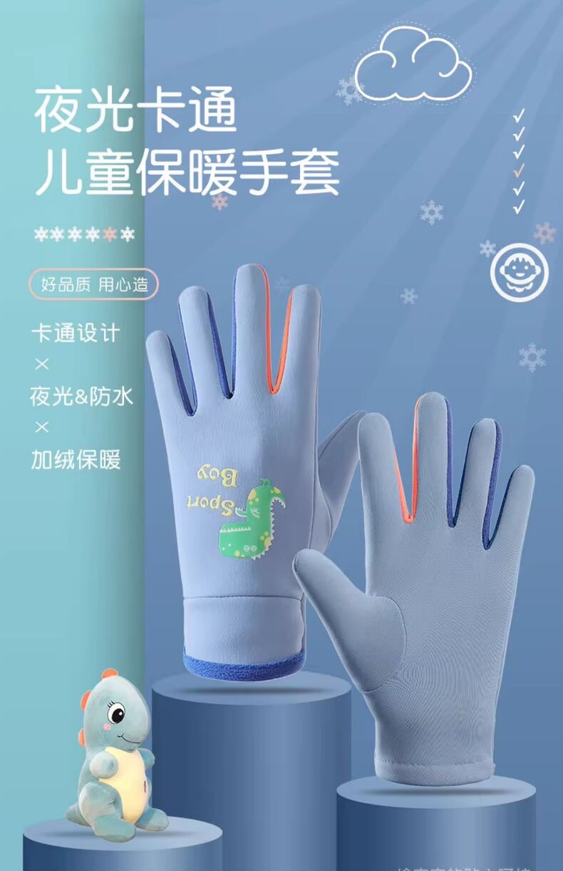 宝宝冬日小暖炉🔥超萌夜光保暖手套 守护我们宝宝的小手白白嫩嫩~ 👉儿童卡通夜光运动保暖冬季防风防水手套 最近温度下降,咱可不能委屈了宝宝的小手手🤲🏻 ✅ 三合一防风防水面料,聚水凝珠,自然滑落 ✅ 毛绒腕口,弹性不勒手冬天必入款 ✅ 夜光卡通图案设计,个性又醒目