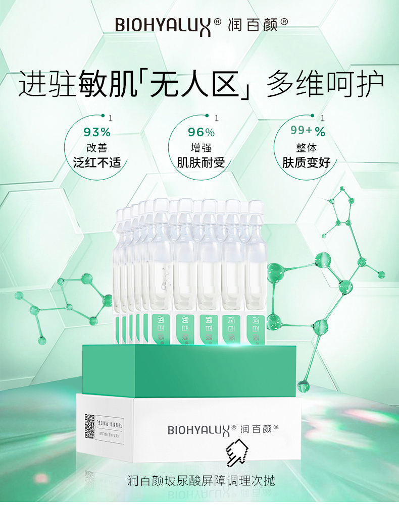 润百颜玻尿酸屏障调理次抛精华液(白纱布)30支/盒