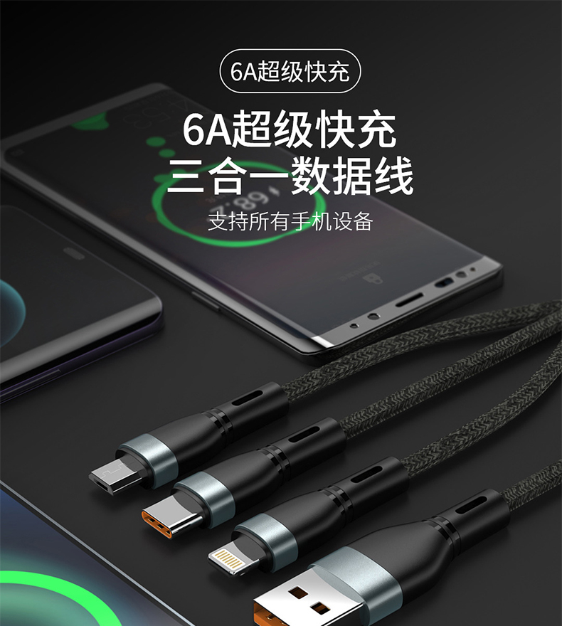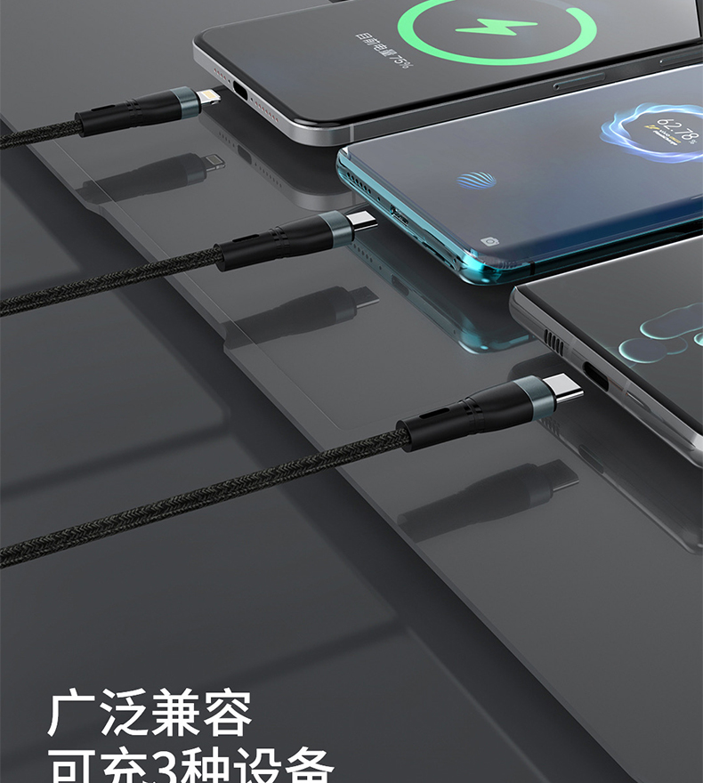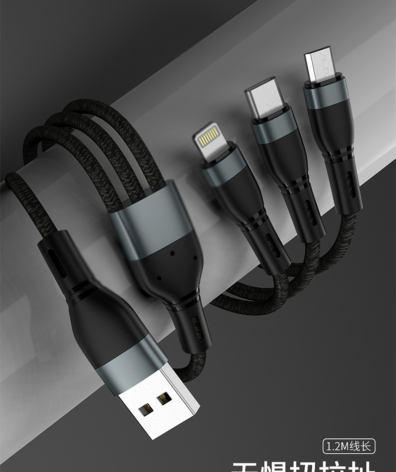 一分三线一拖三缝布编织数据线6闪充快充智能通用适用于苹果type-