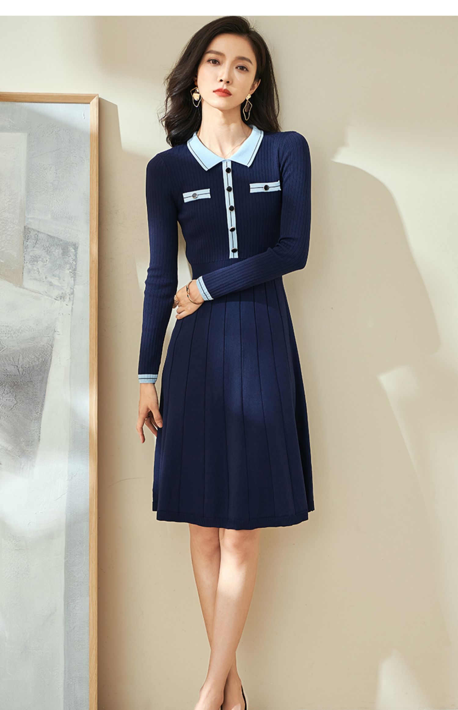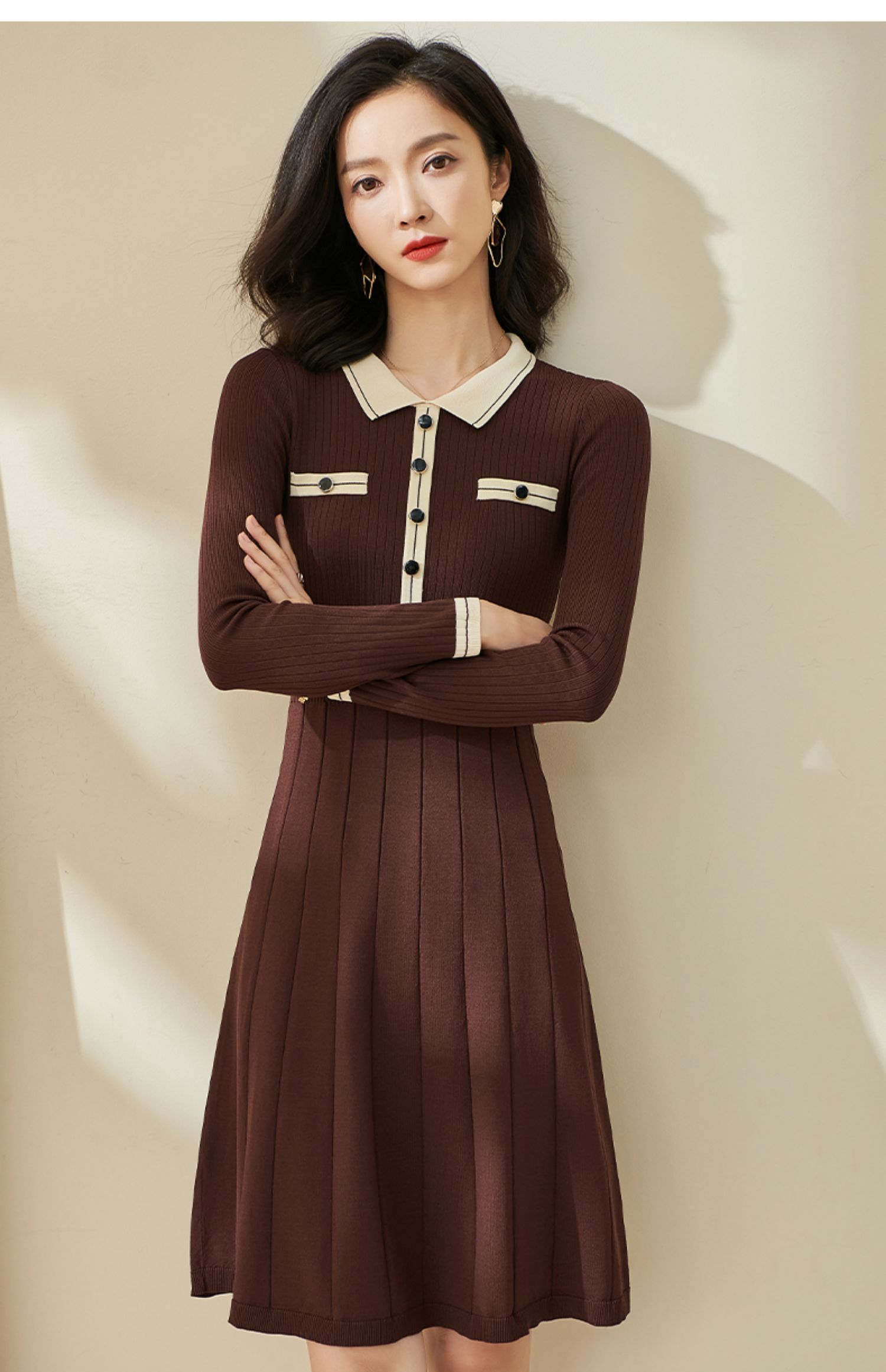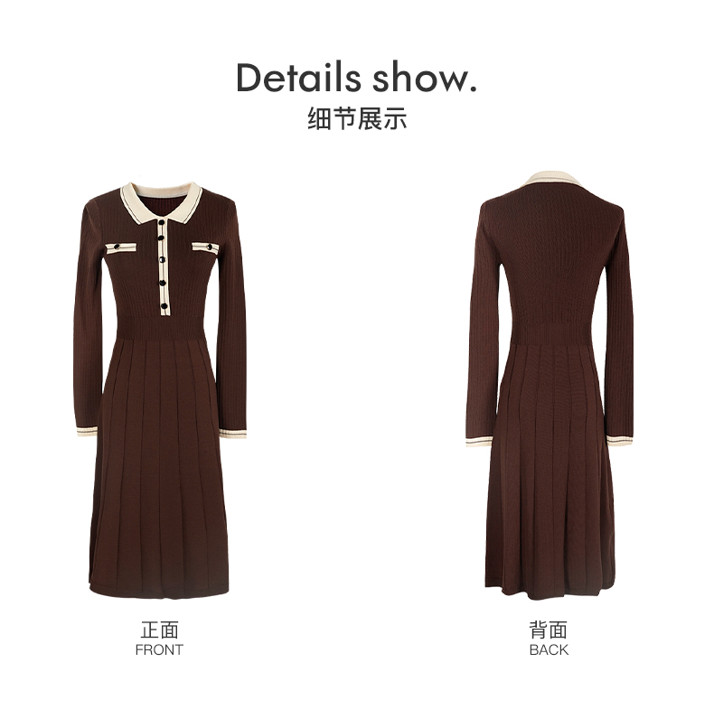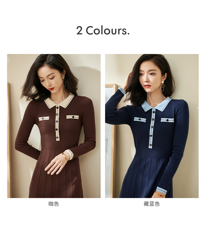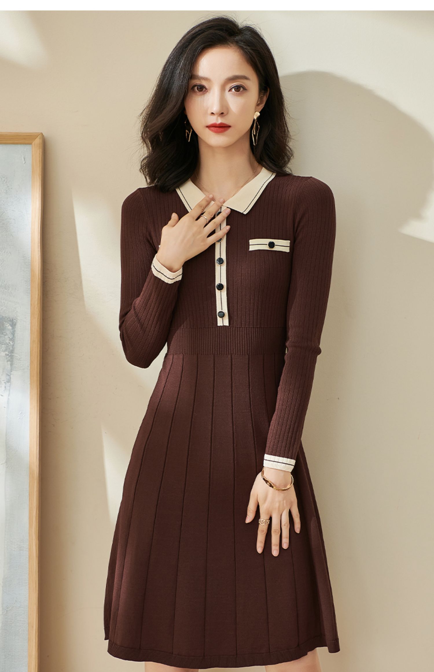剩S 米思阳修身裙子气质休闲时尚温柔风针织polo领a字版连衣裙秋1755