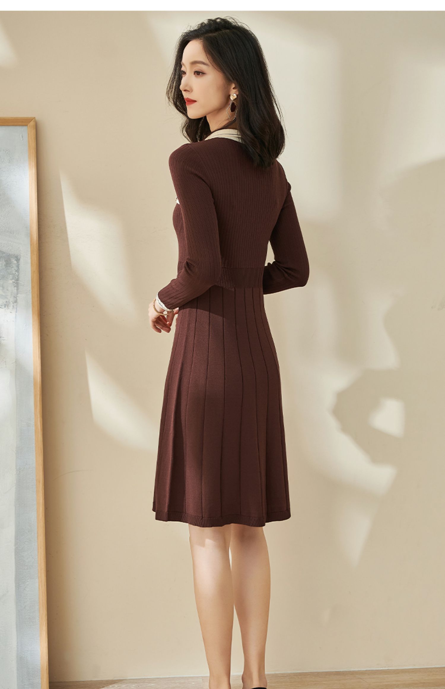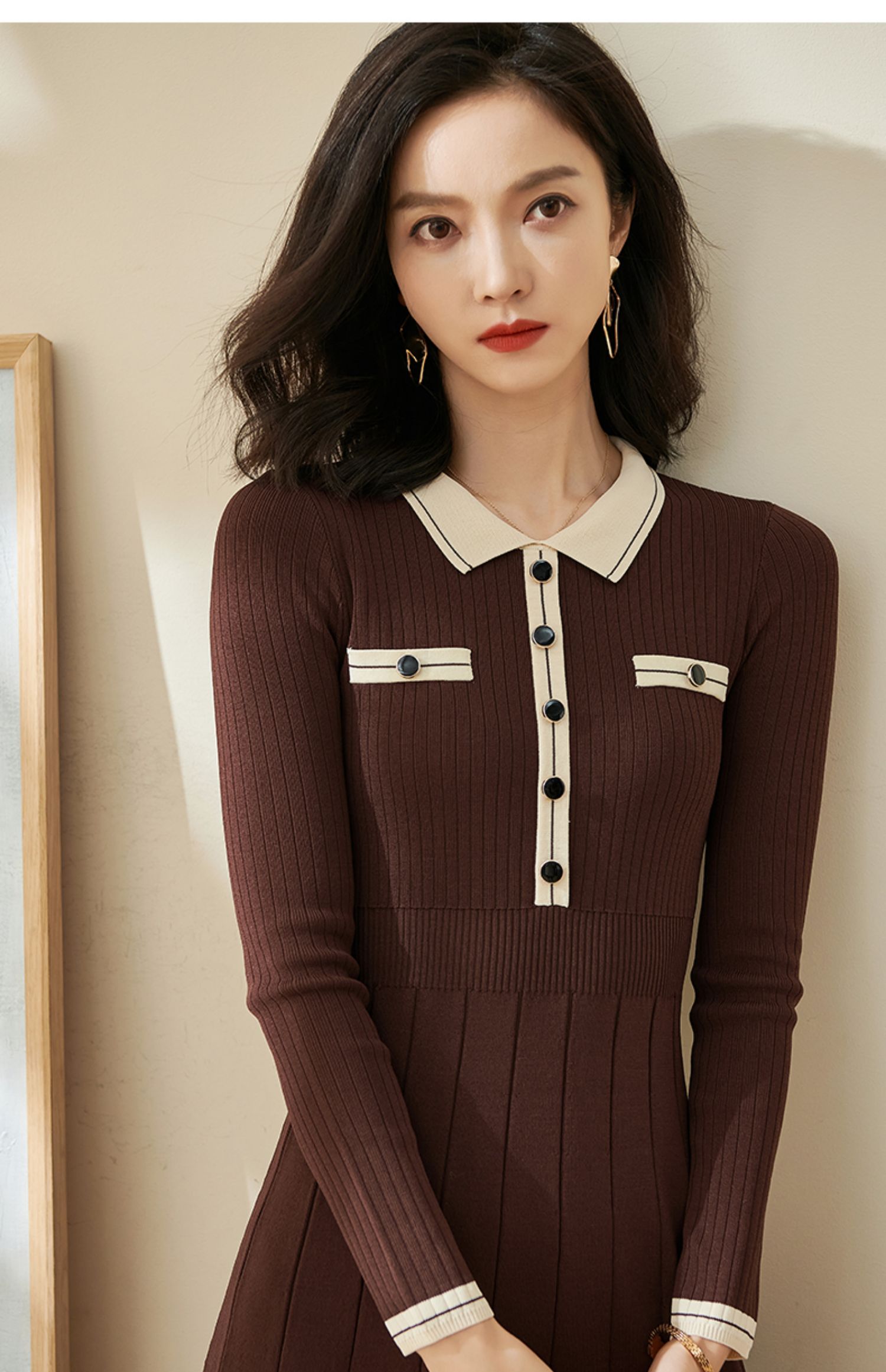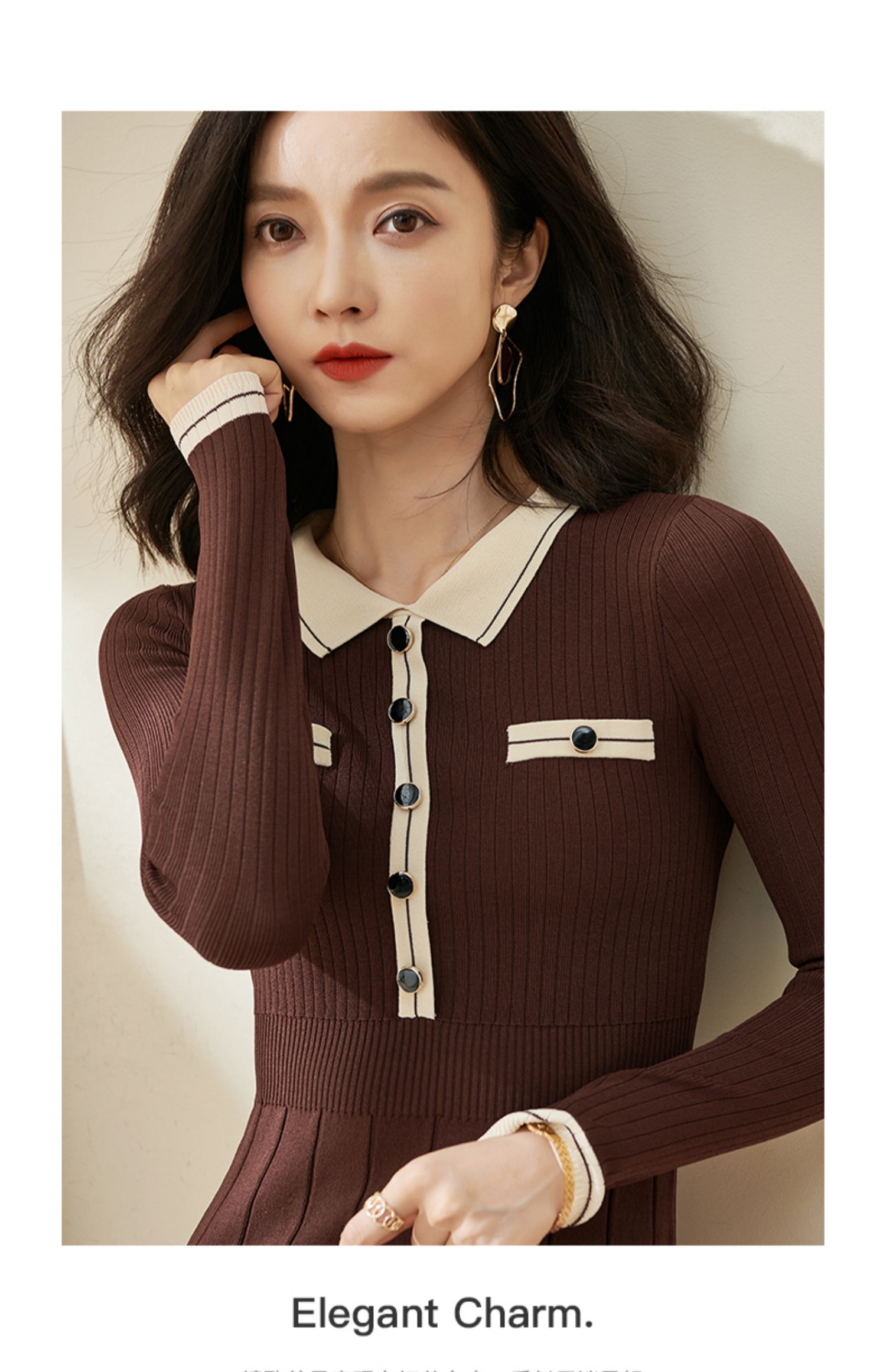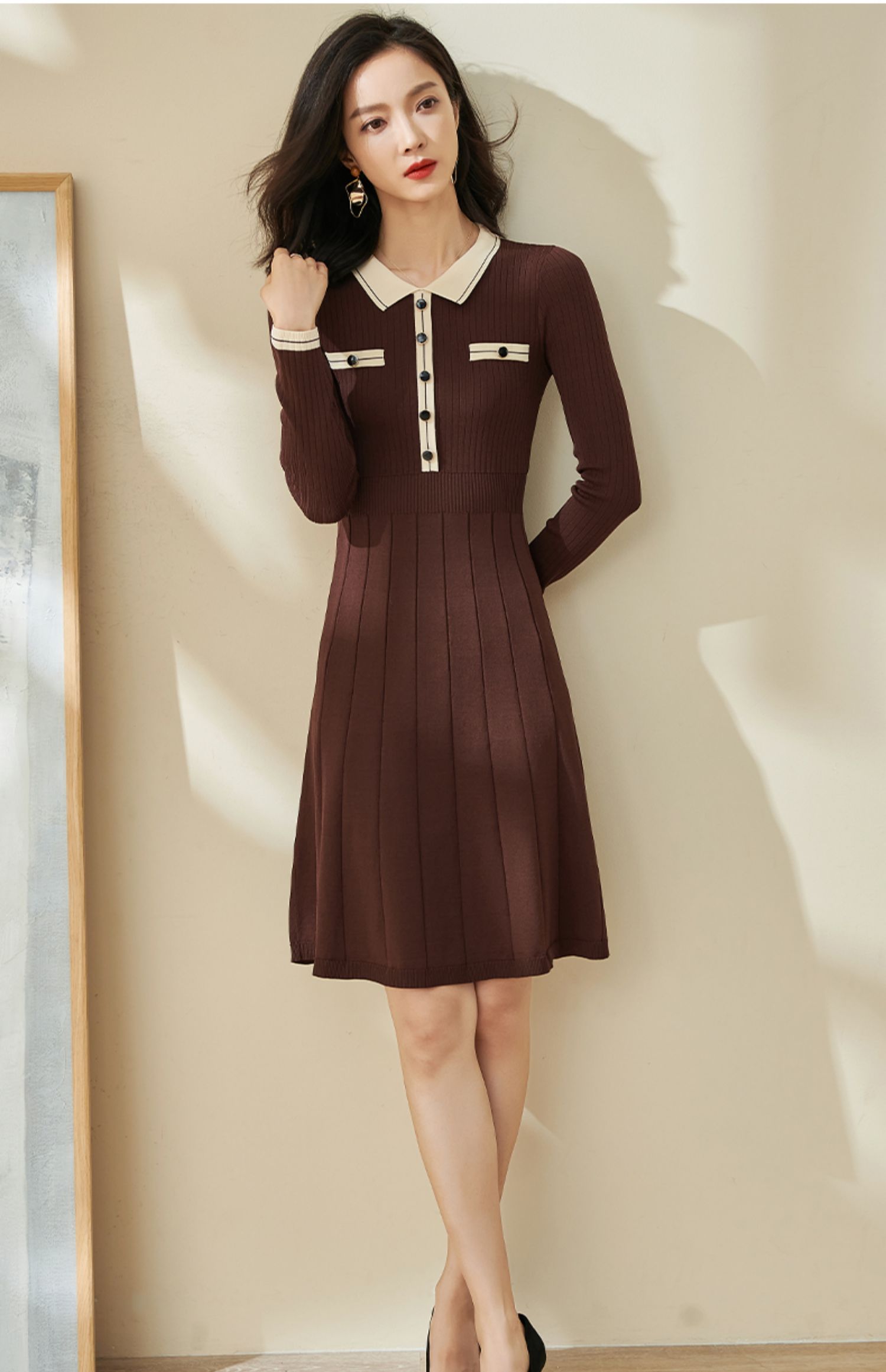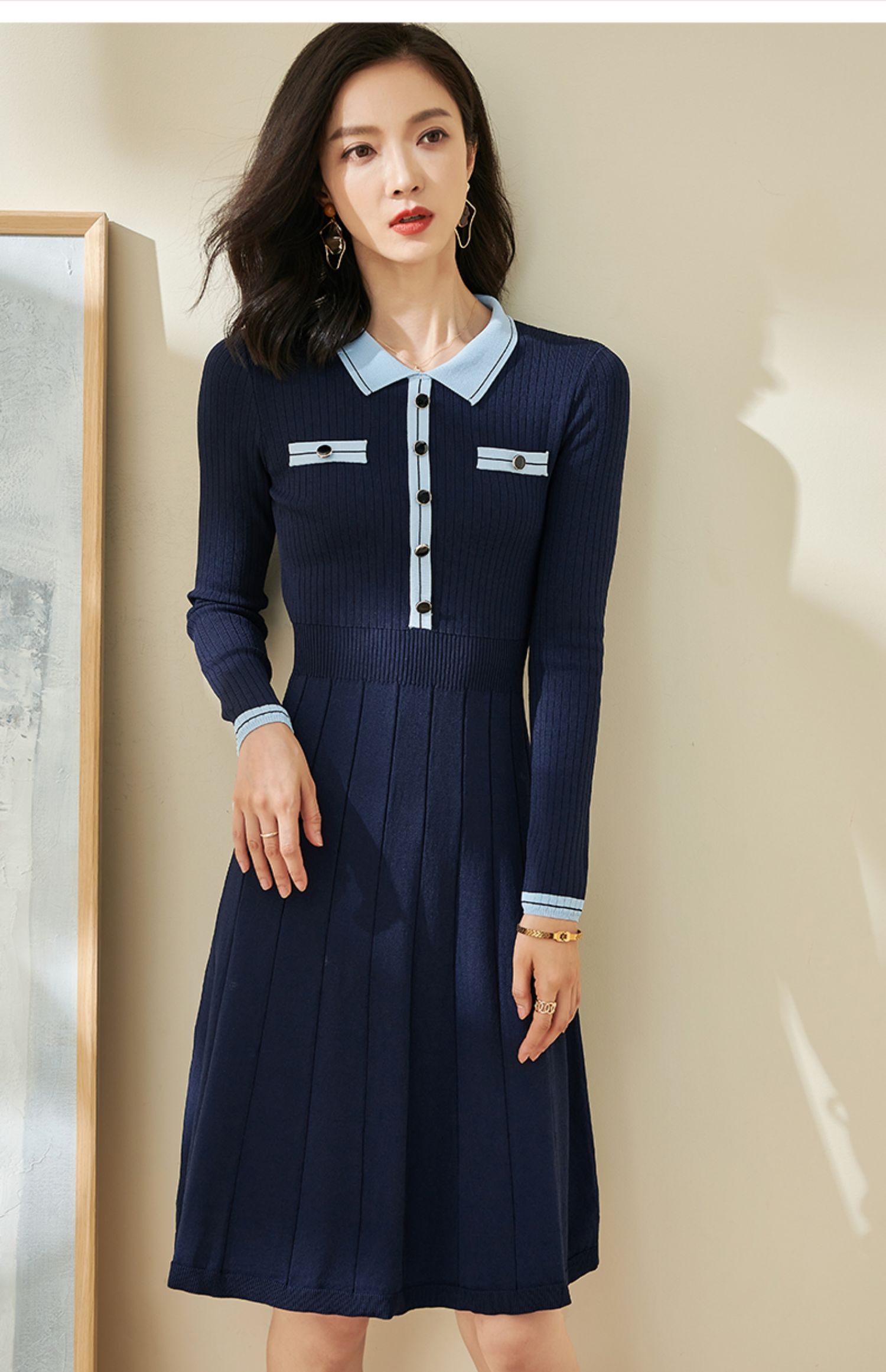 剩S 米思阳修身裙子气质休闲时尚温柔风针织polo领a字版连衣裙秋1755