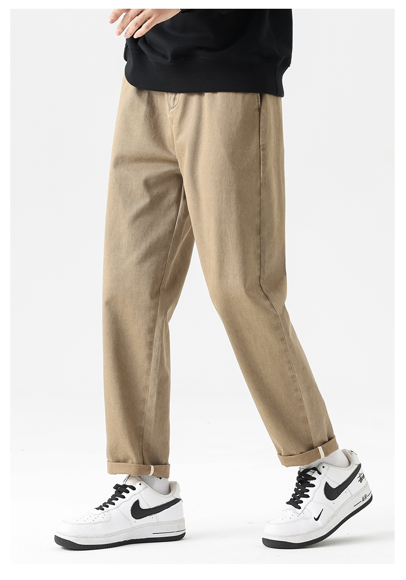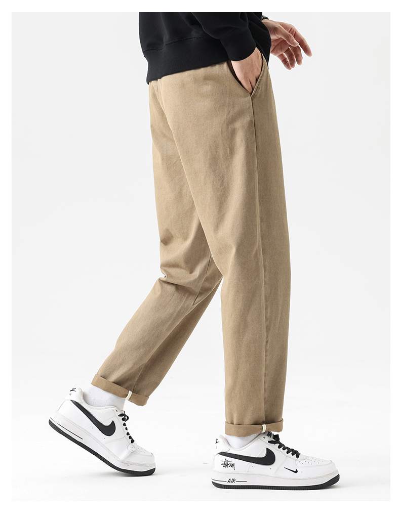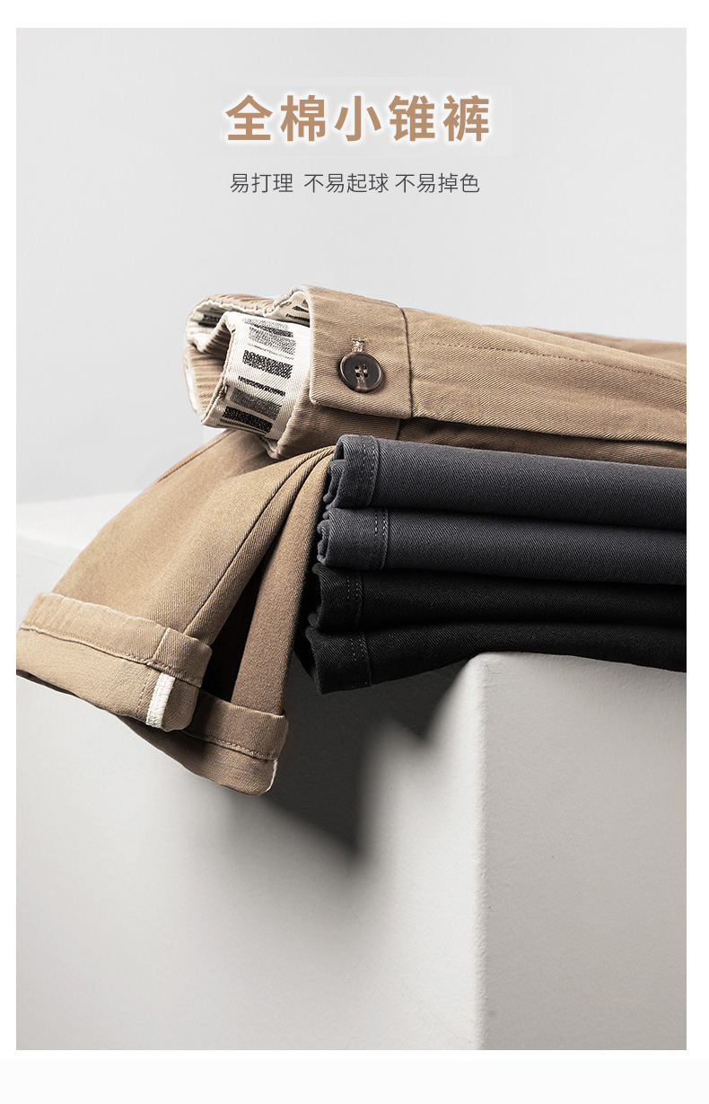 【100%纯棉】圣得西易打理休闲裤男秋季宽松直筒锥形长裤