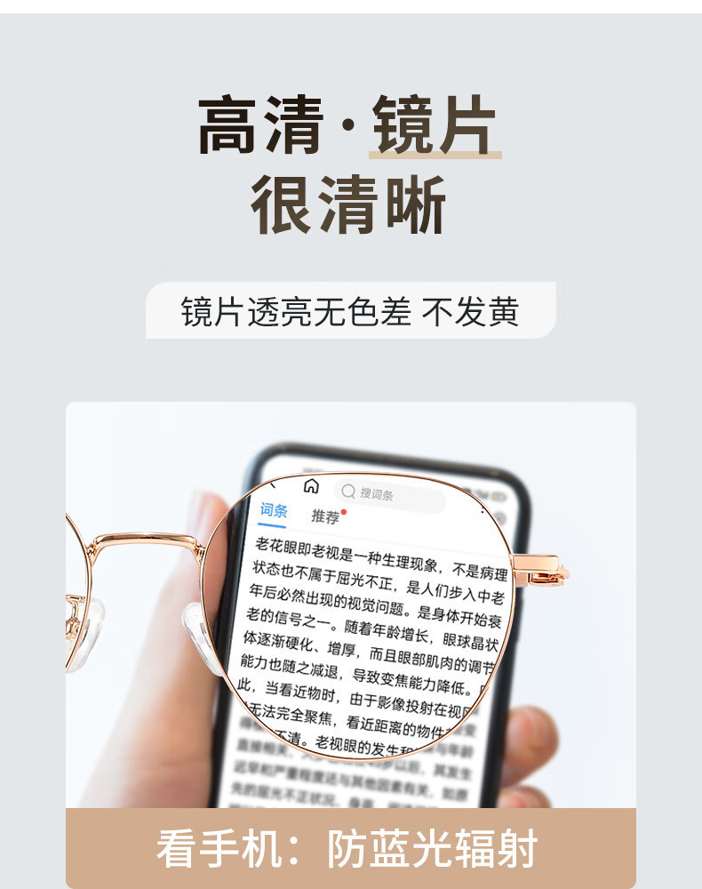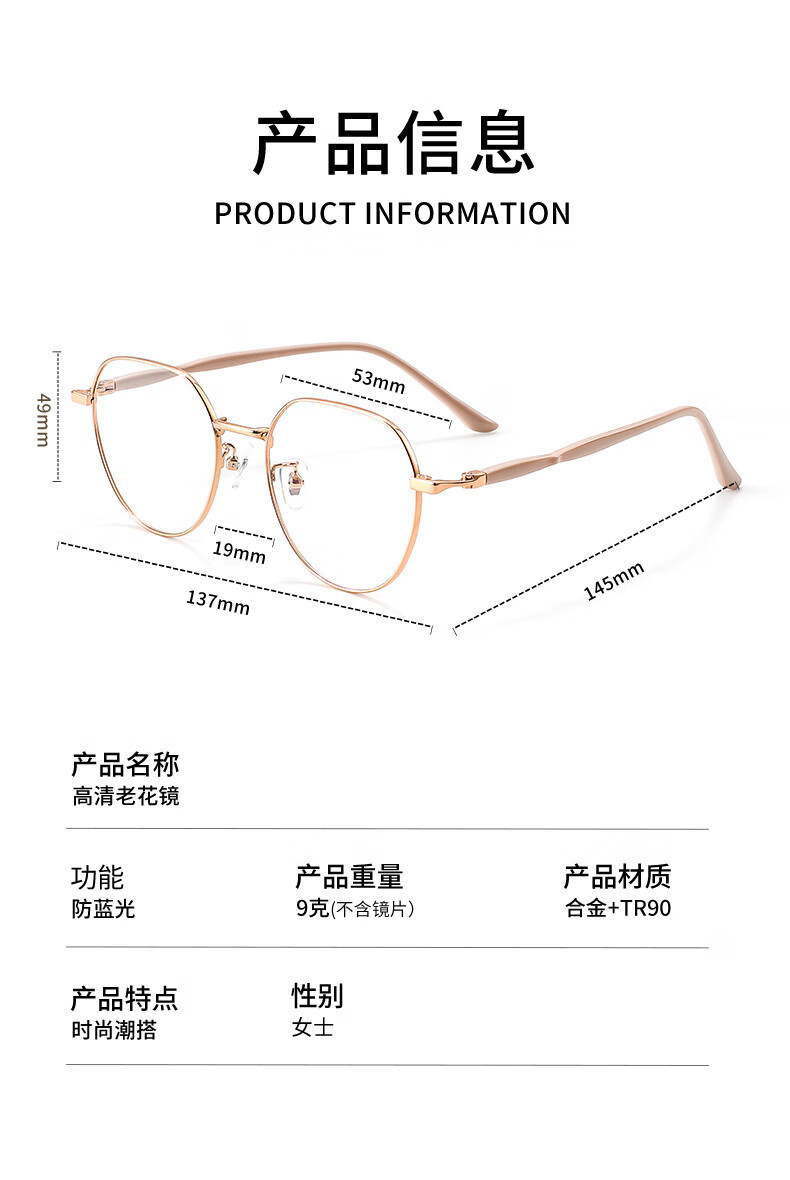 【中老年老花镜金属大框时尚洋气中老年超轻老花镜高清防蓝光花镜
