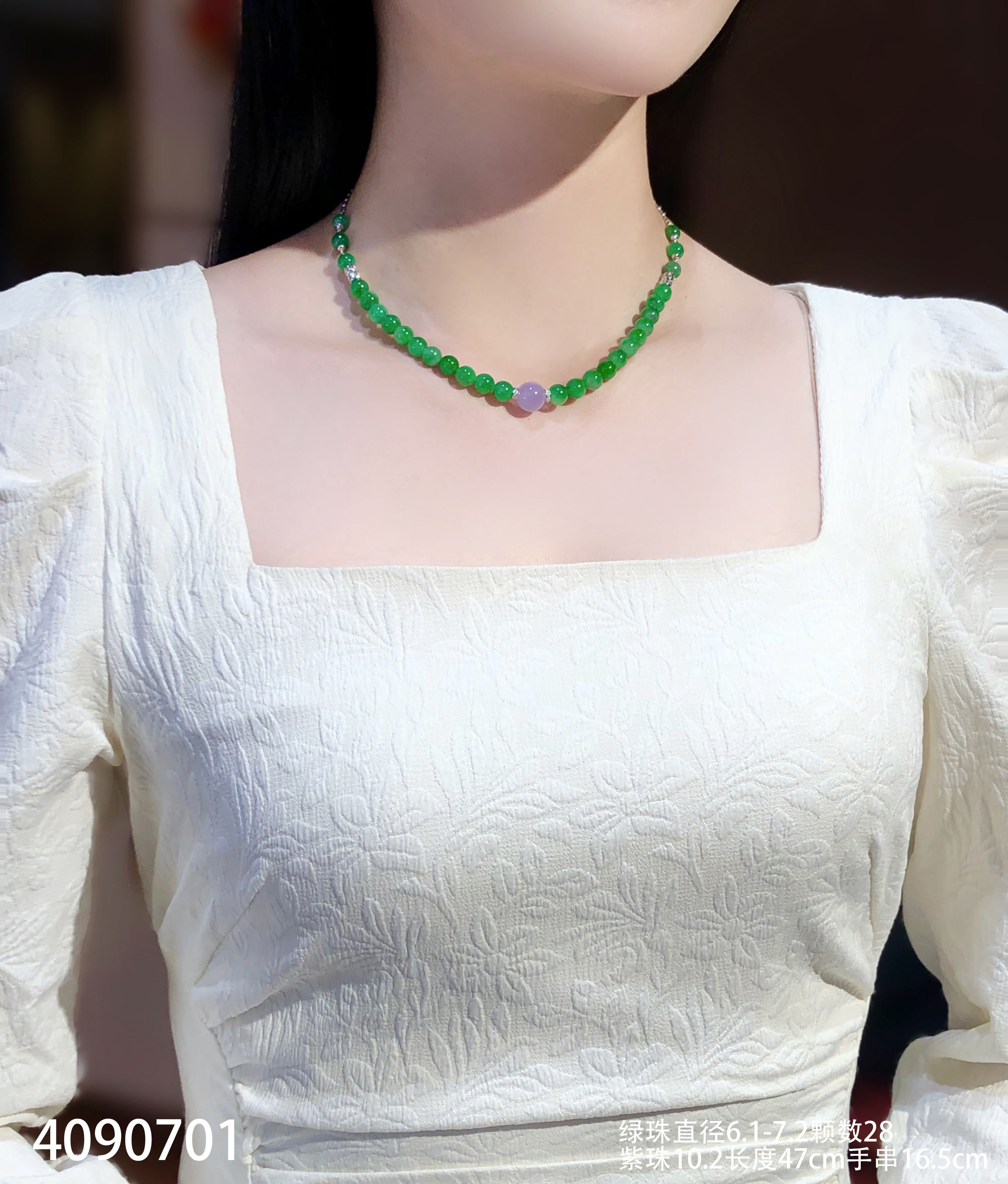 冰艳绿珠子套链【4090701】具体价格微信咨询