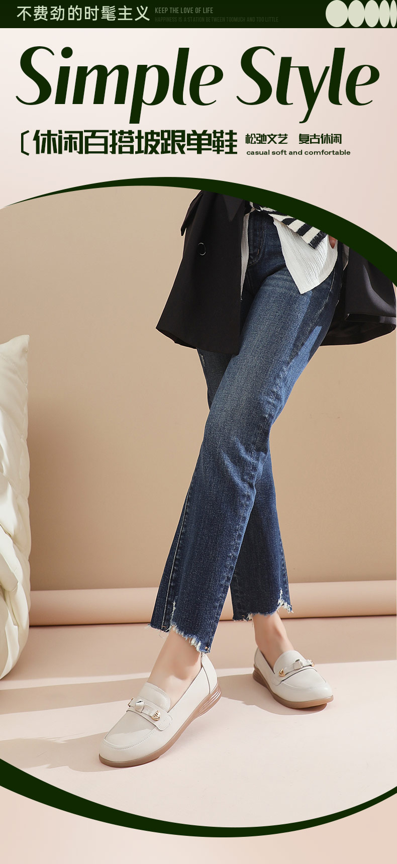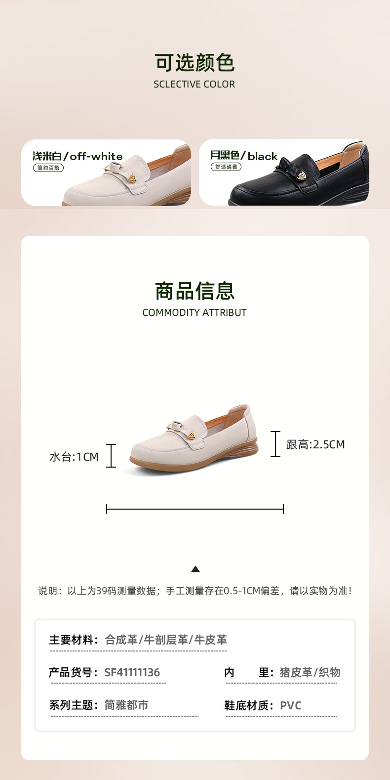 Safiya/索菲娅2024春季复古圆头休闲百搭软底一脚蹬坡跟单鞋 SF41111136