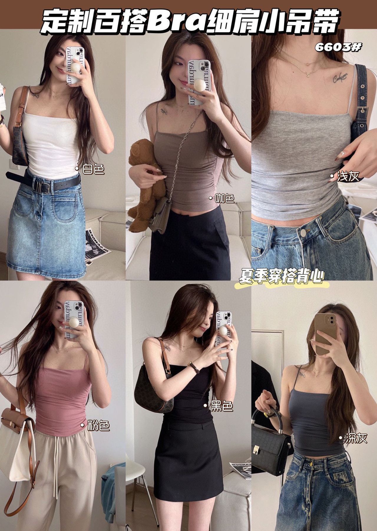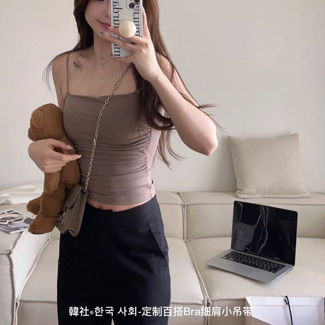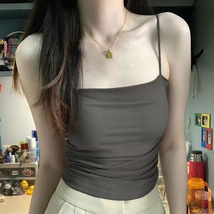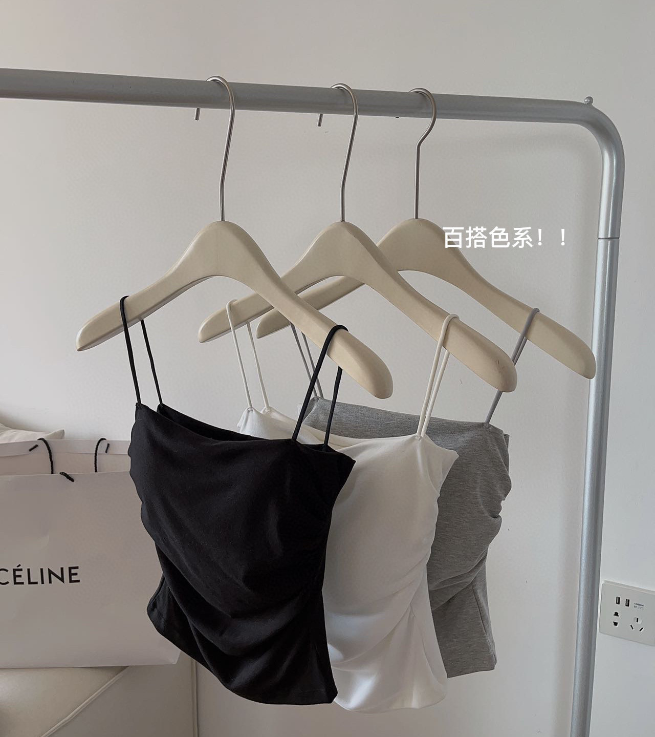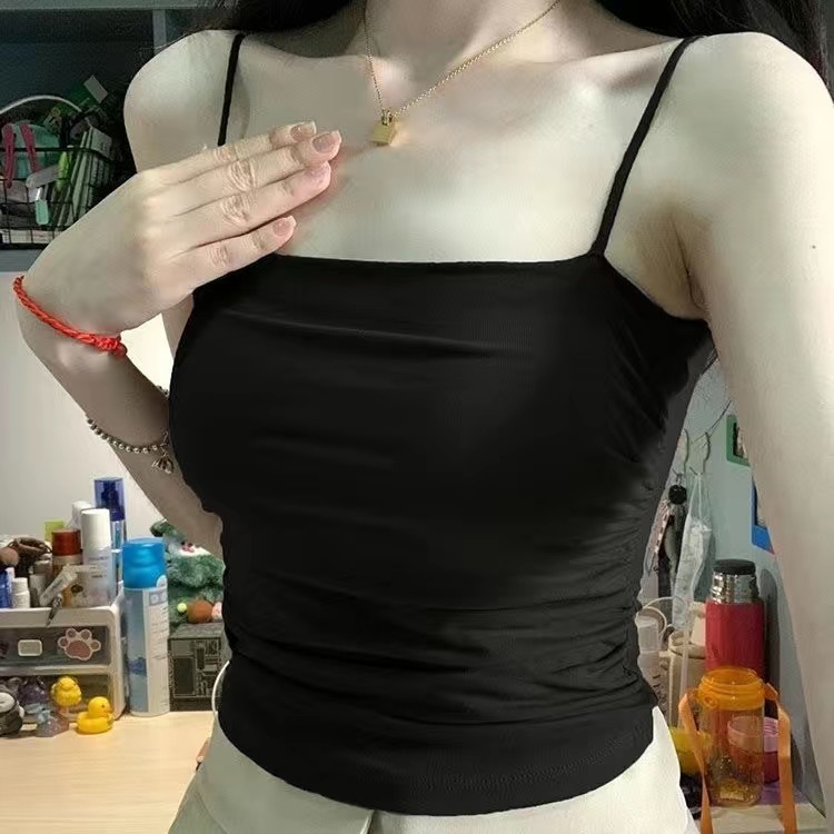 「29.9到手3件!数色可选」辣妹褶皱吊带背心女纯欲细肩带夏季美背内搭带胸垫抹胸女打底上衣