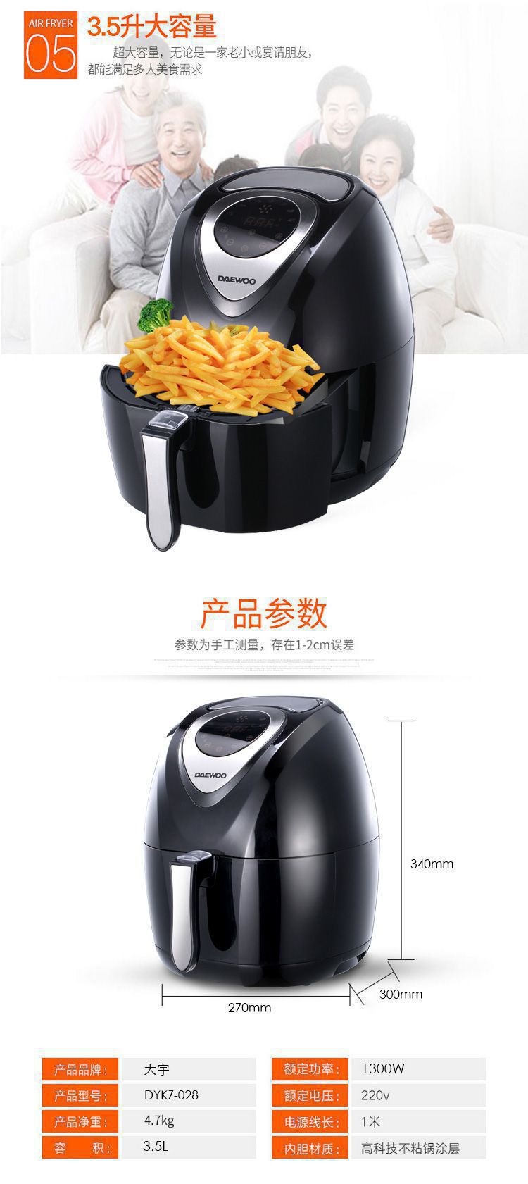 大宇(DAEWOO) 空气炸锅 DYKZ-028