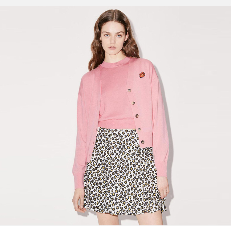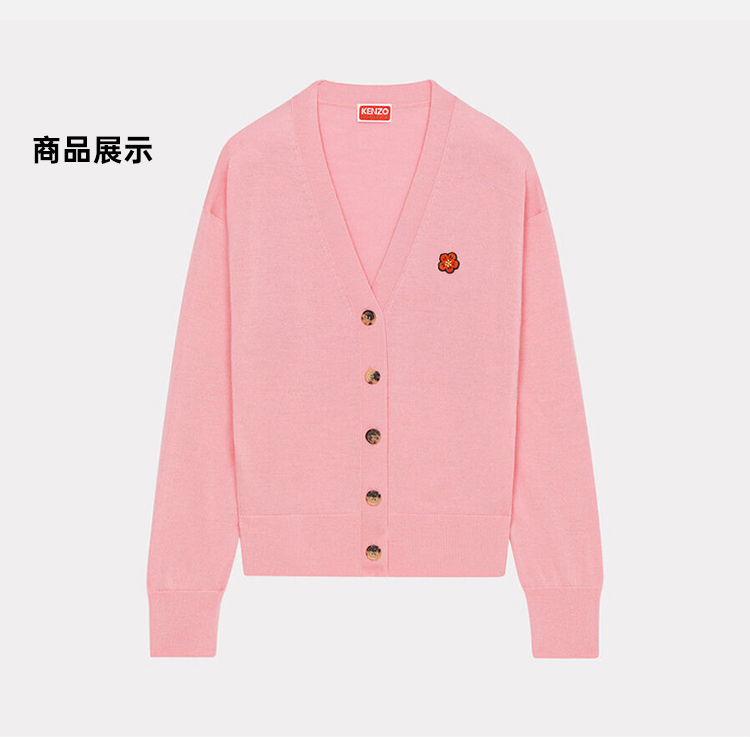 KENZO 高田贤三 女士BOKE花朵刺绣徽标系列羊毛针织开衫 粉色 FD52 CA383 3LB 30