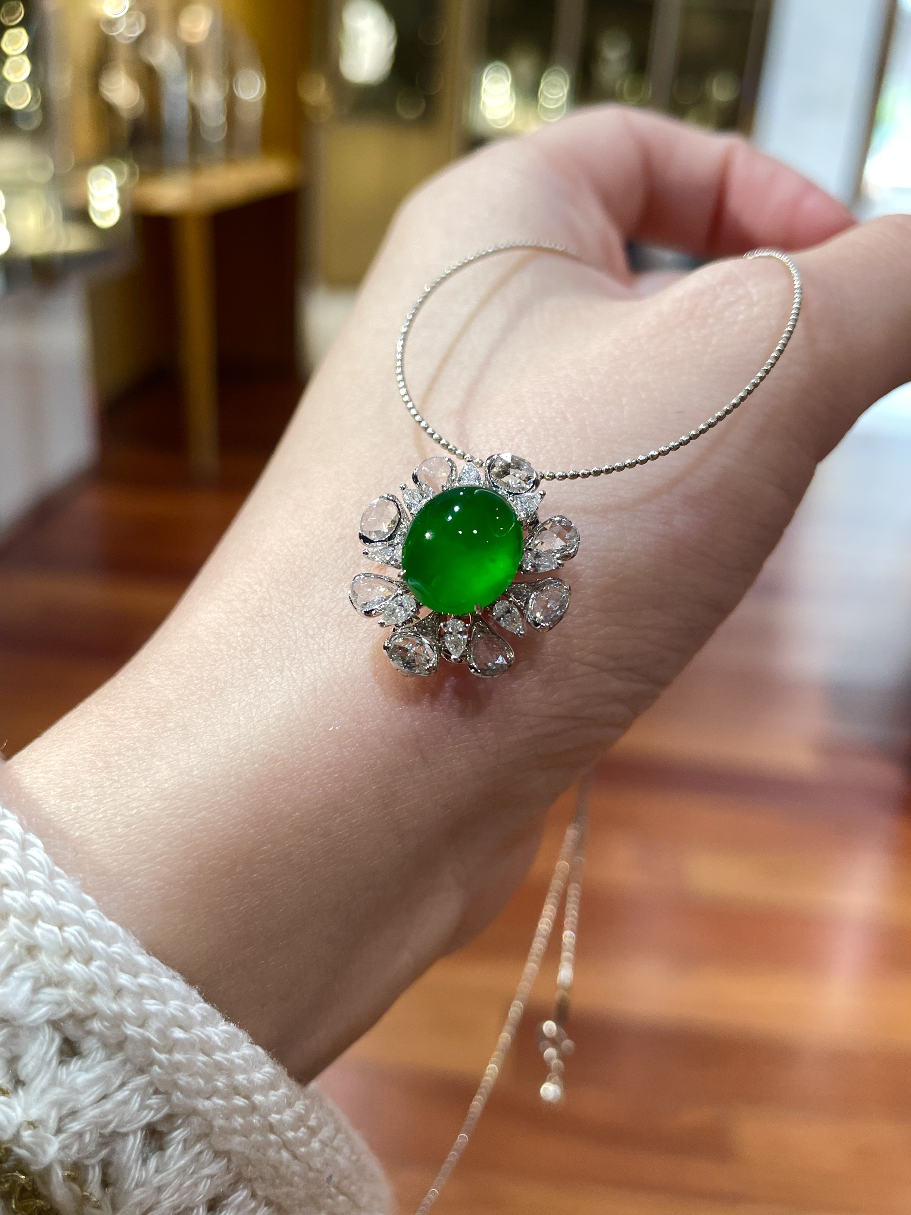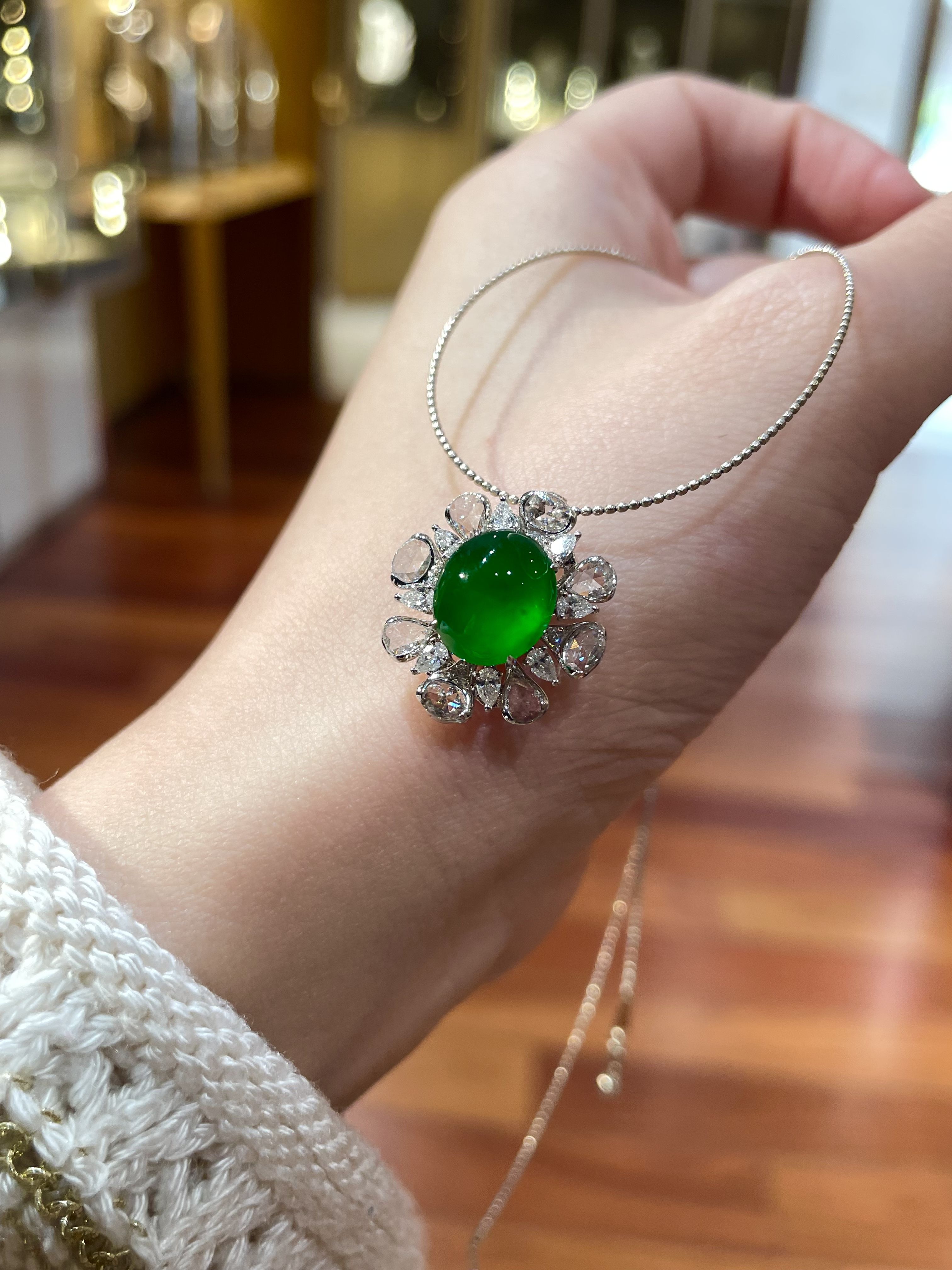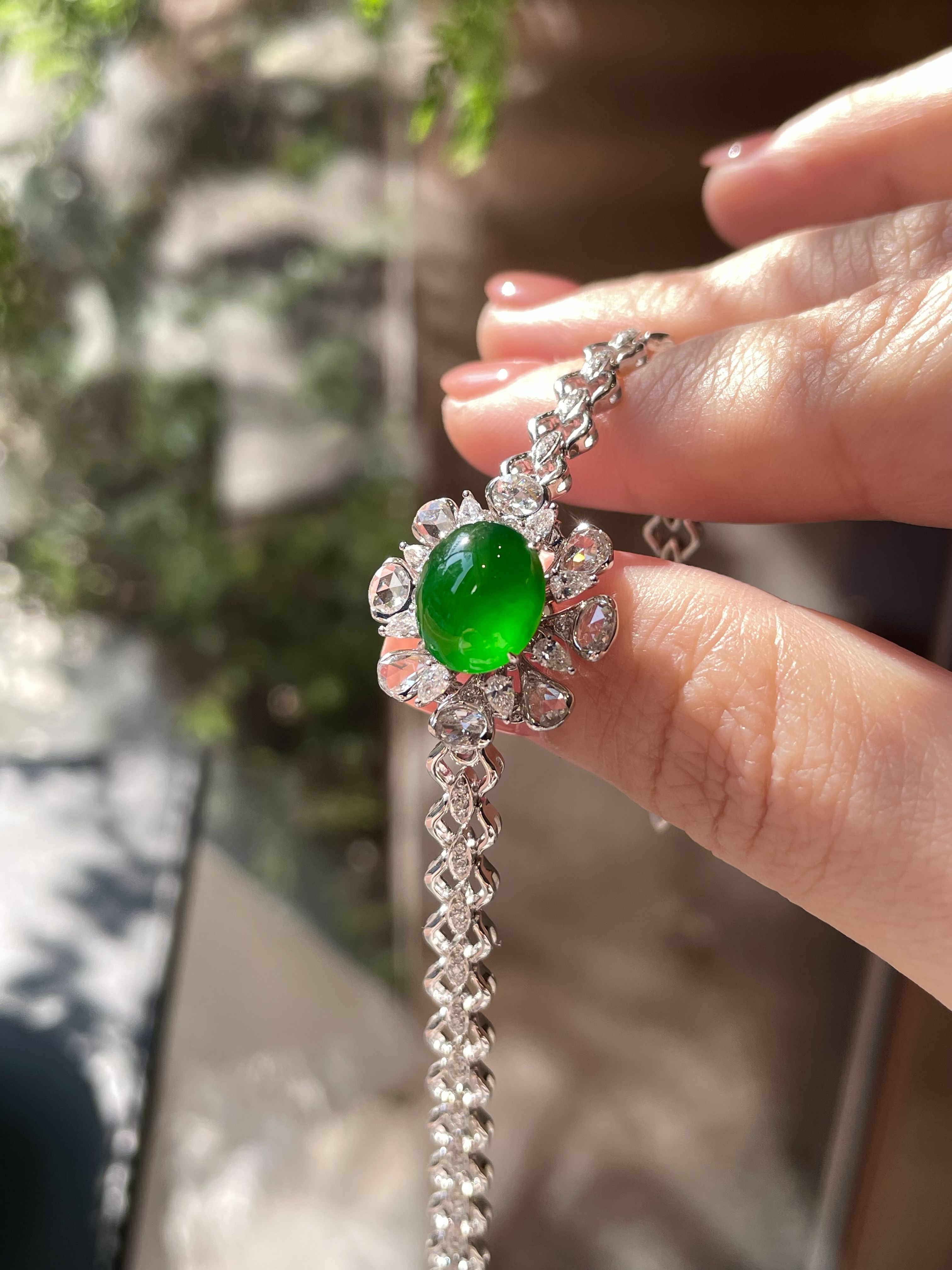 老坑玻璃帝王绿蛋面手链,美入心脾的黄阳,经典的太阳花设计镶嵌,手腕微抬,是那醉迷黄阳~💓【63-1113006】具体价格微信咨询