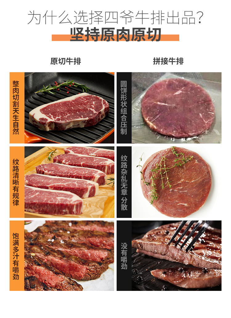 - 四爷牛排专注于原肉原切的健康美味,优化中国人膳食结构,提高生活品质,让千家万户吃上健康美味好牛肉。