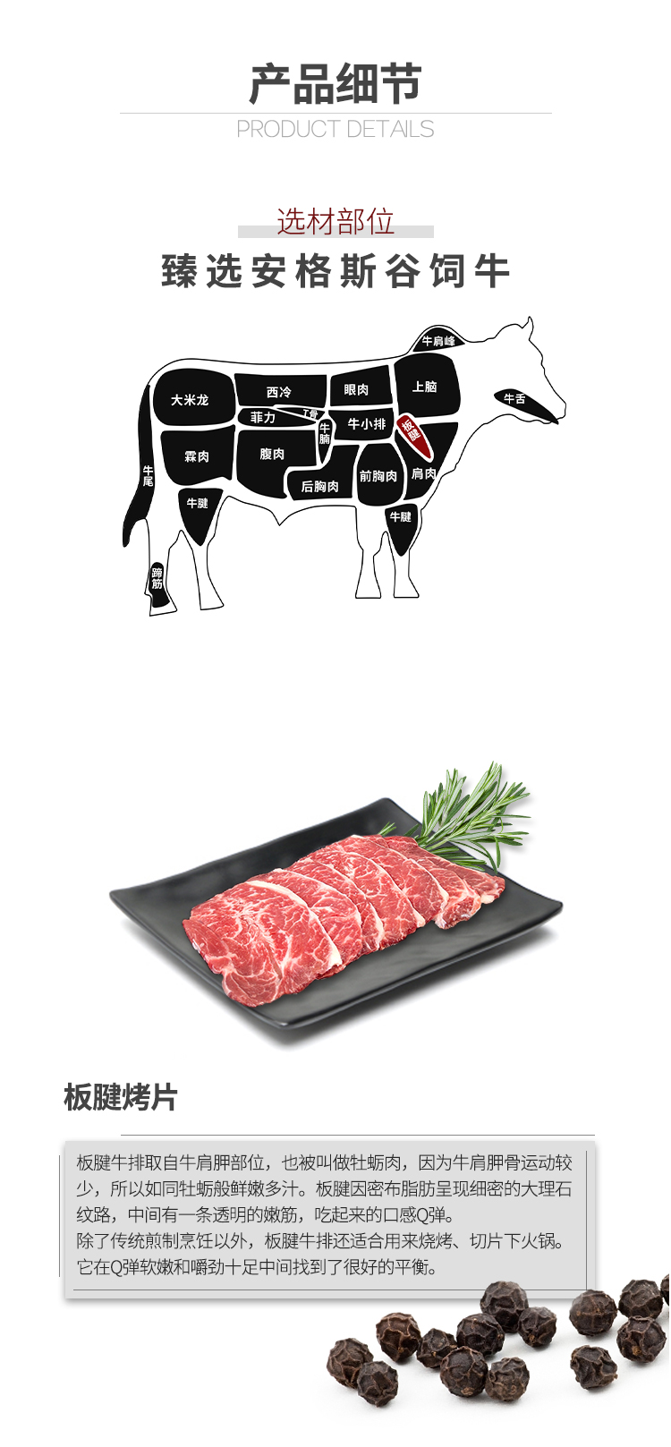 谷饲安格斯板腱薄片1000克 原肉原切 柔嫩多汁 可煎可烤可炒