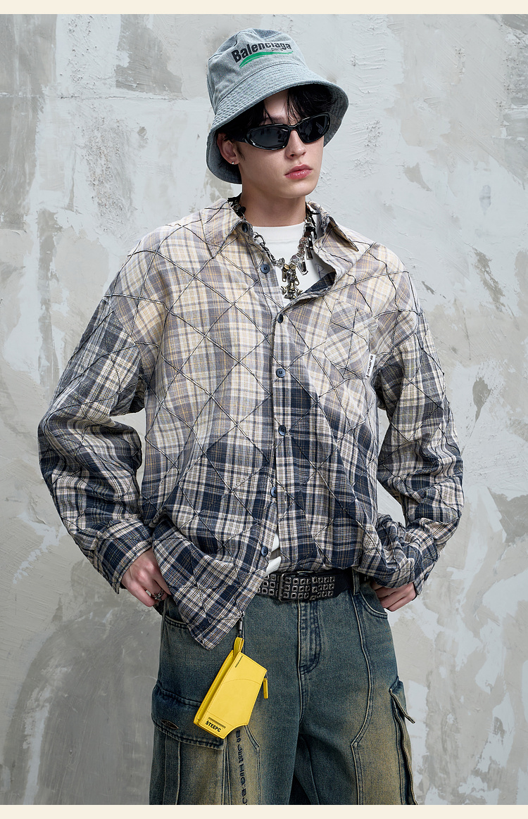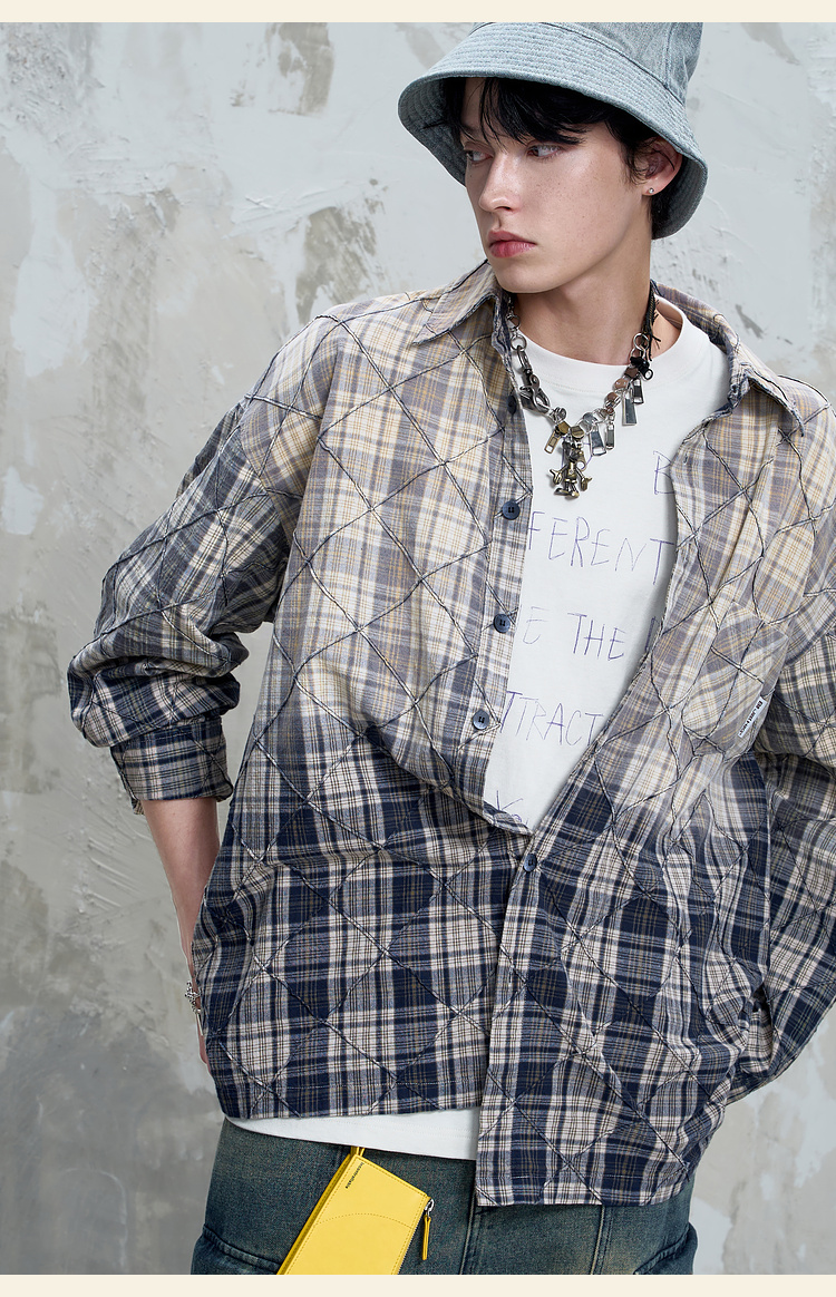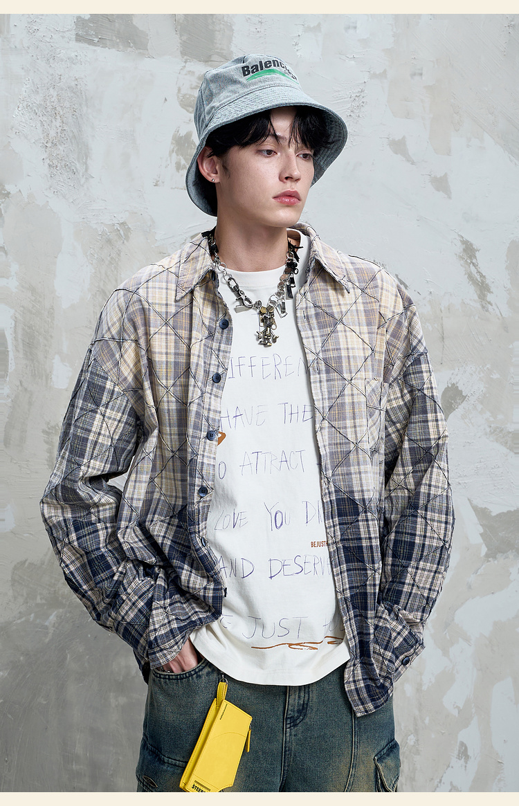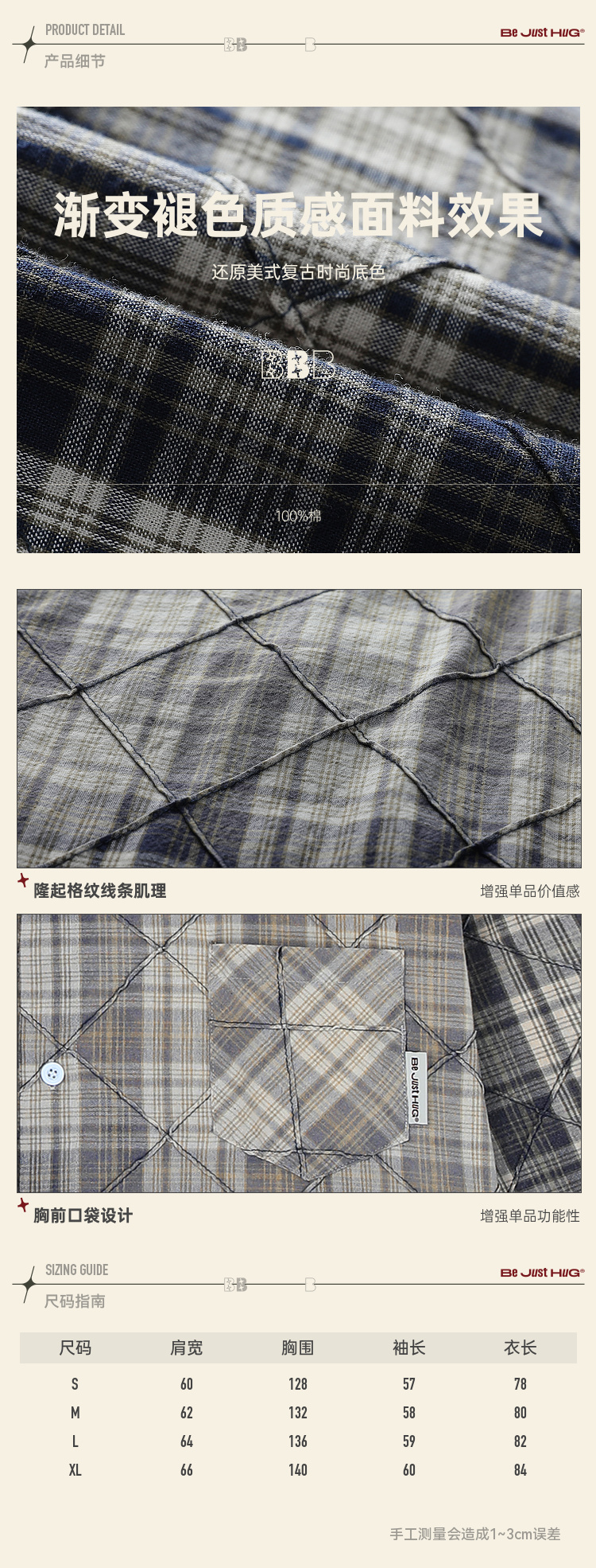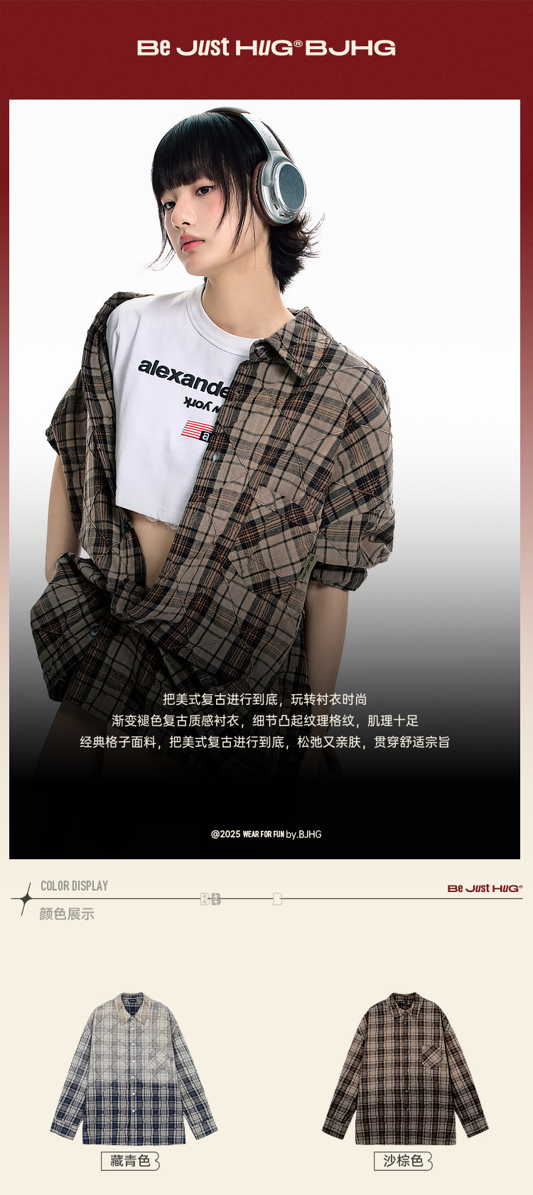 BJHG不计后果美式格子衬衫男款夏季潮牌宽松复古渐变休闲情侣上衣