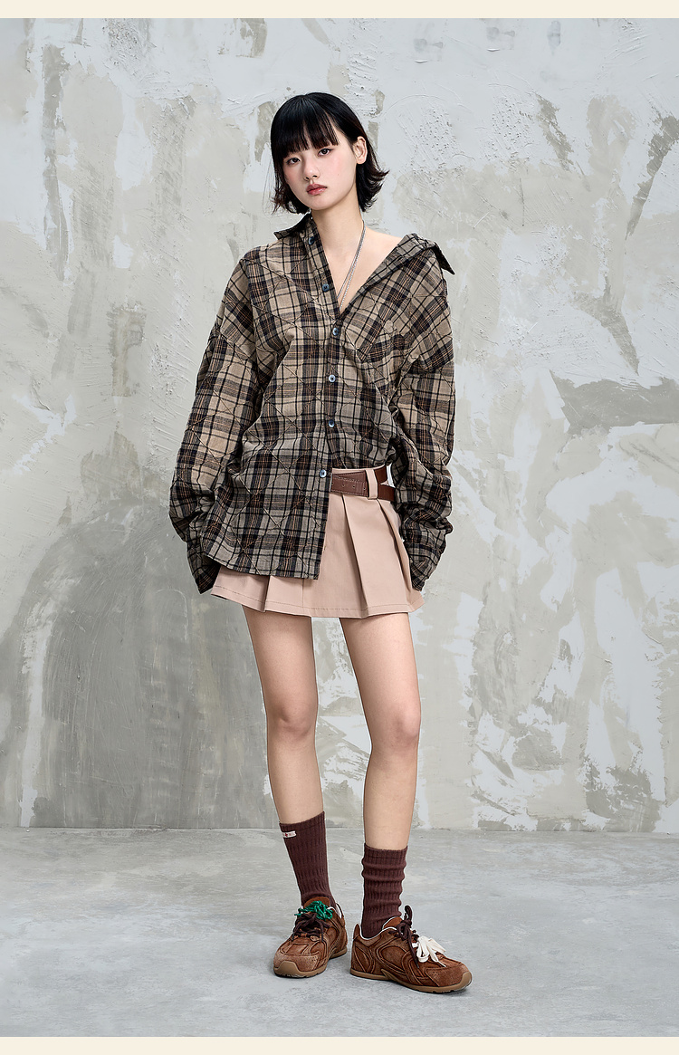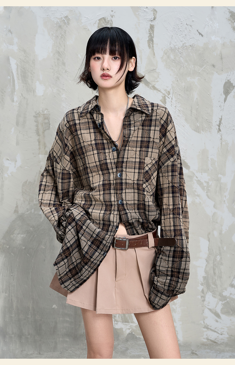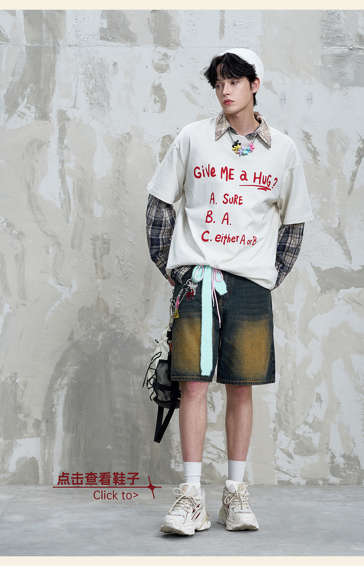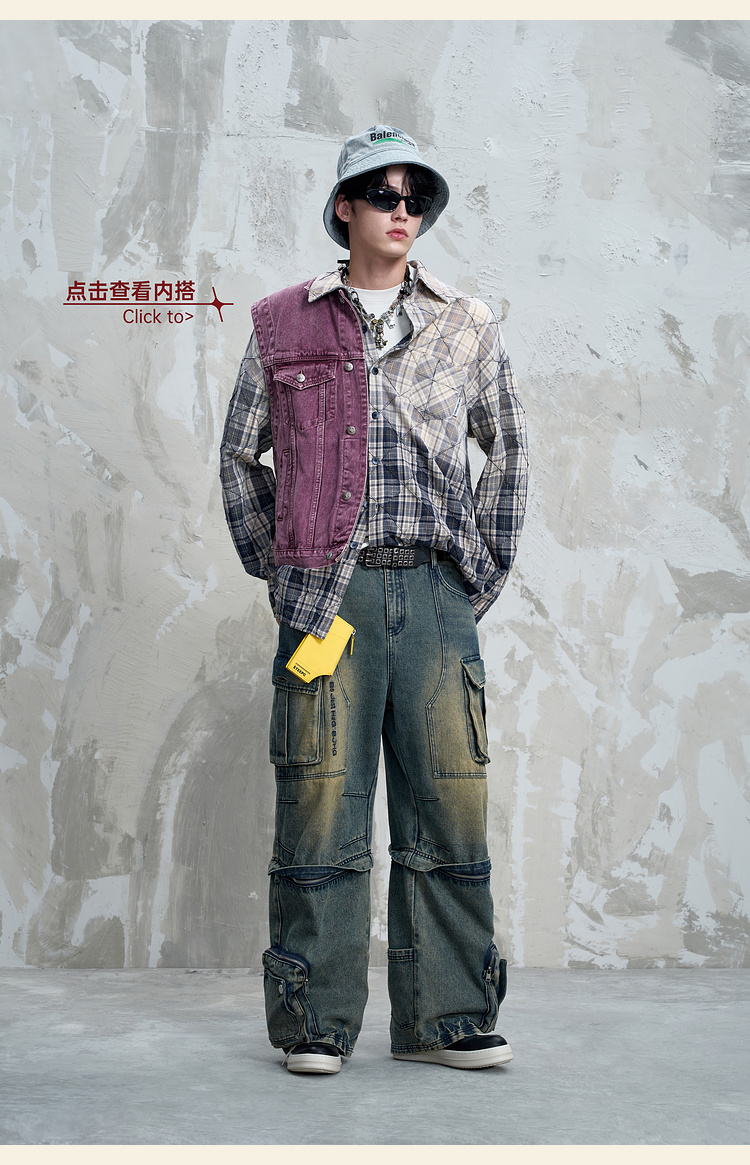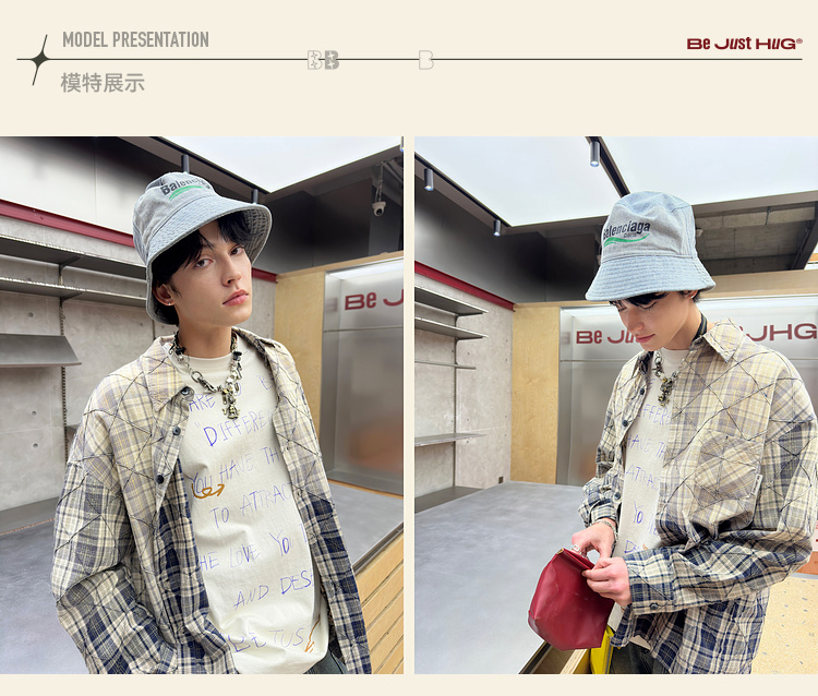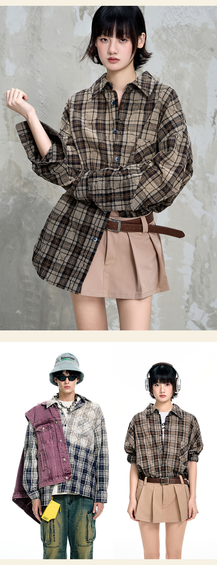 BJHG不计后果美式格子衬衫男款夏季潮牌宽松复古渐变休闲情侣上衣