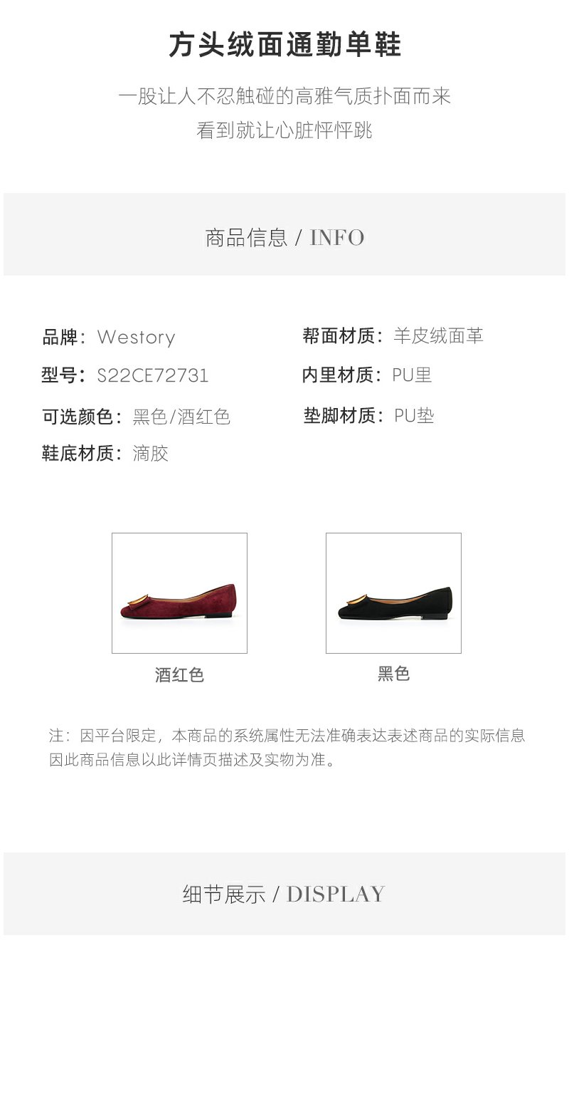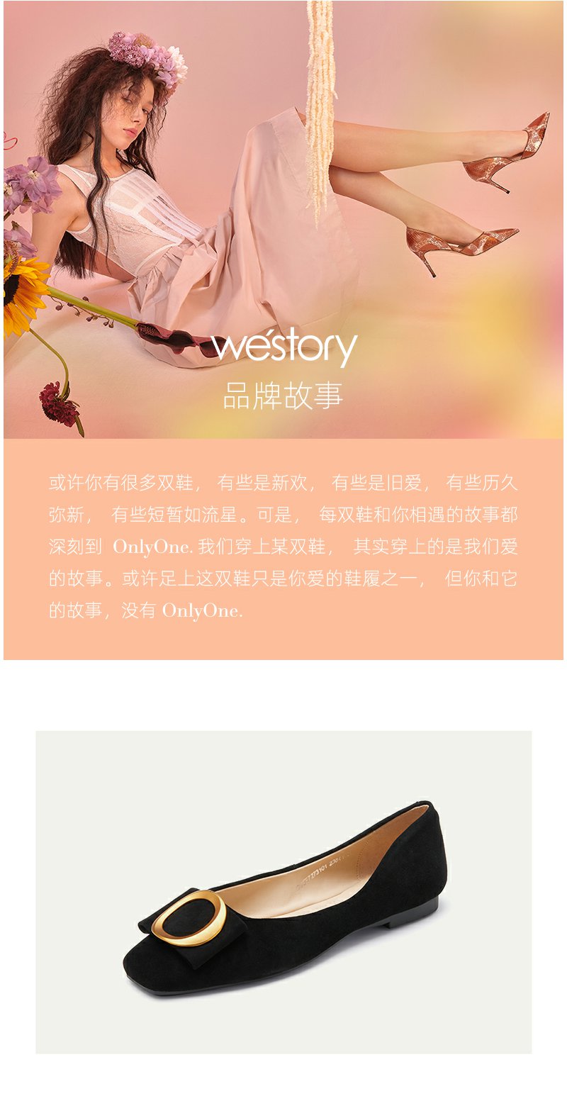 westory2022年新款浅口方头温柔晚晚风气质名媛平底单鞋女72731