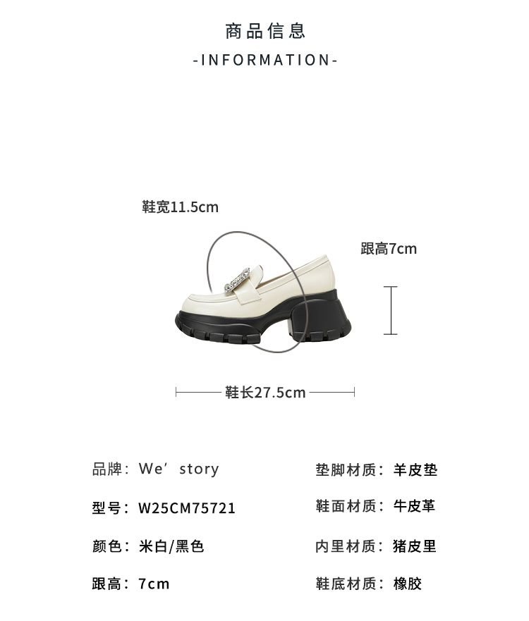 Westory2025年秋季金典厚底乐福鞋方扣深口单鞋W25CM75721