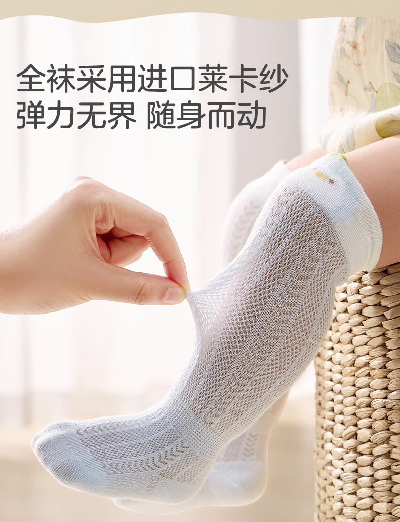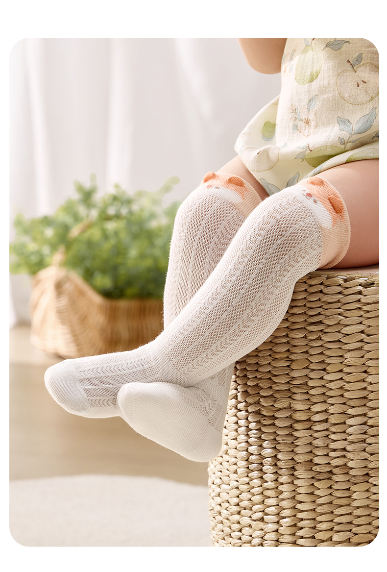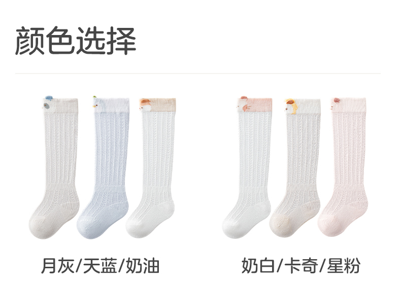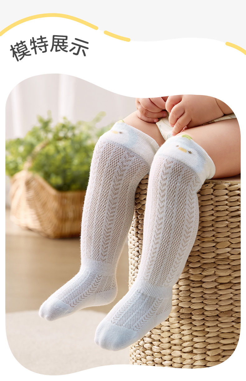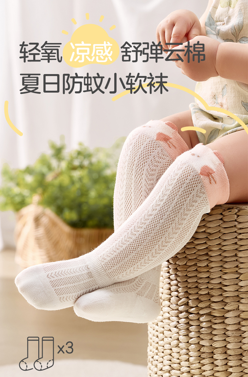 粒粒阳光婴儿长筒袜夏季超薄a类网眼不勒腿宝宝防蚊袜3双