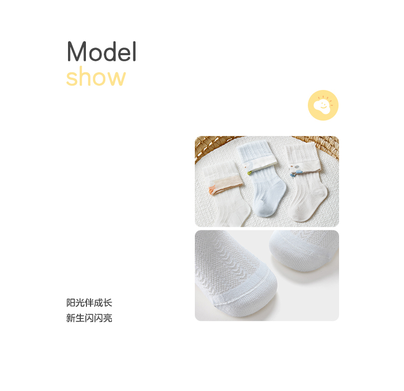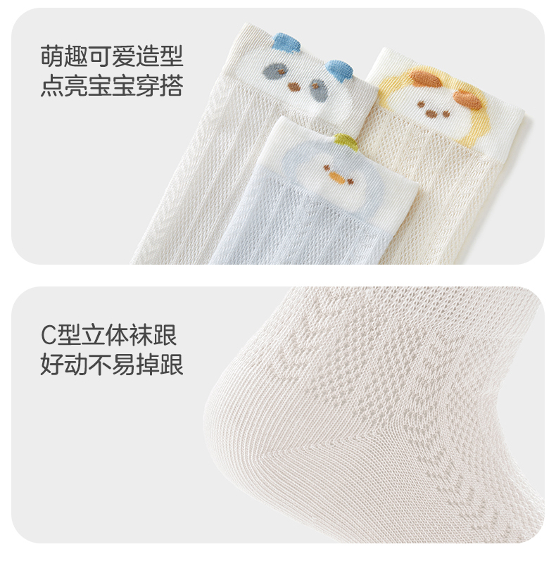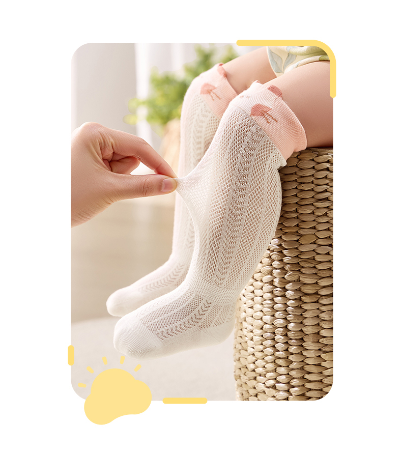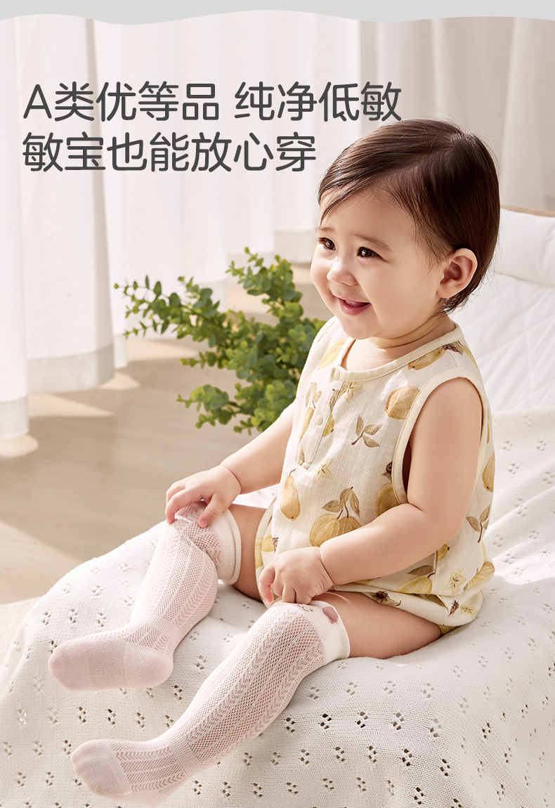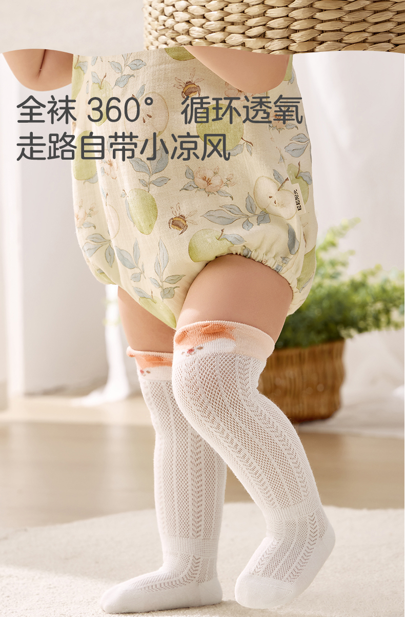 粒粒阳光婴儿长筒袜夏季超薄a类网眼不勒腿宝宝防蚊袜3双