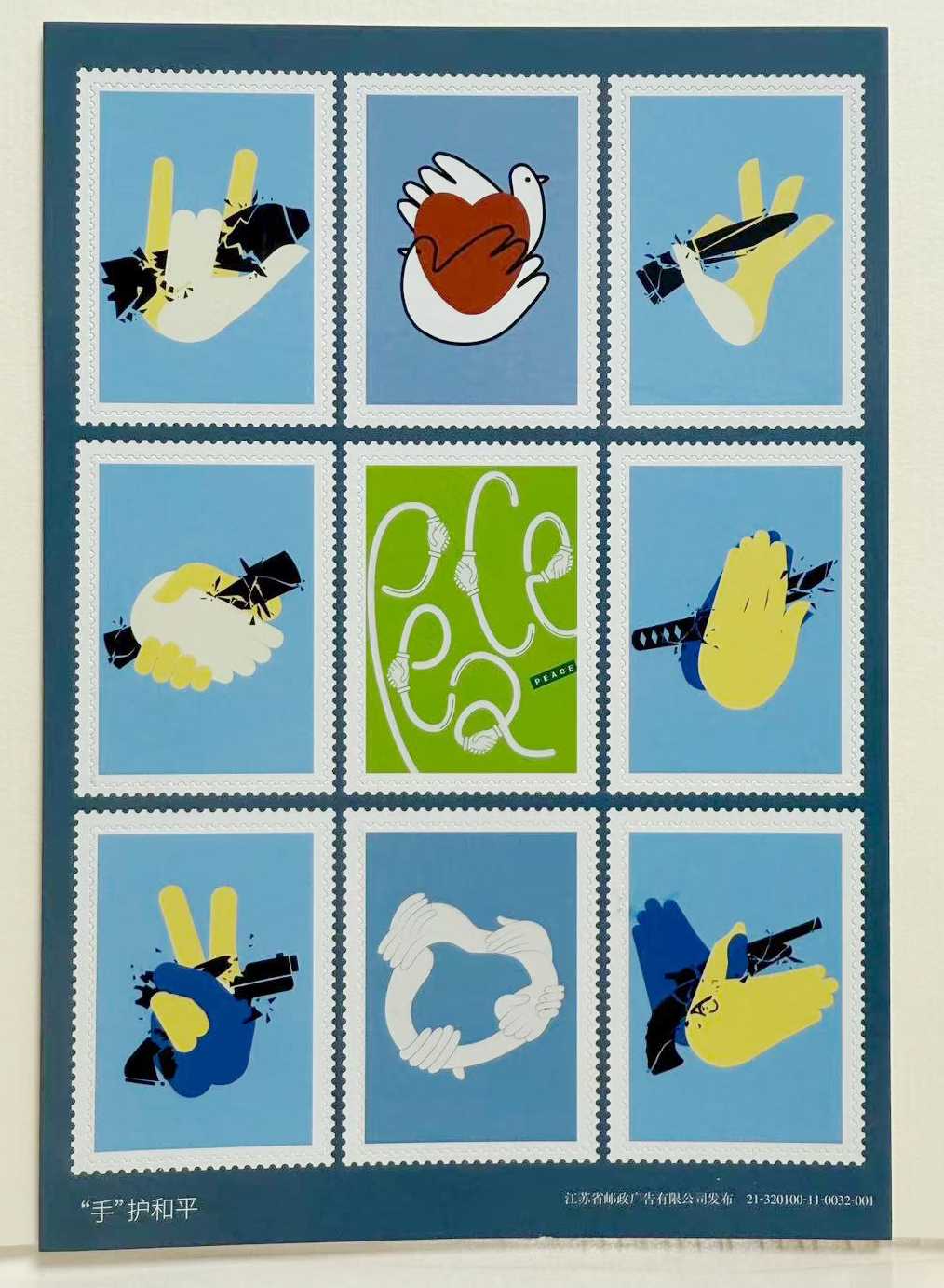 《“手”护和平 》不干胶明信片——抗战胜利80周年系列