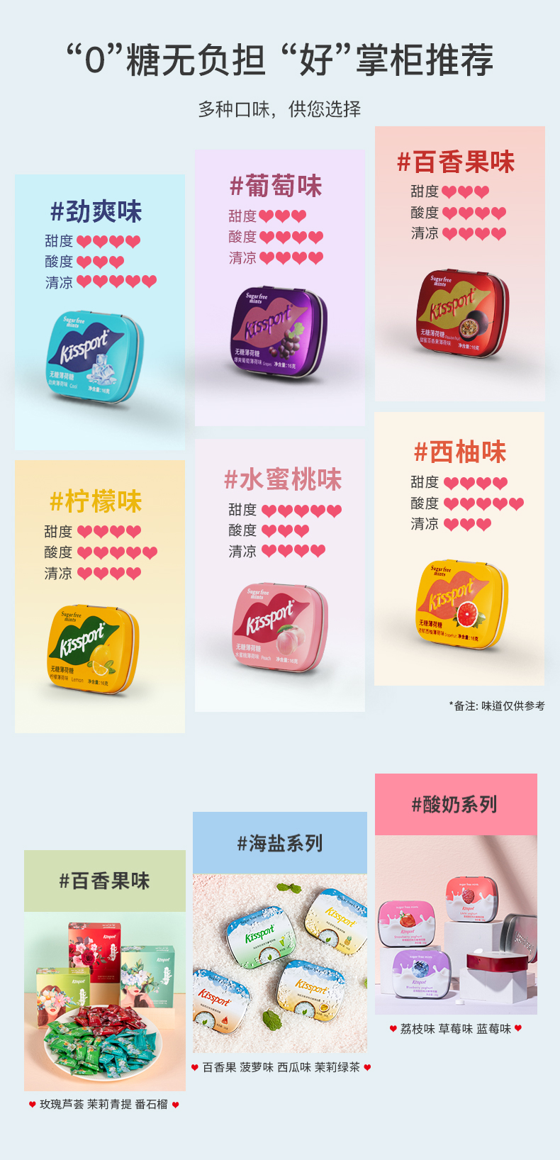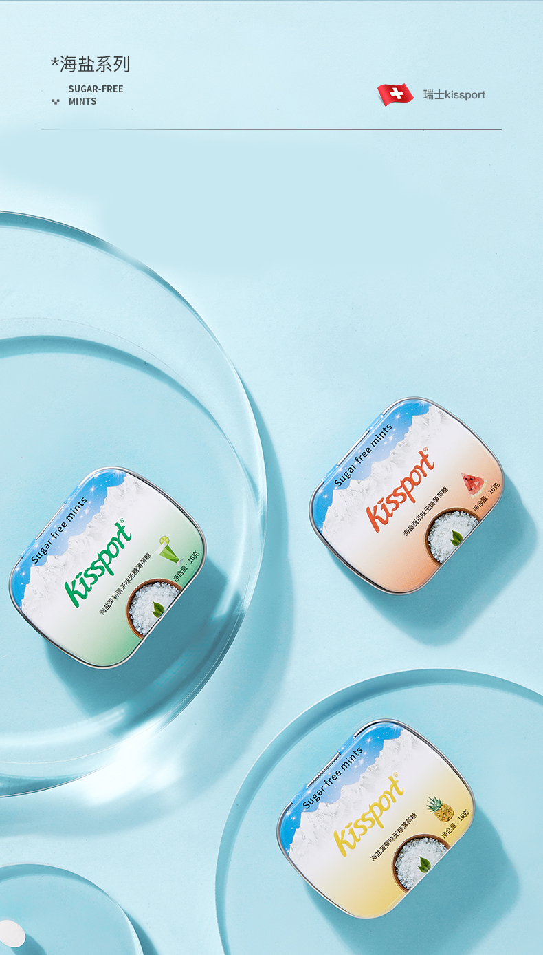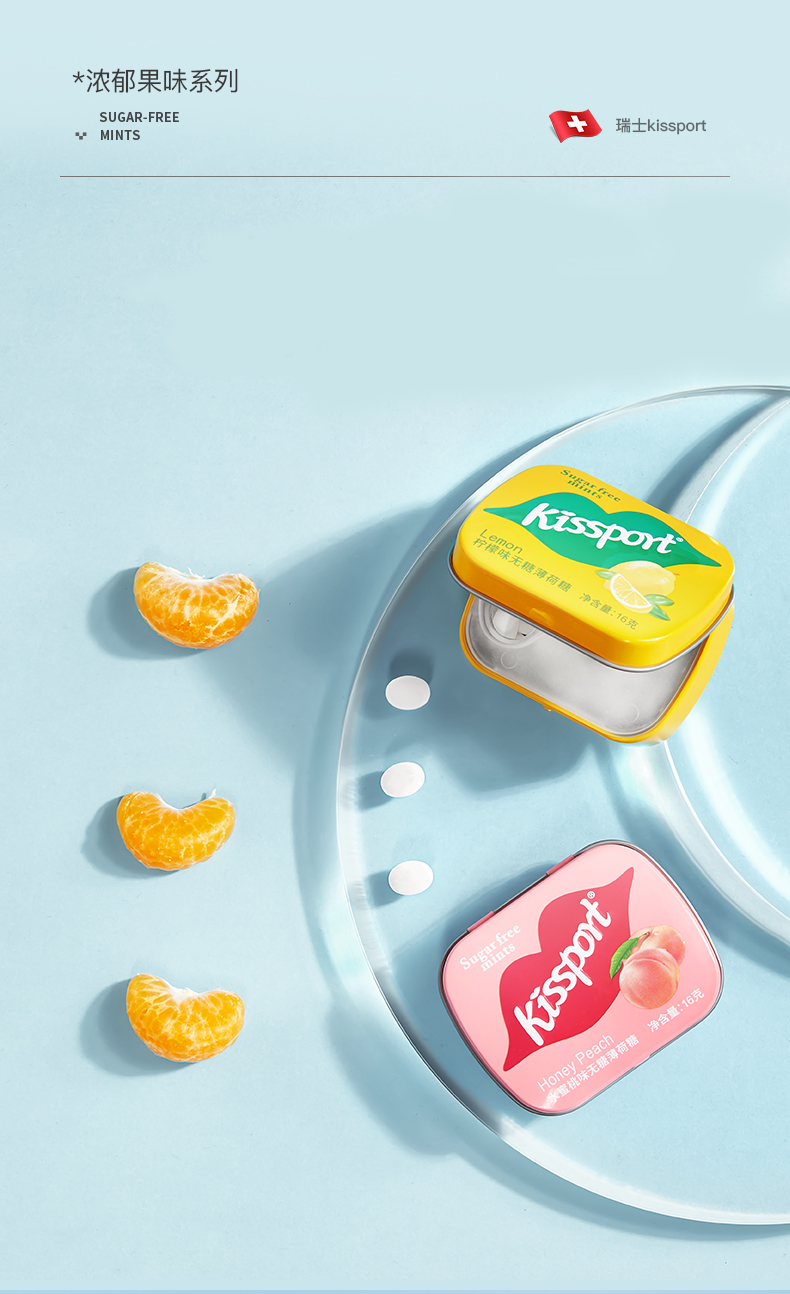 kissport 无糖薄荷糖 16g/盒(随机口味)无糖低卡 清新口气 口香糖果 拍多件发不同口味 便携装 网红糖果同款 清新口气 小型随身 网红零食