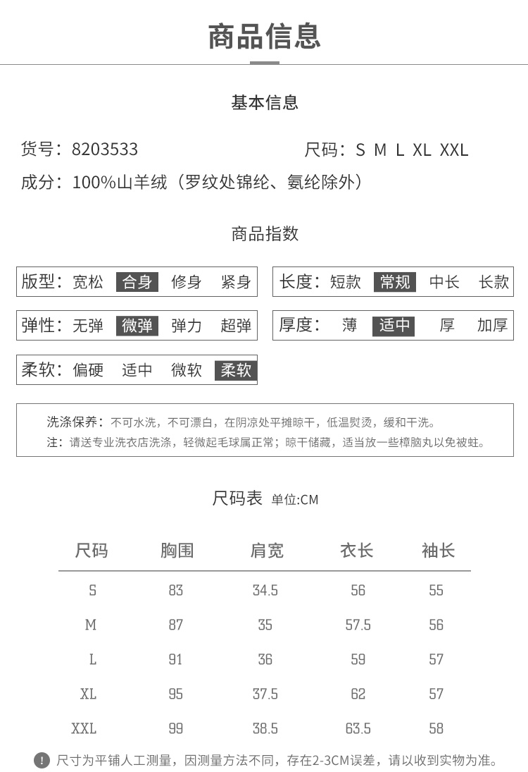 | 材质成分: 山羊绒(羊绒)100% |