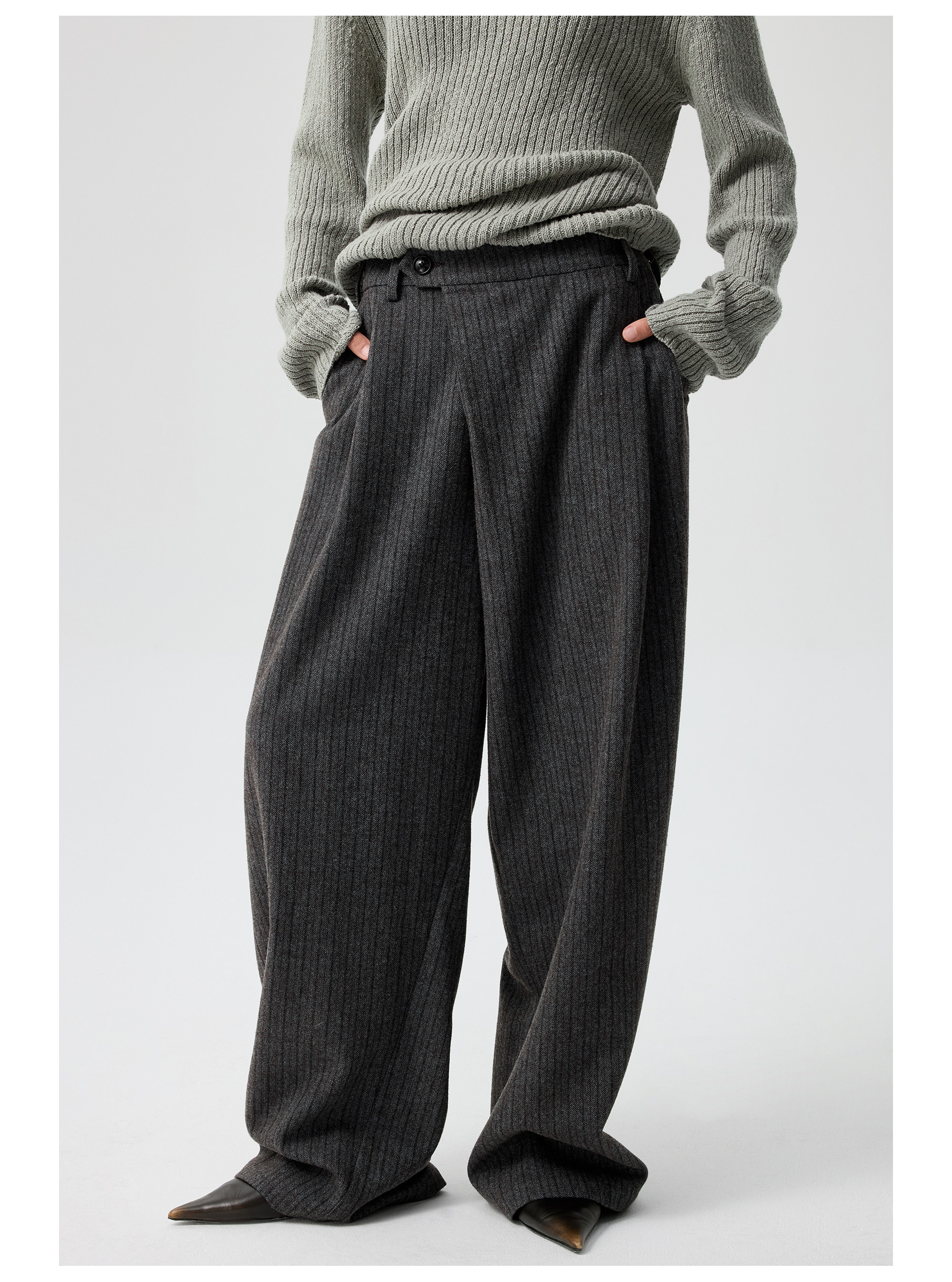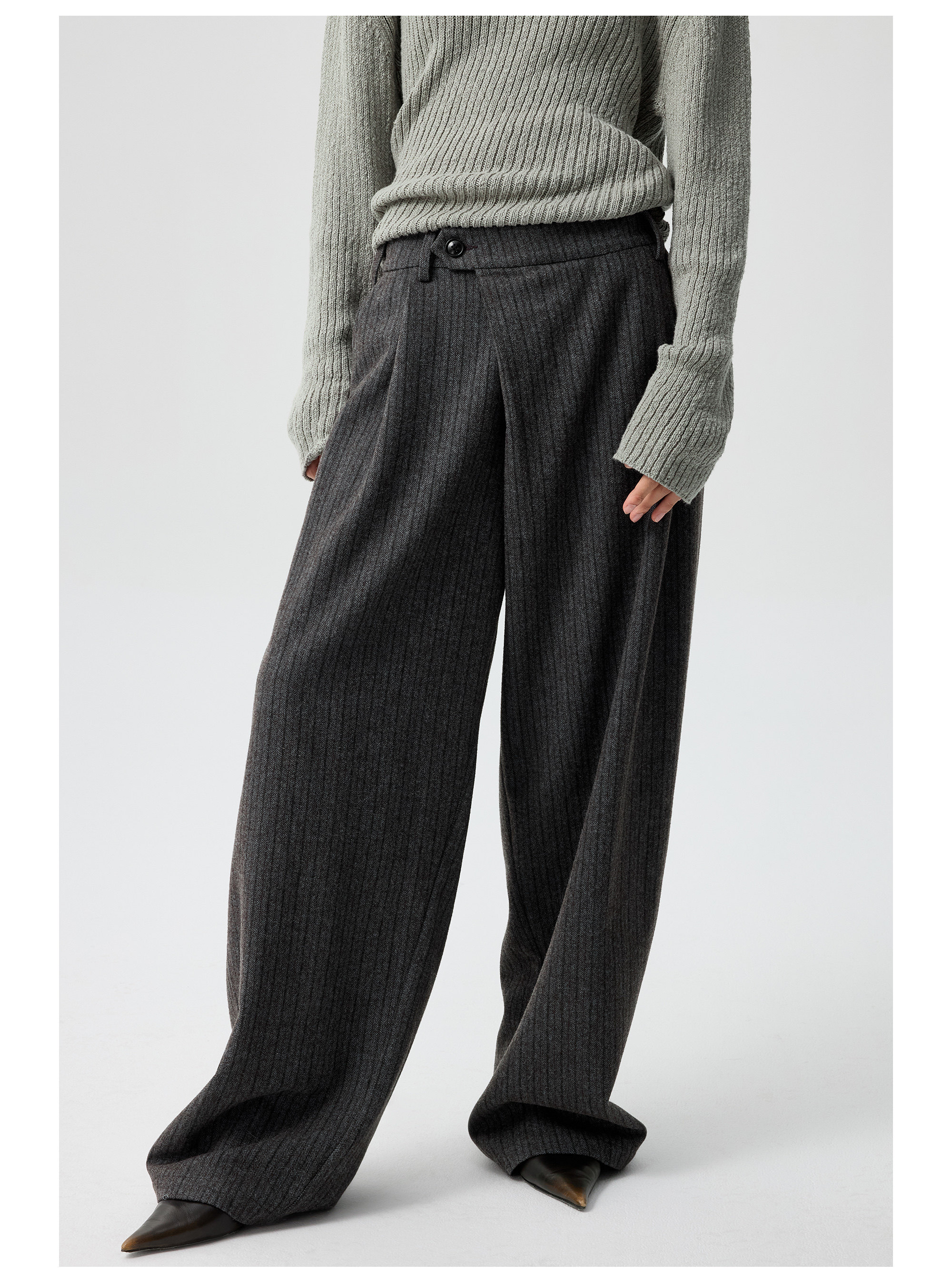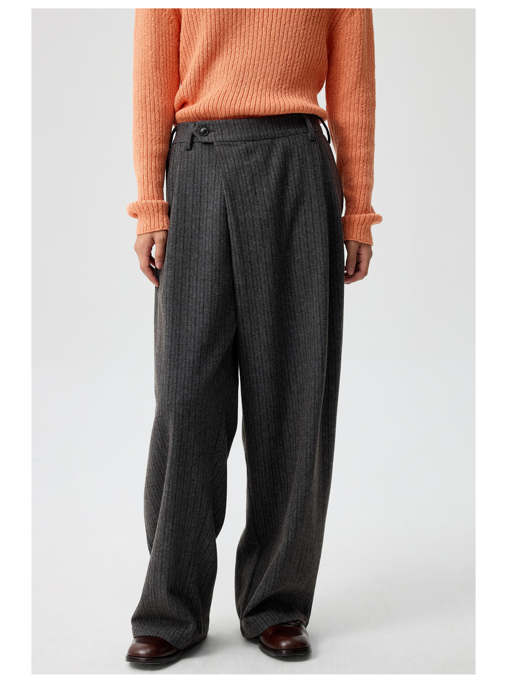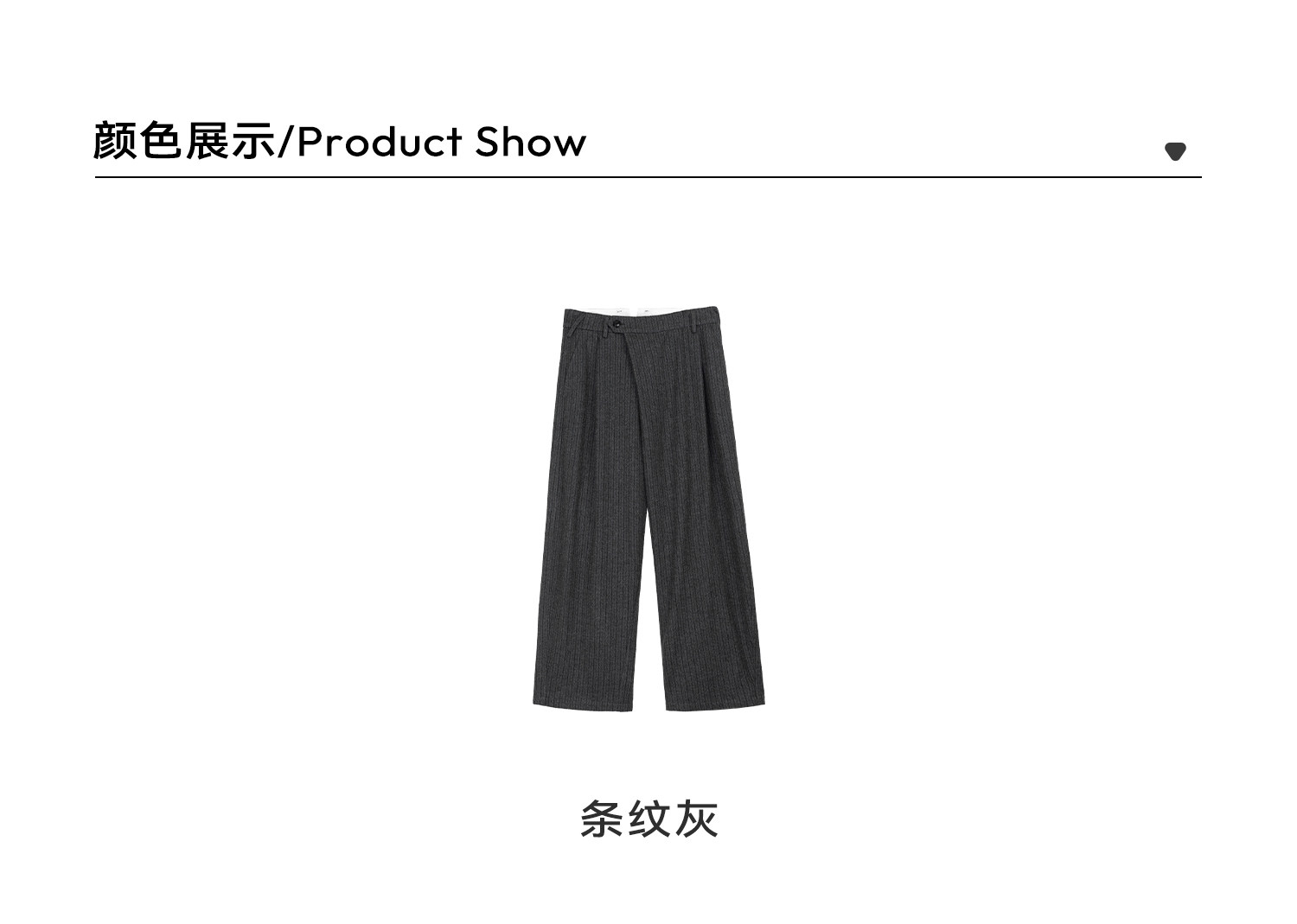 Simple Project/K25246/折叠门襟打褶条纹毛呢长裤