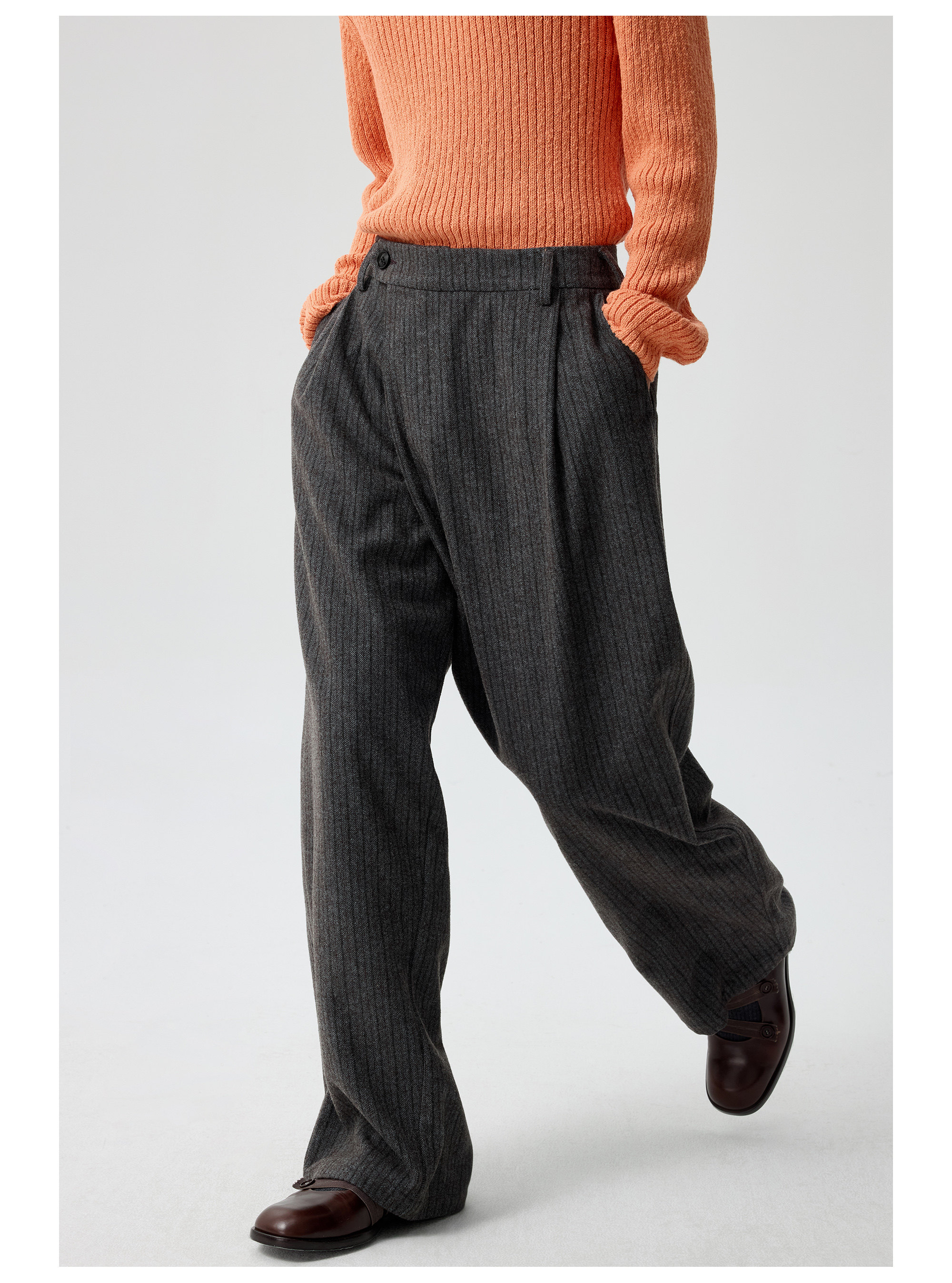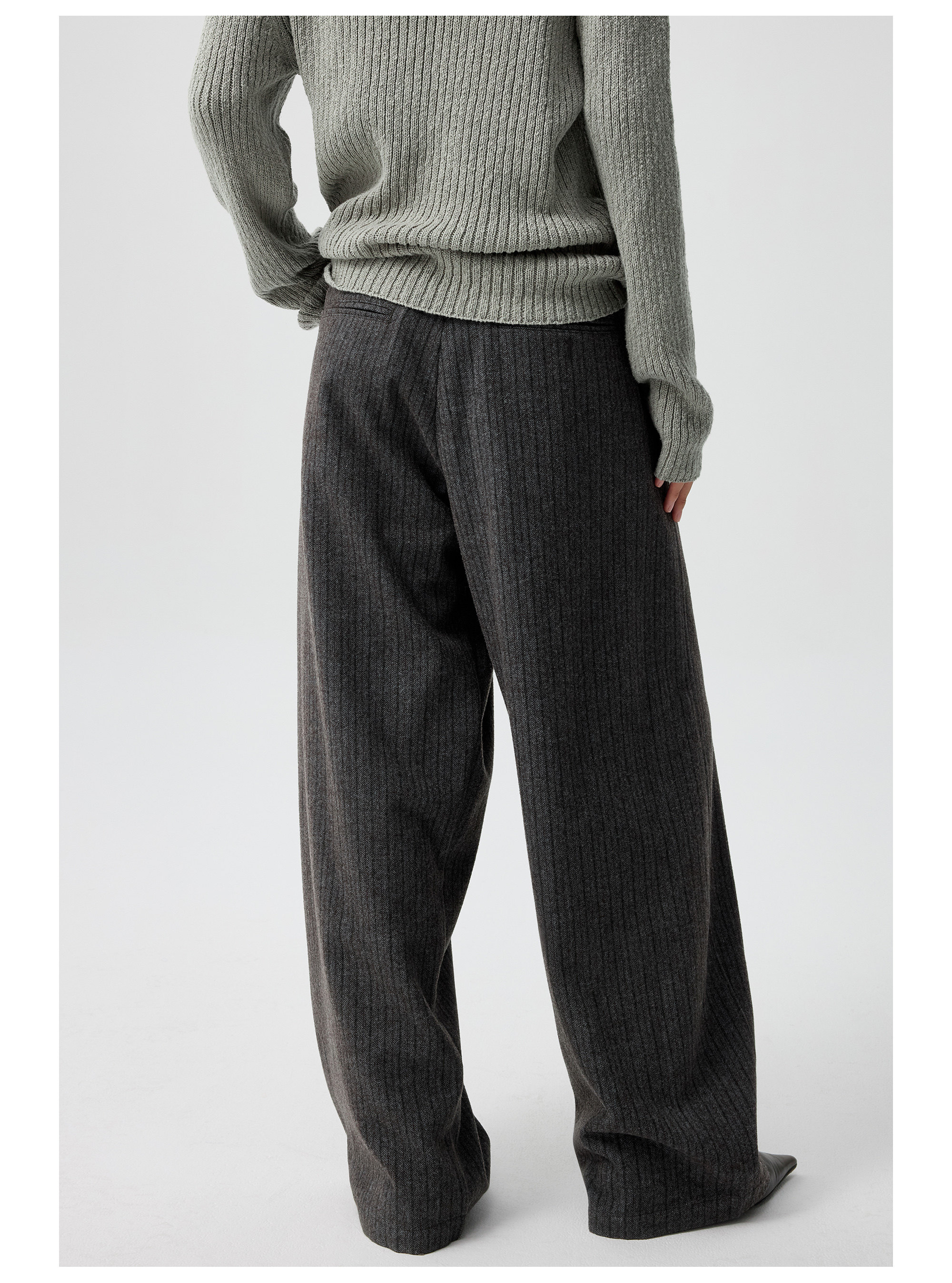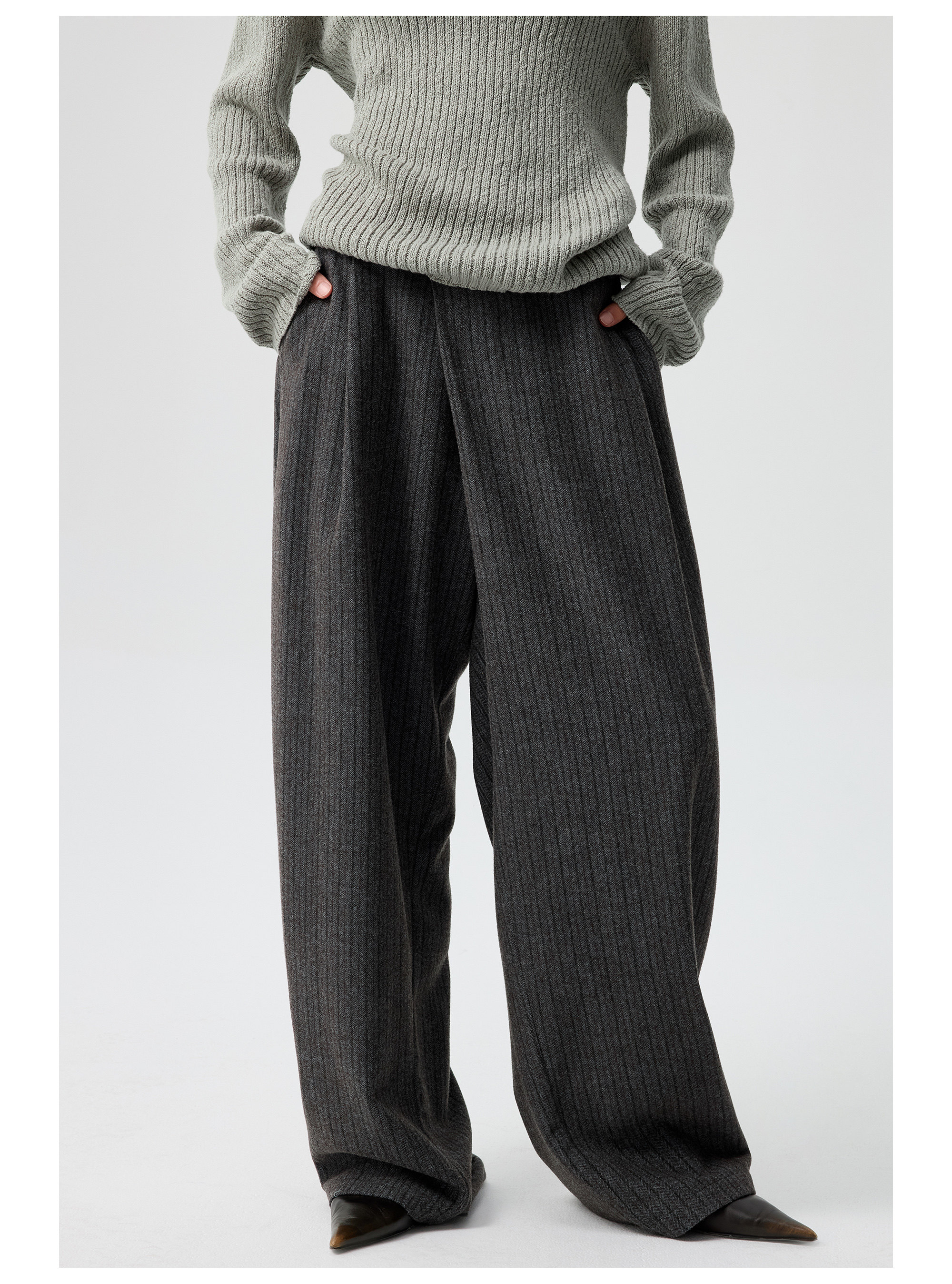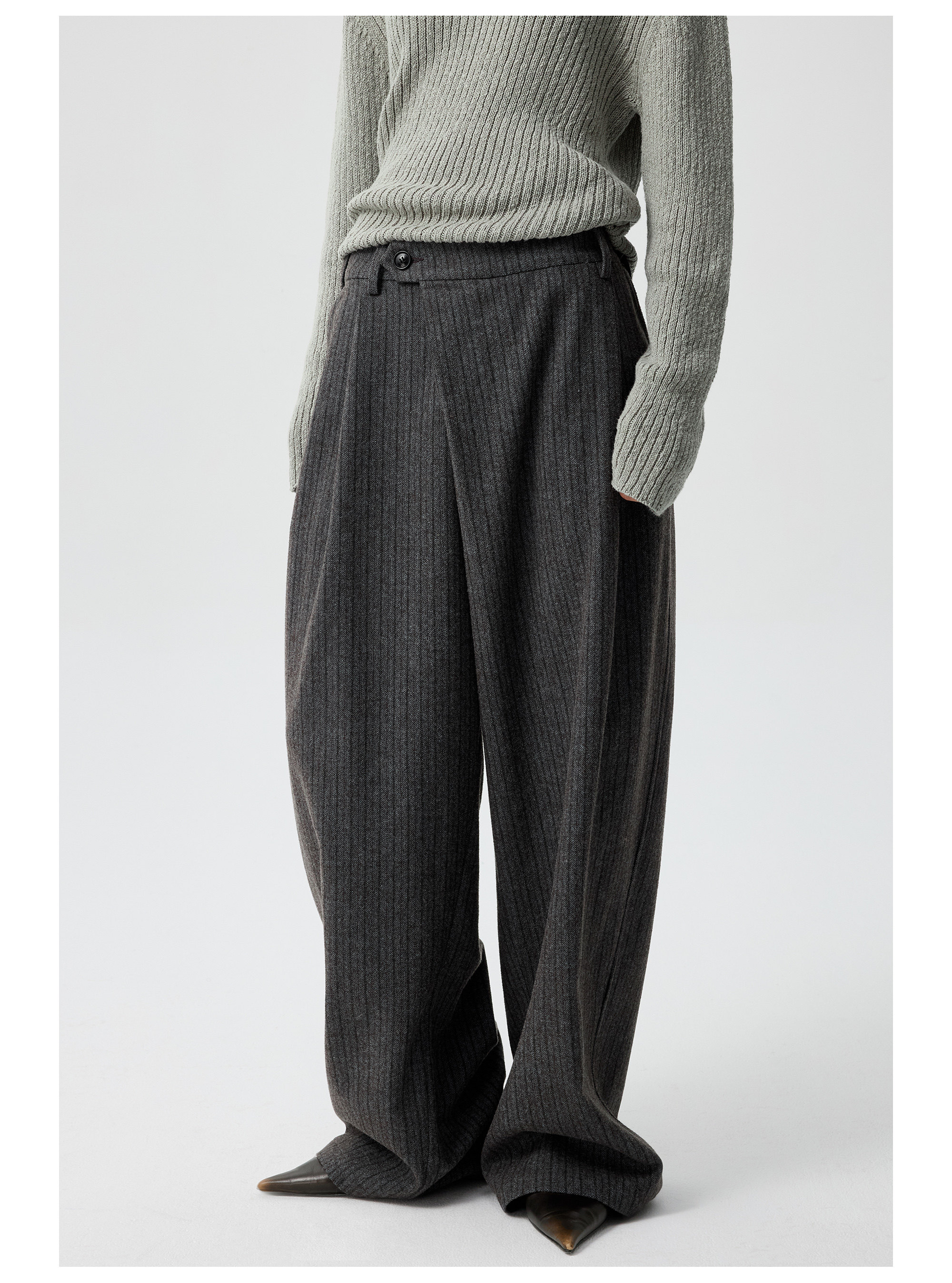 Simple Project/K25246/折叠门襟打褶条纹毛呢长裤