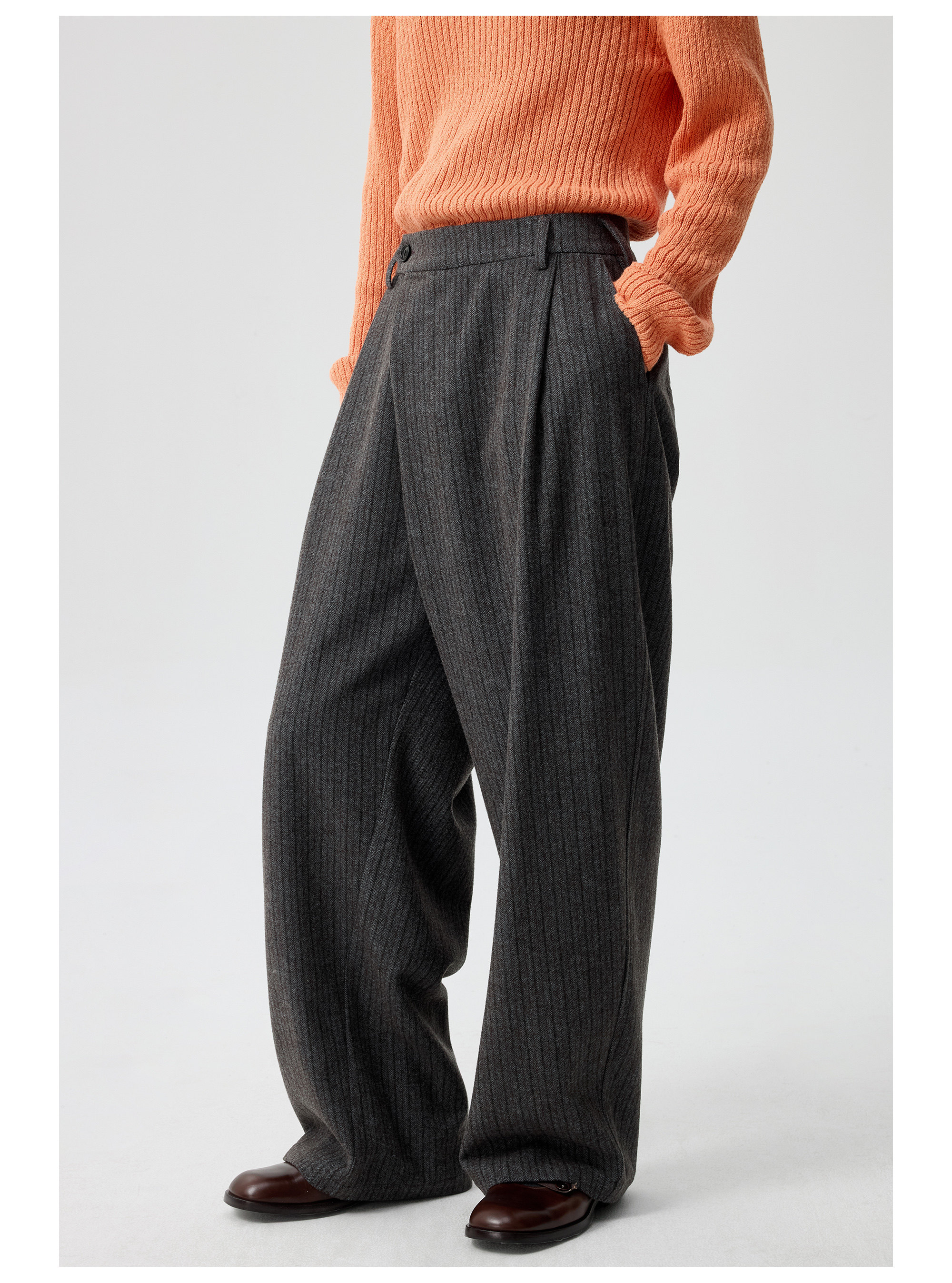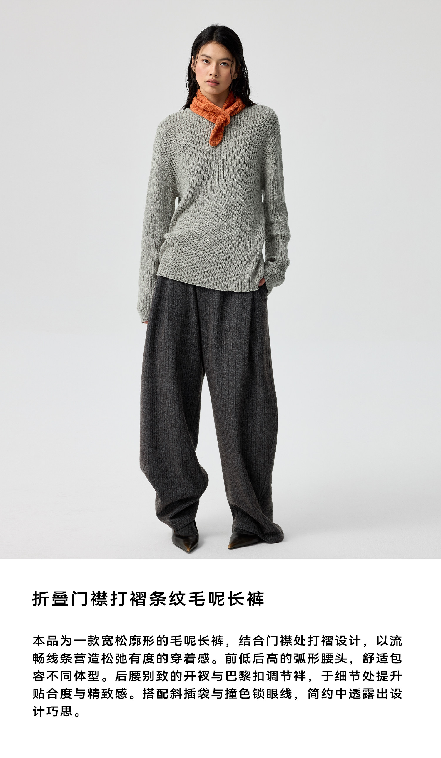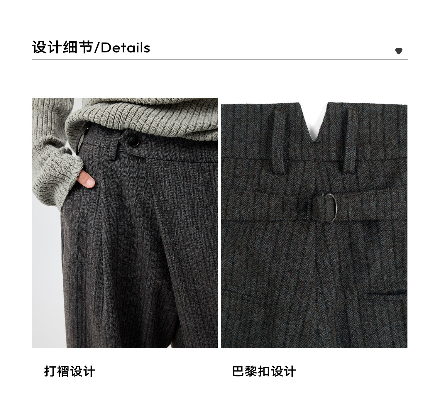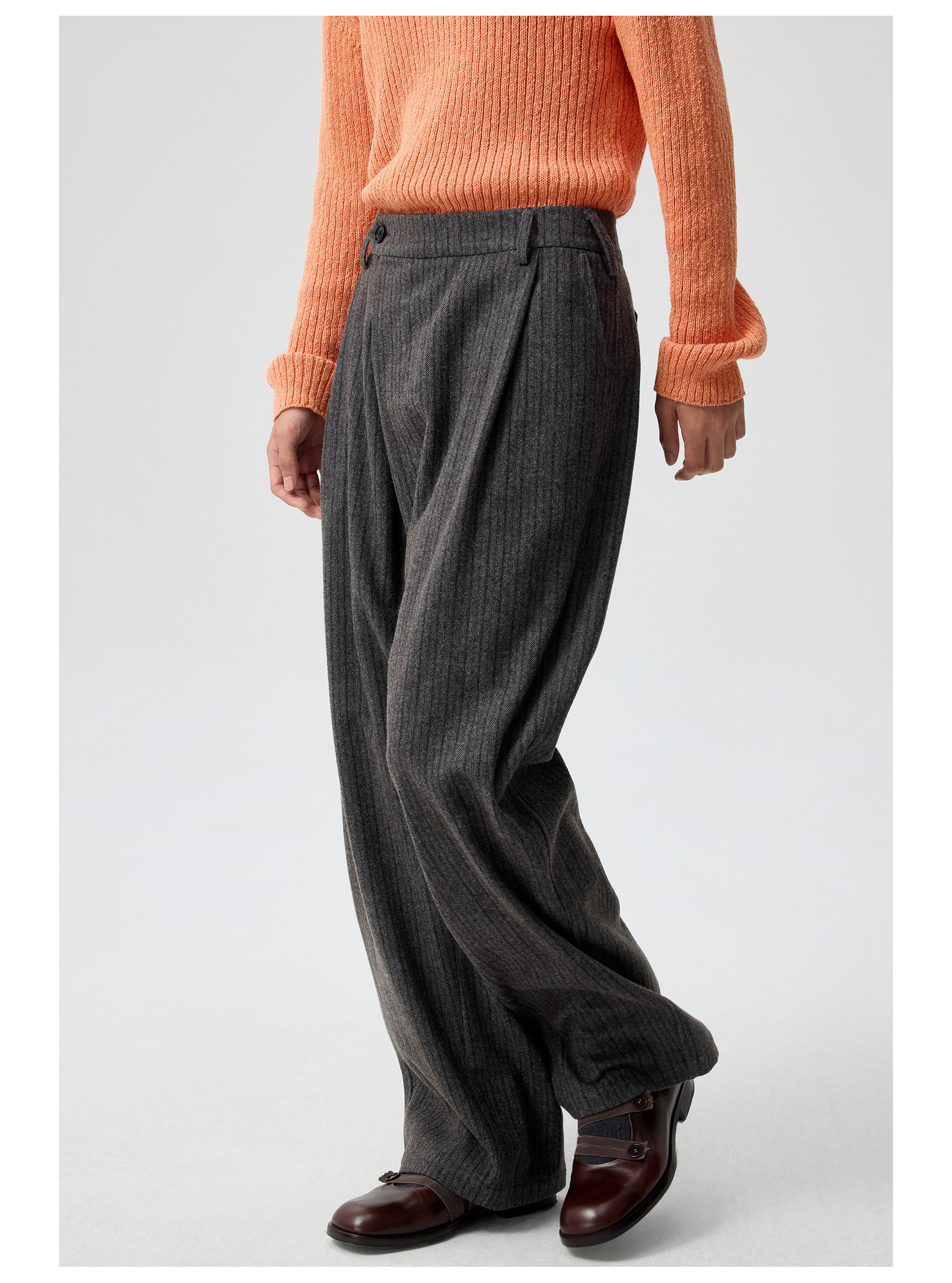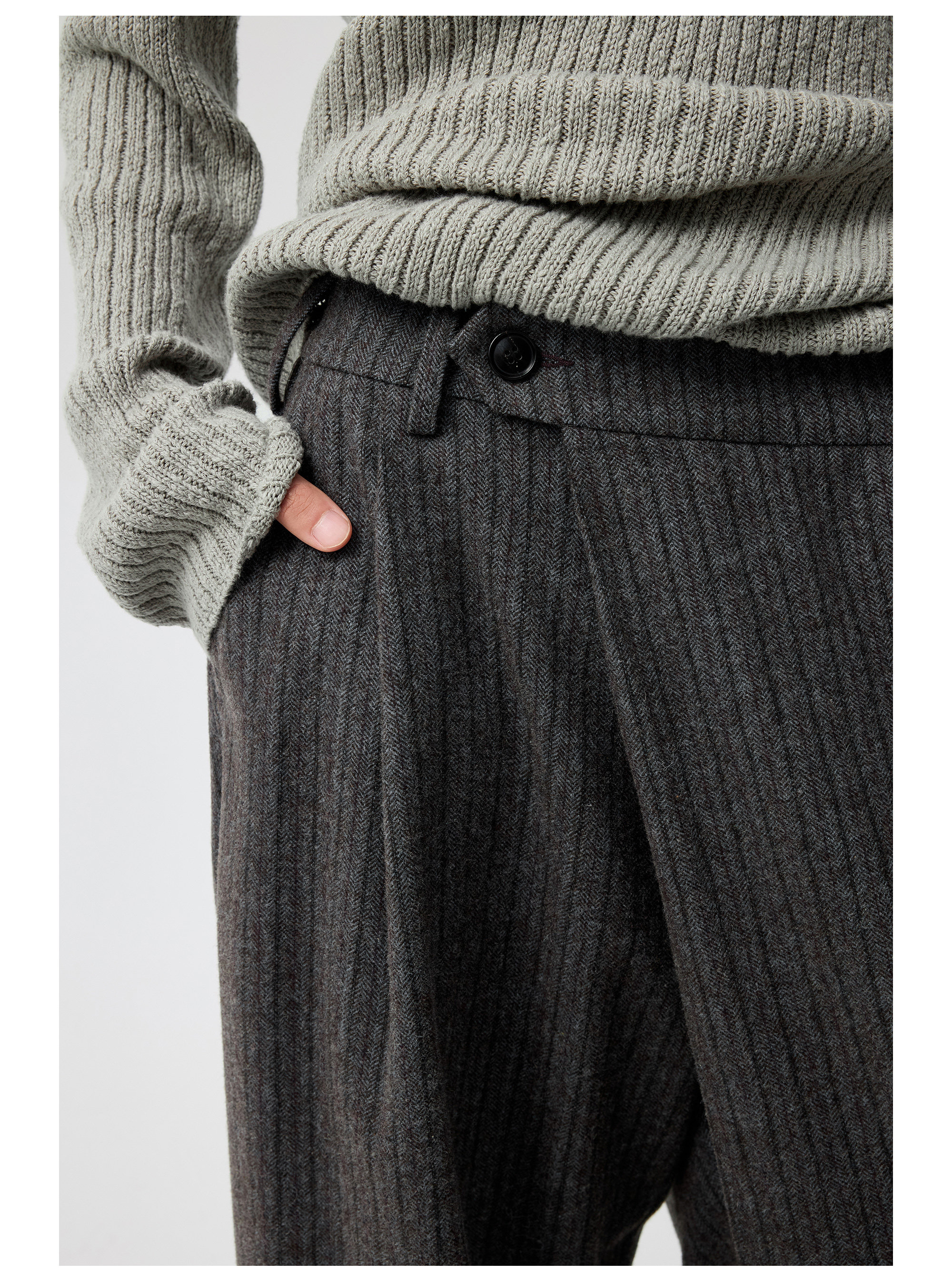 Simple Project/K25246/折叠门襟打褶条纹毛呢长裤