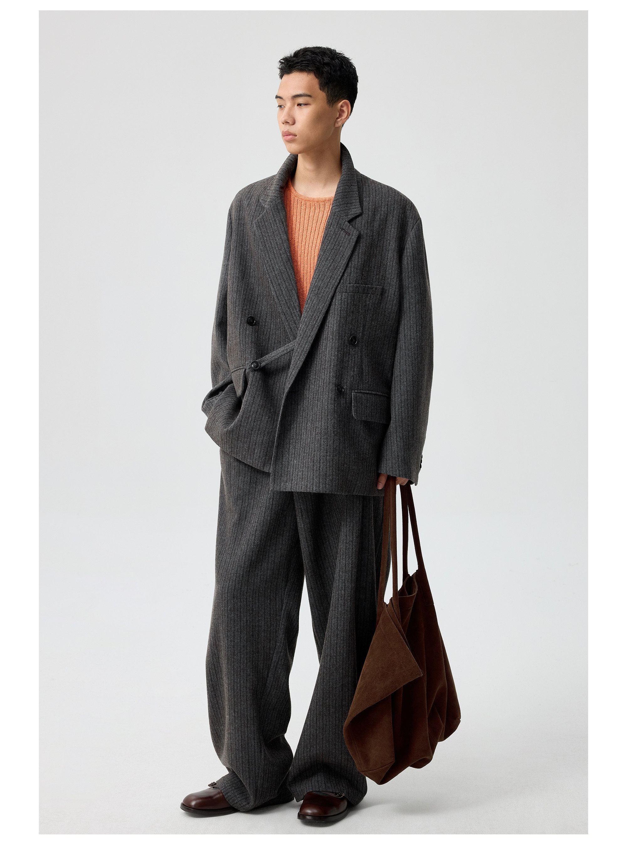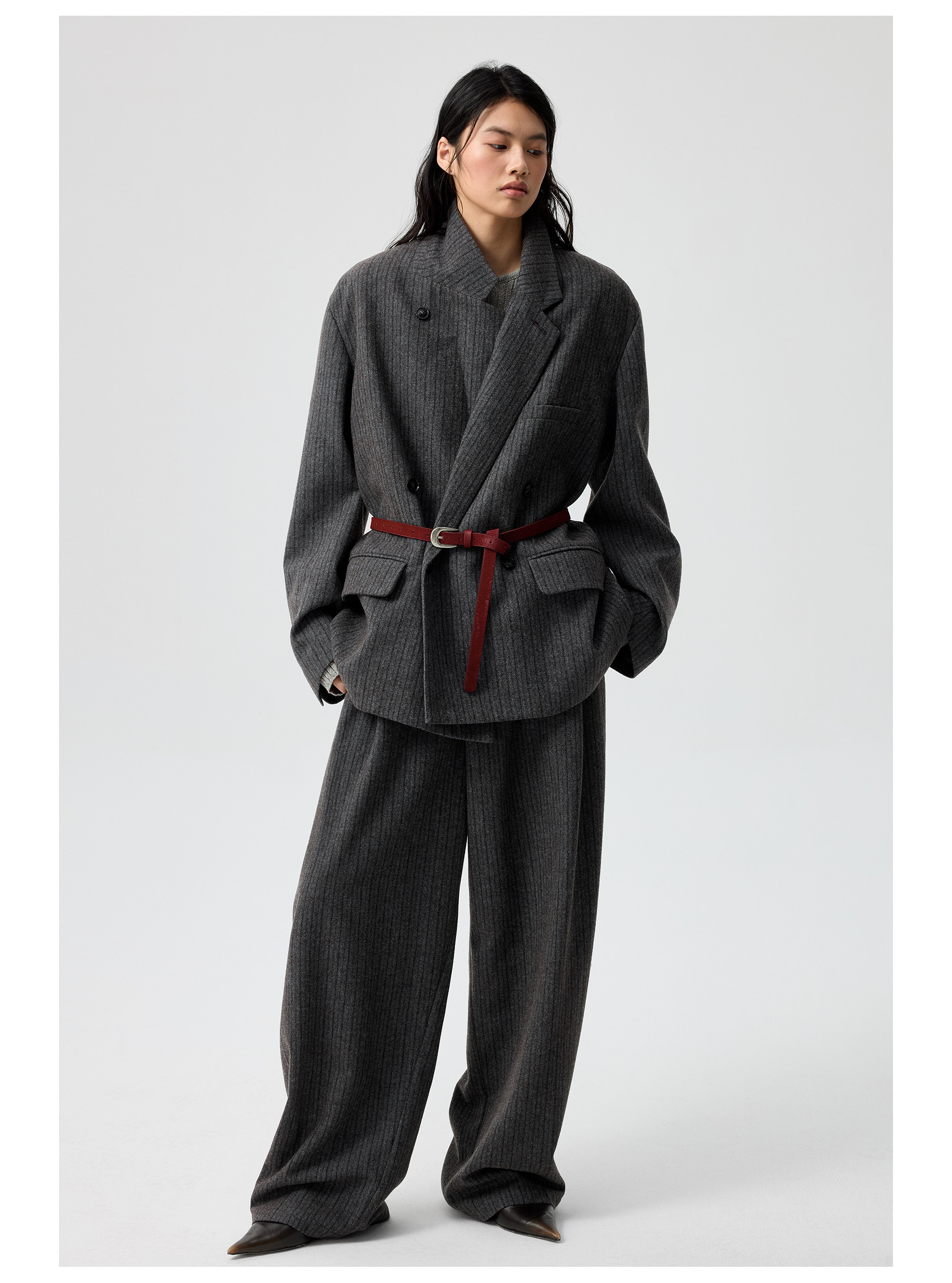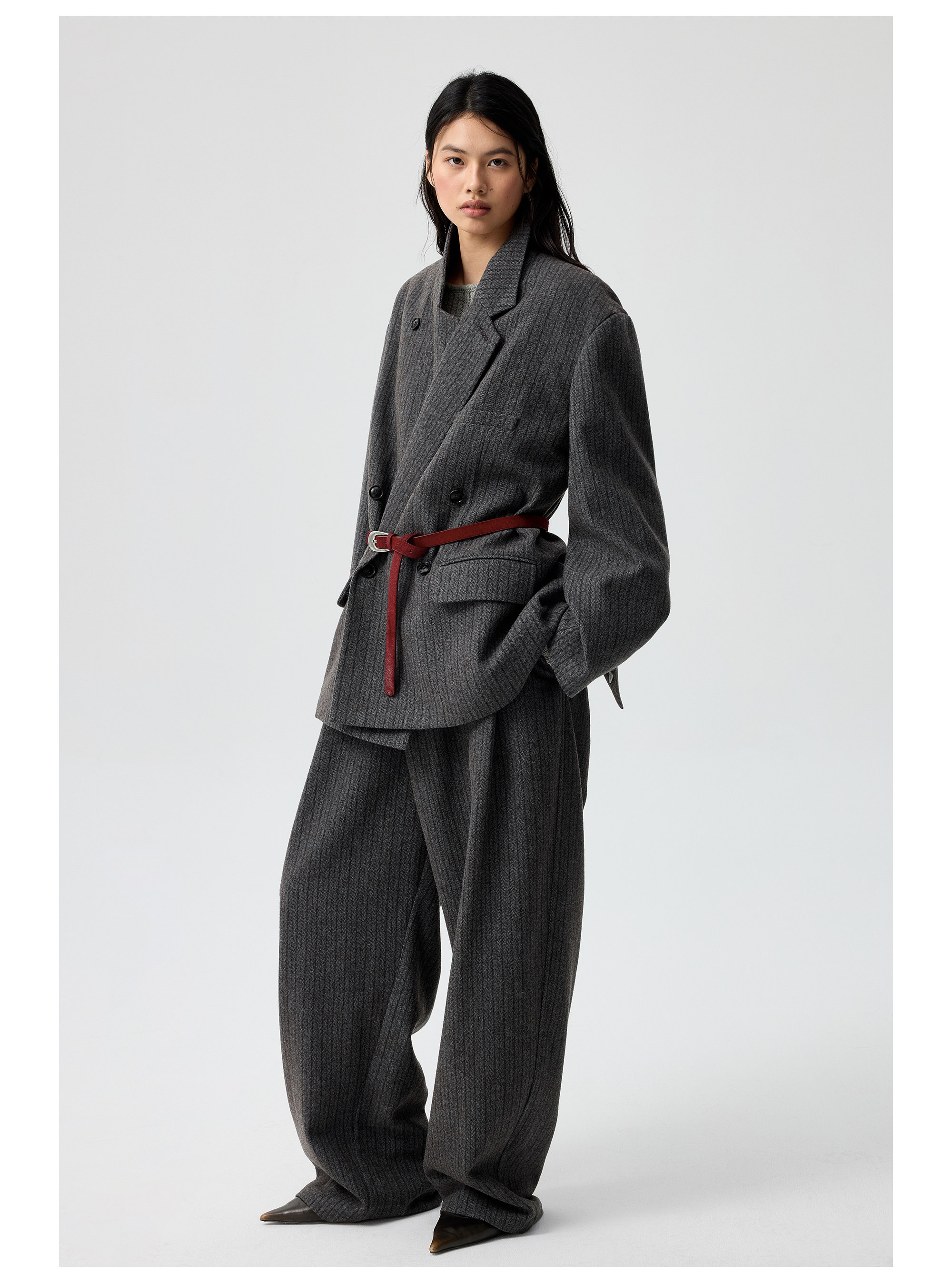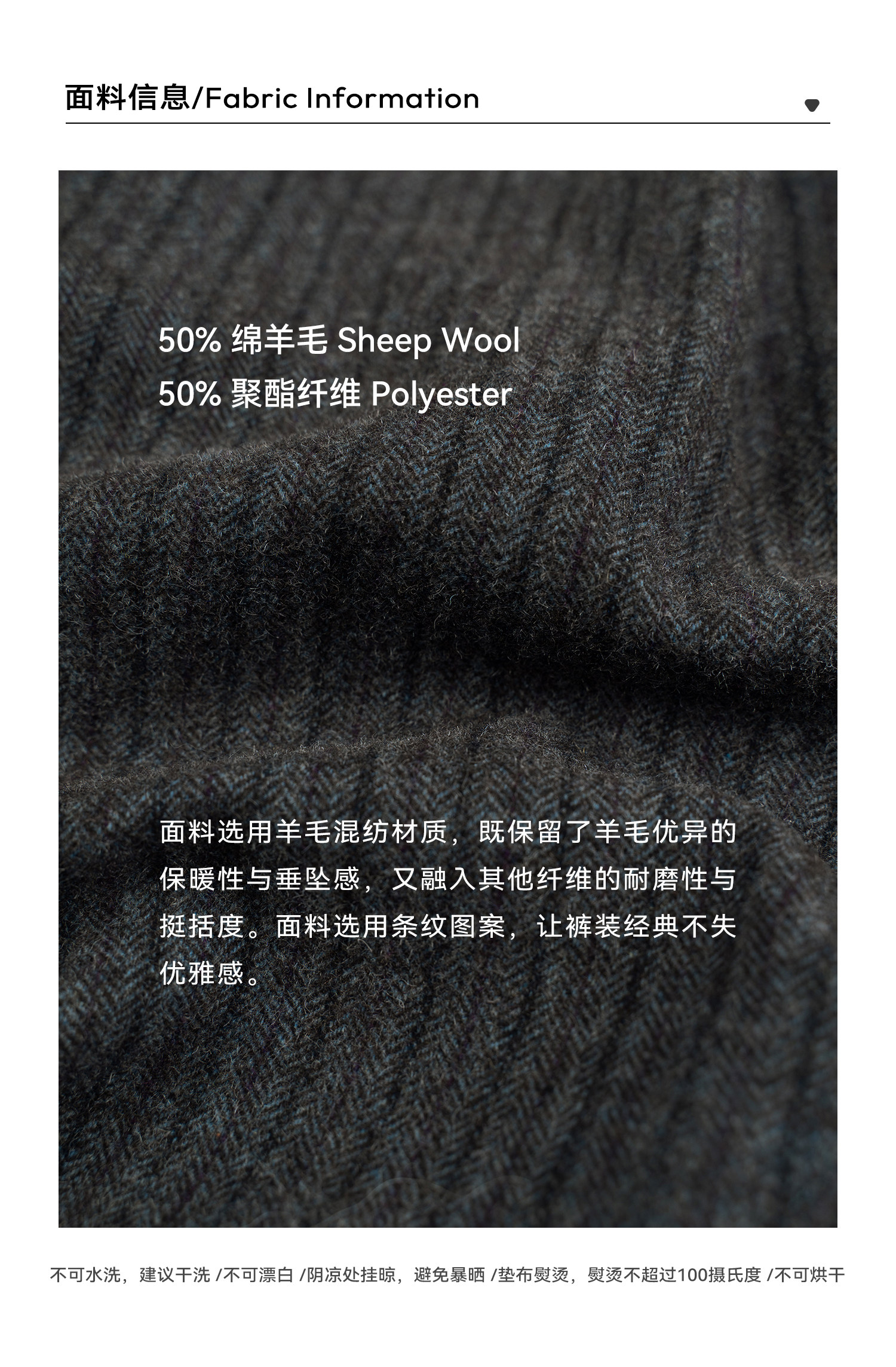 Simple Project/K25246/折叠门襟打褶条纹毛呢长裤