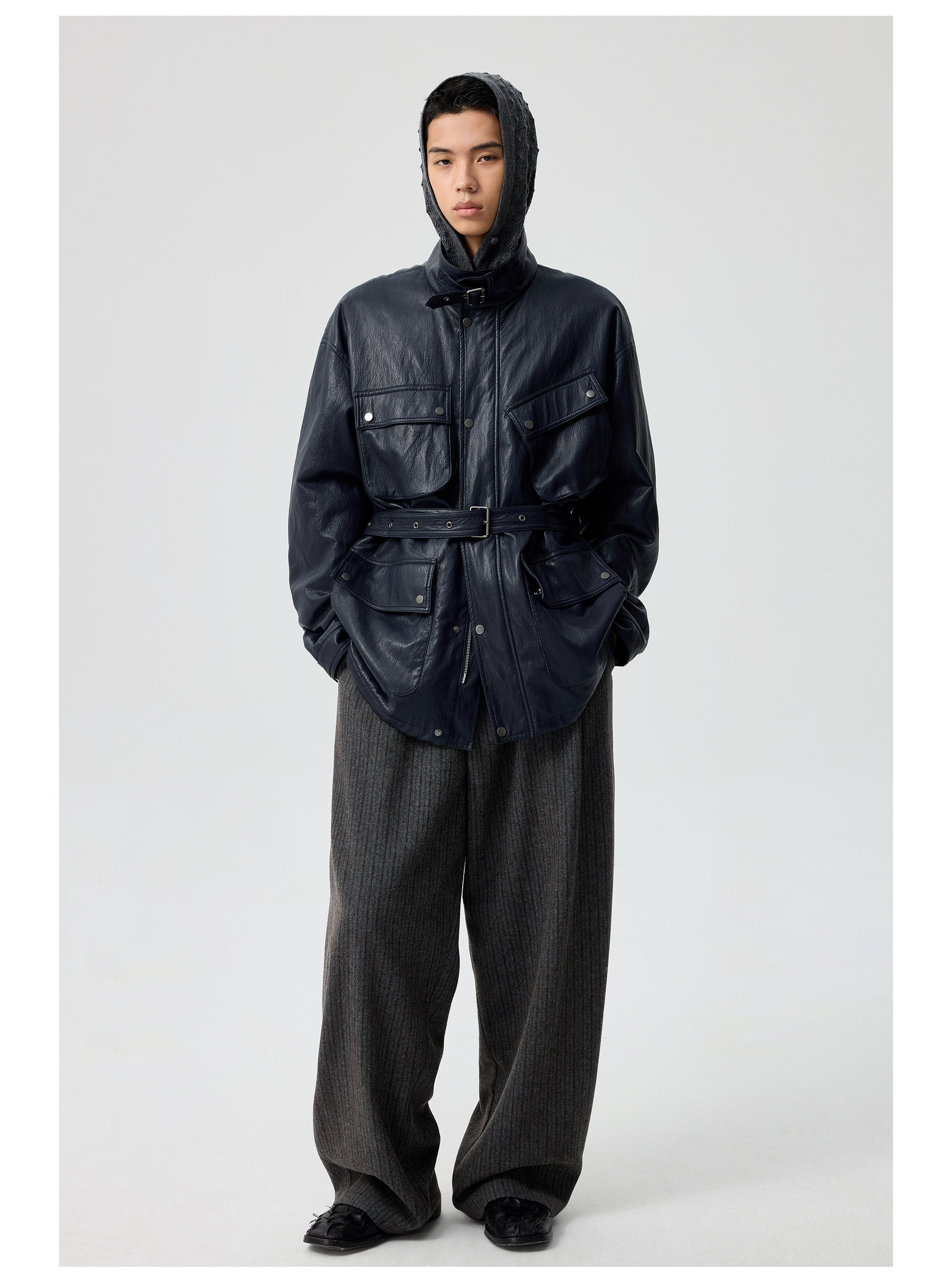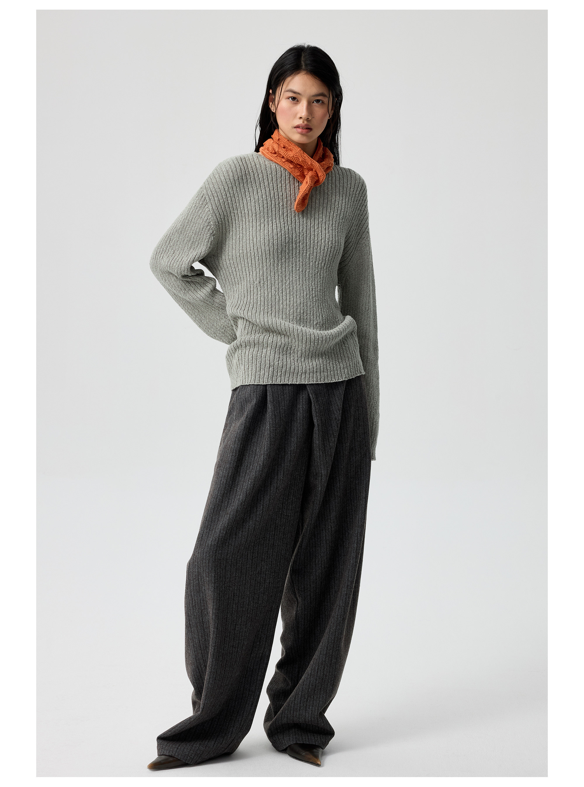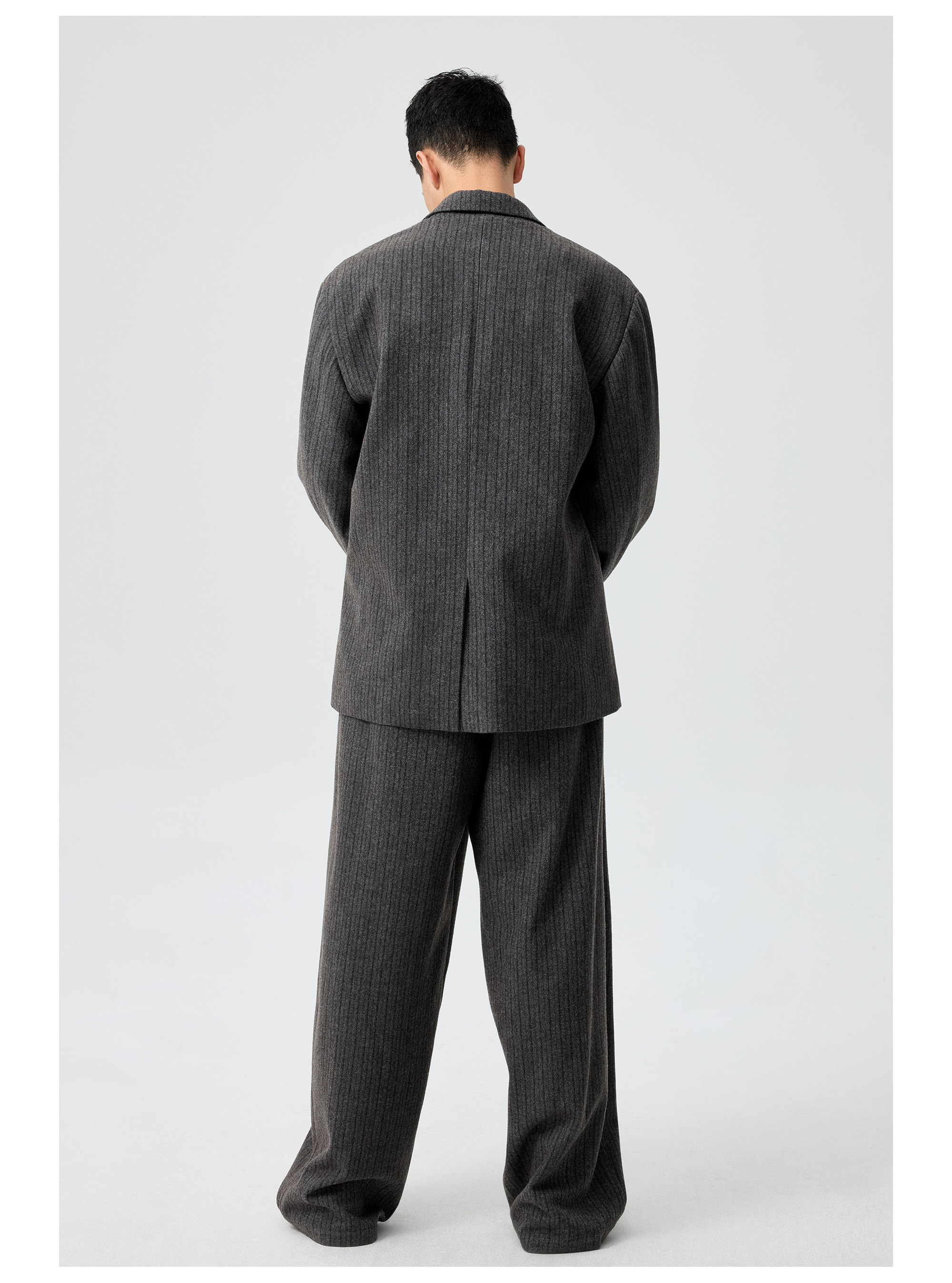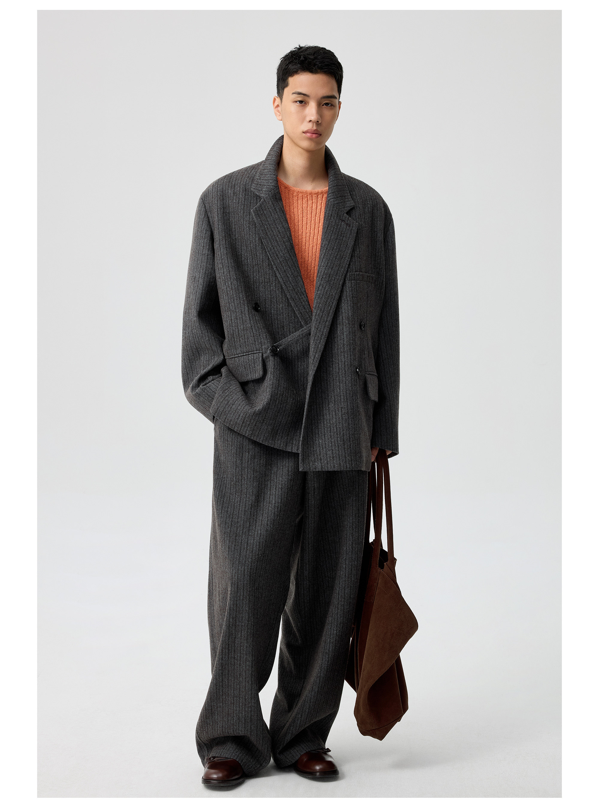 Simple Project/K25246/折叠门襟打褶条纹毛呢长裤