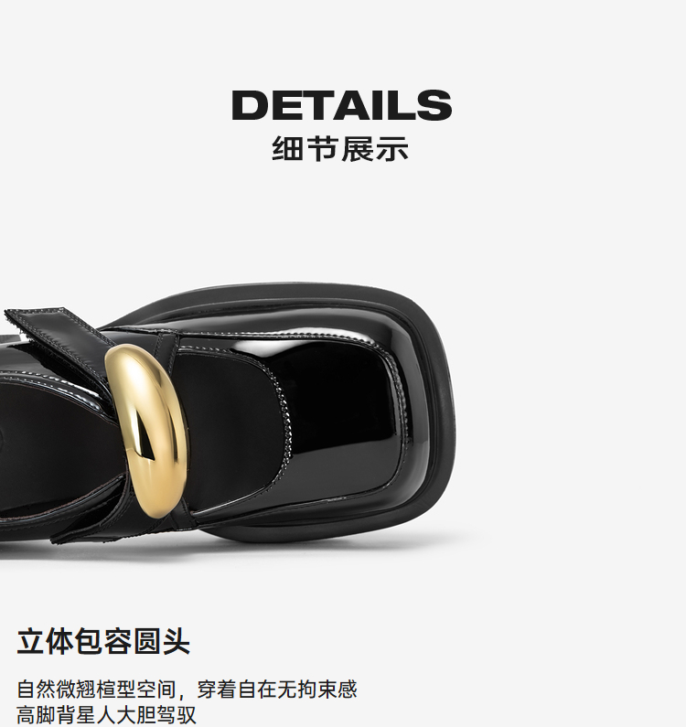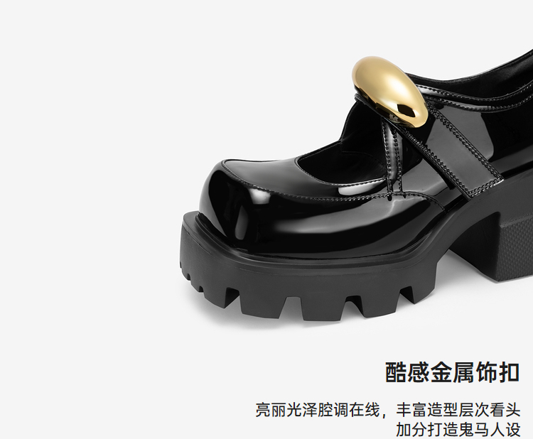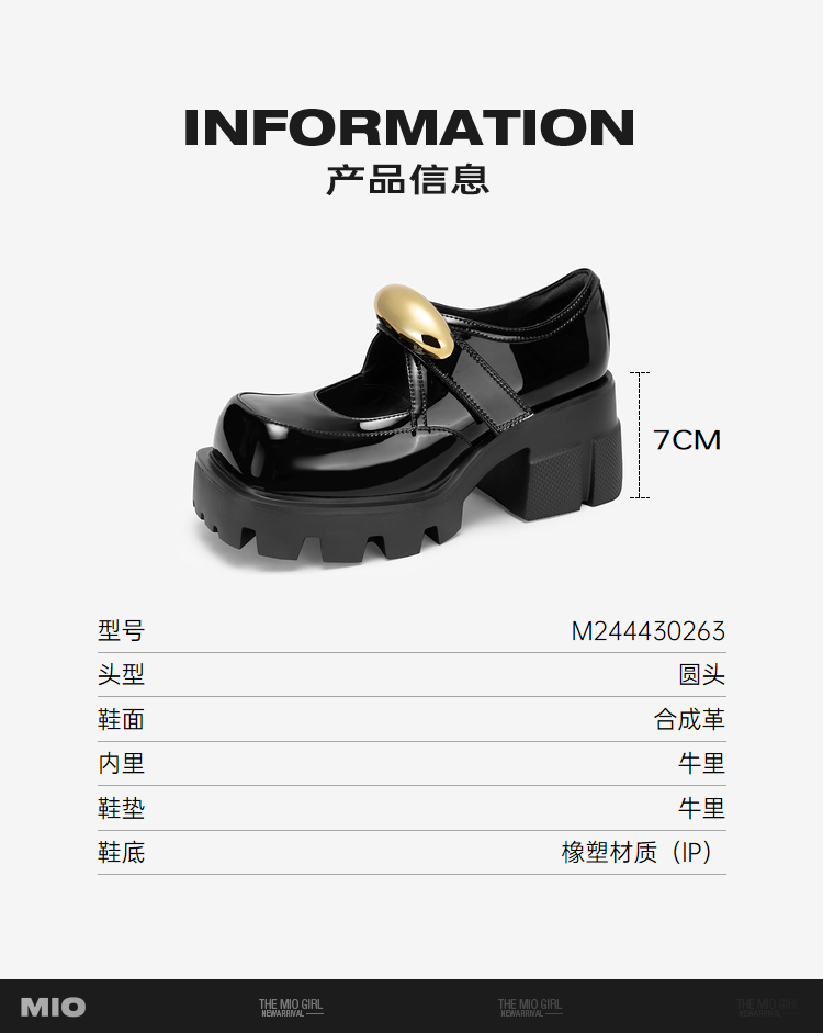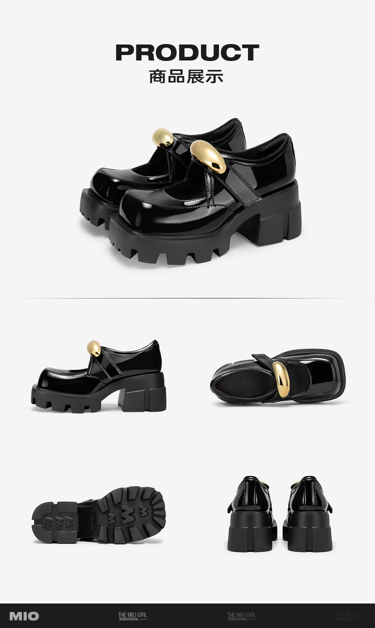 MIO米奥秋季圆头粗跟单鞋金属饰扣复古少女玛丽珍鞋女鞋M244430263