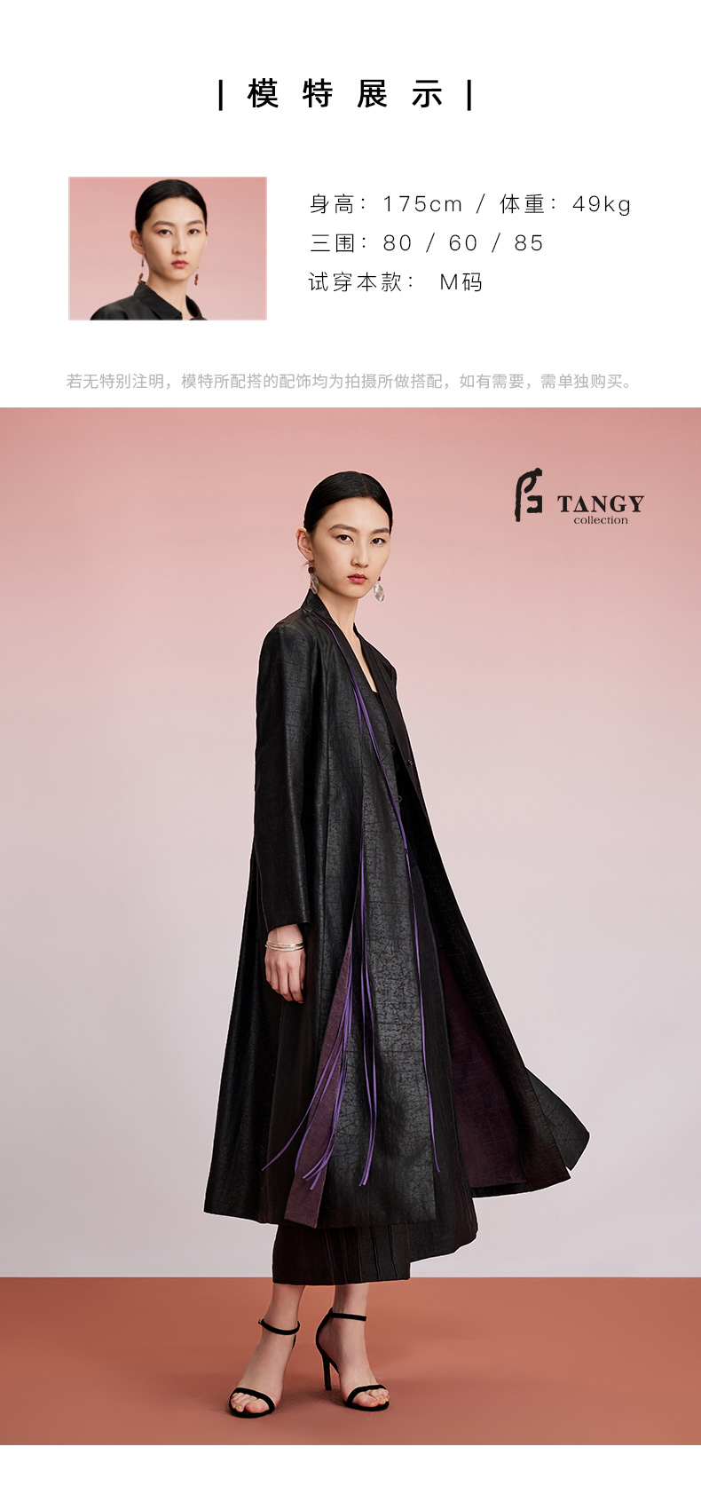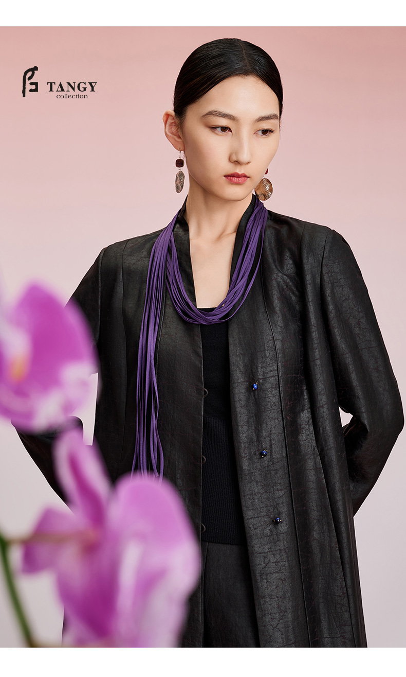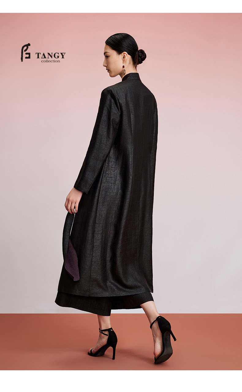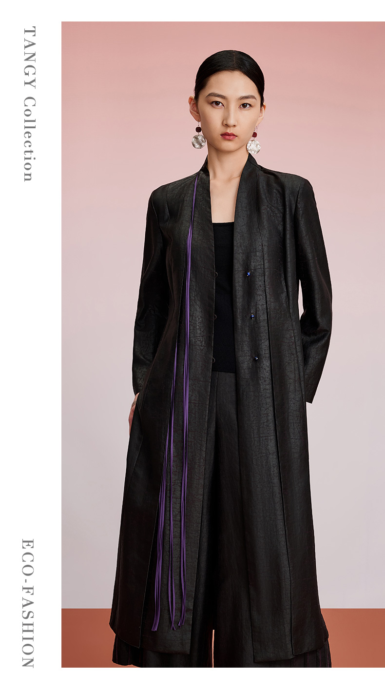 TANGY Collection天意精品2024秋季新品中国风中长款撞色女士风衣外套