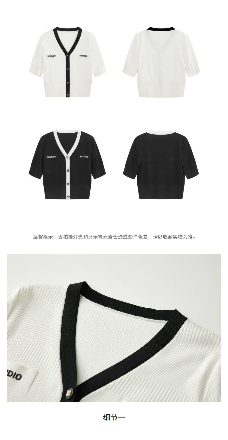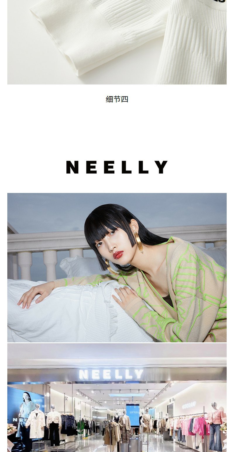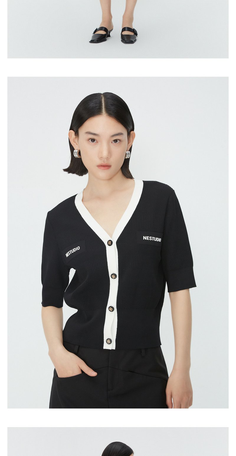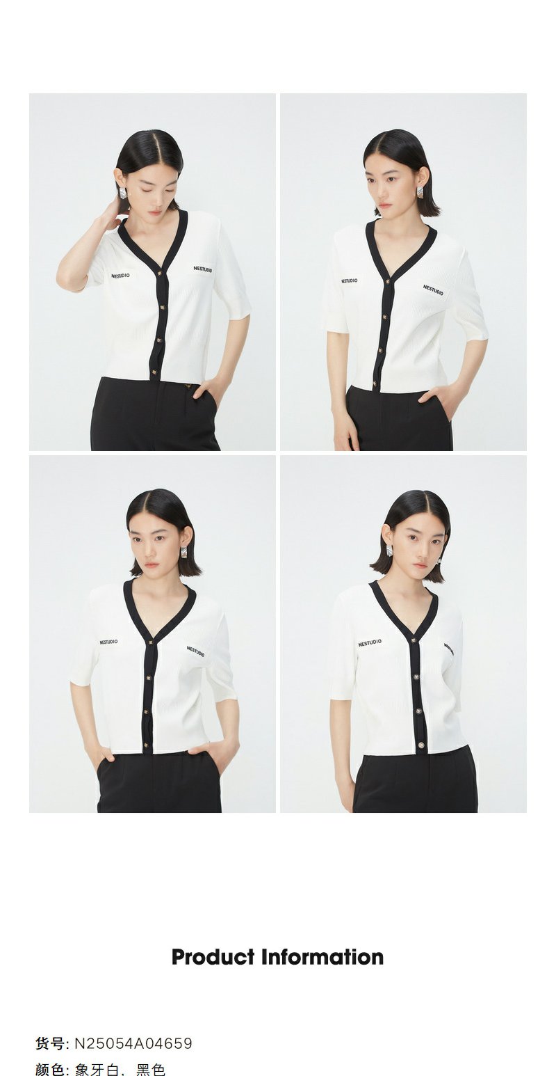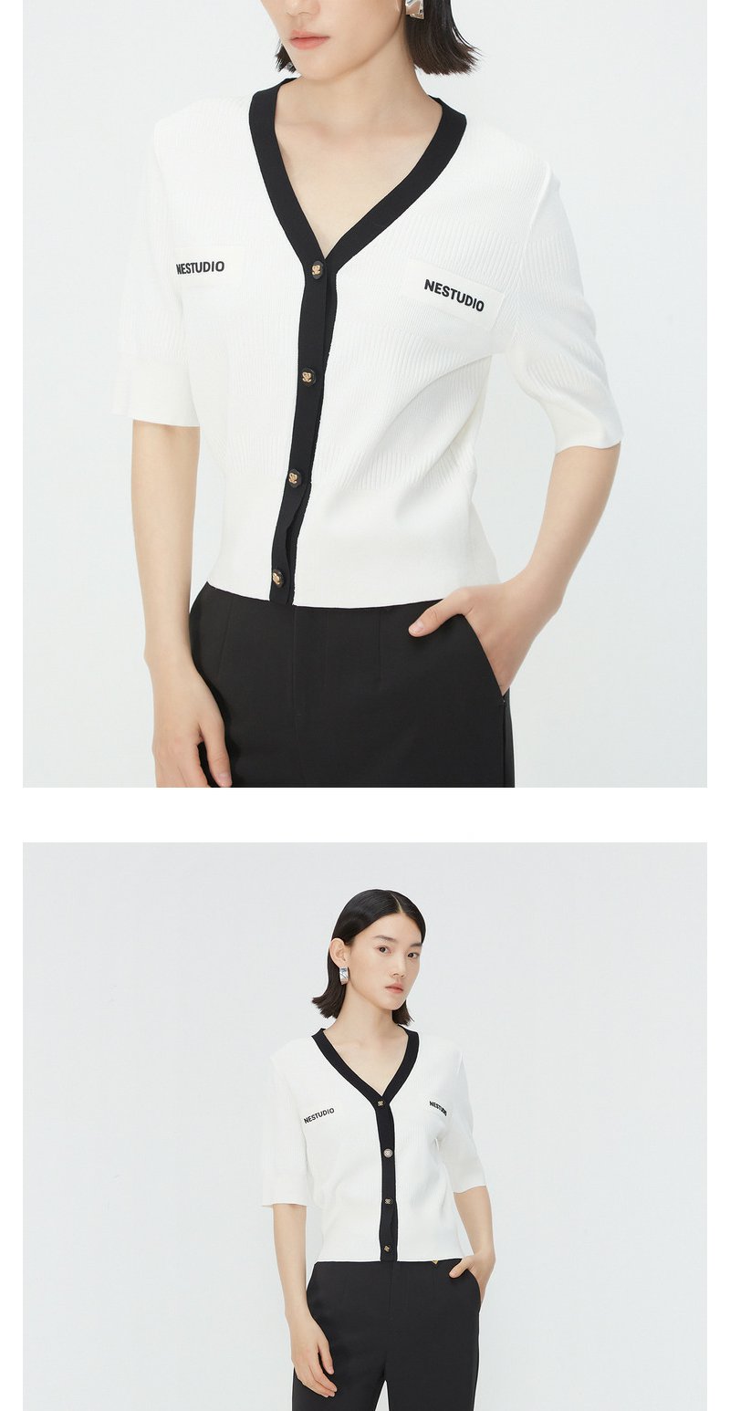 NEELLY纳俪商场同款夏新款五分袖V领针织上衣女简约通勤显瘦上衣N25054A04659