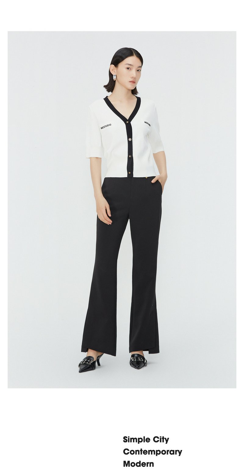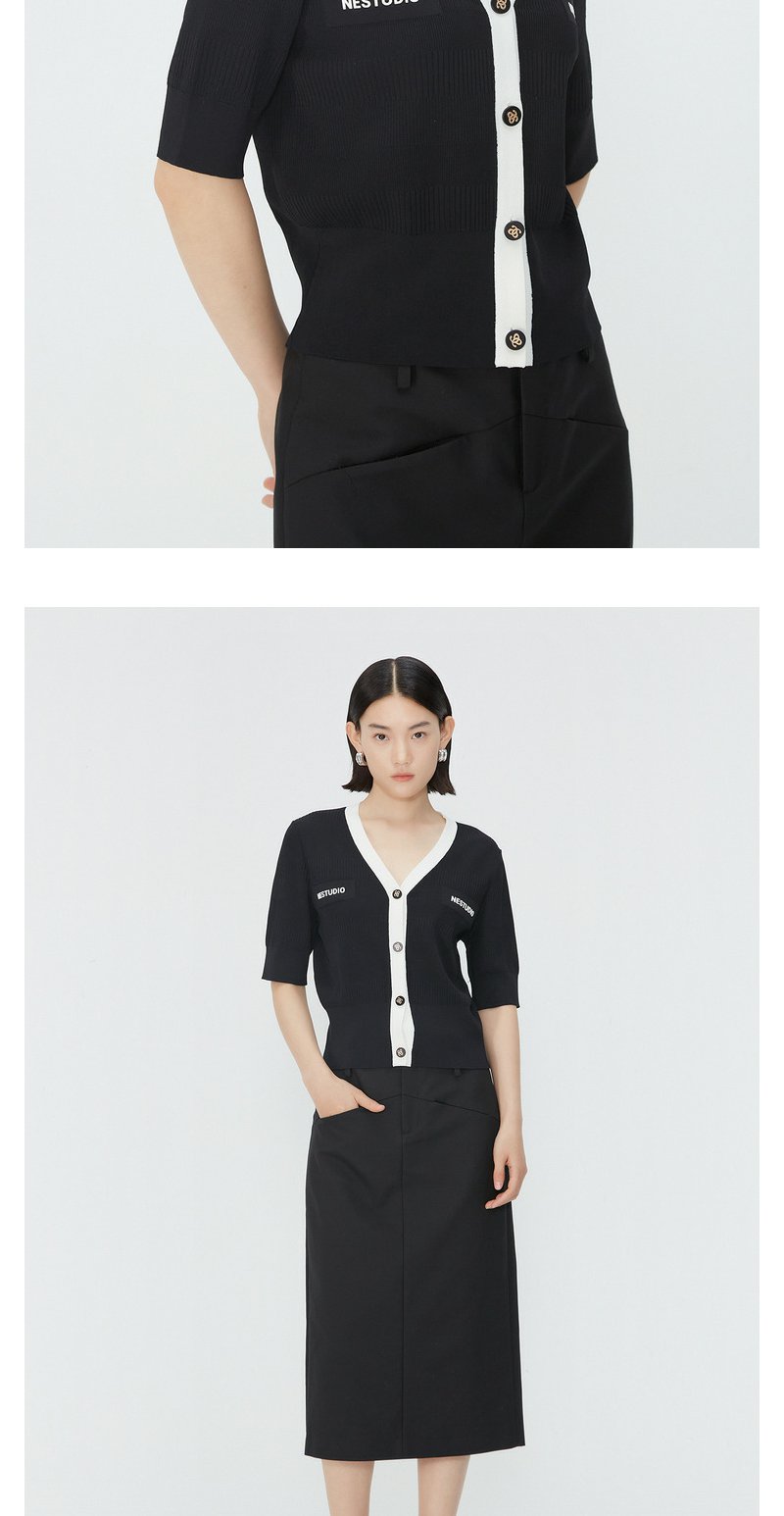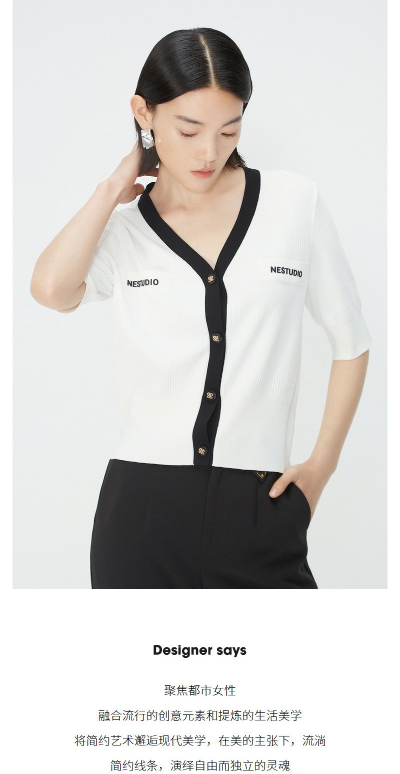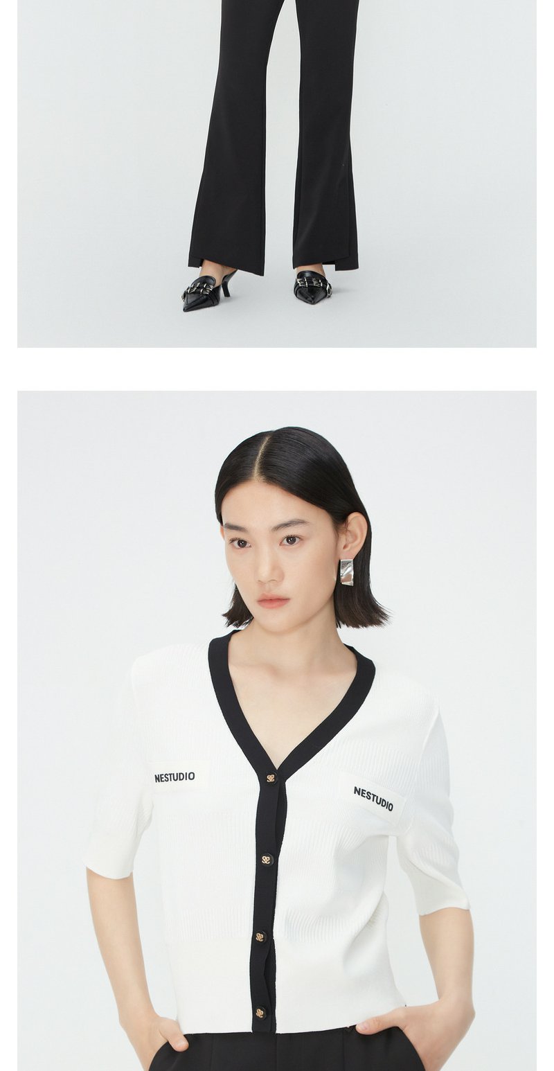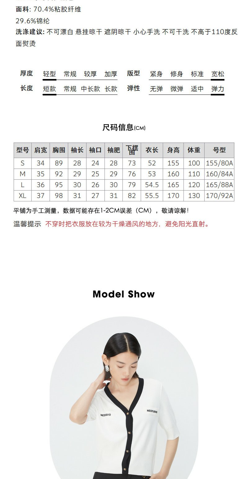 NEELLY纳俪商场同款夏新款五分袖V领针织上衣女简约通勤显瘦上衣N25054A04659