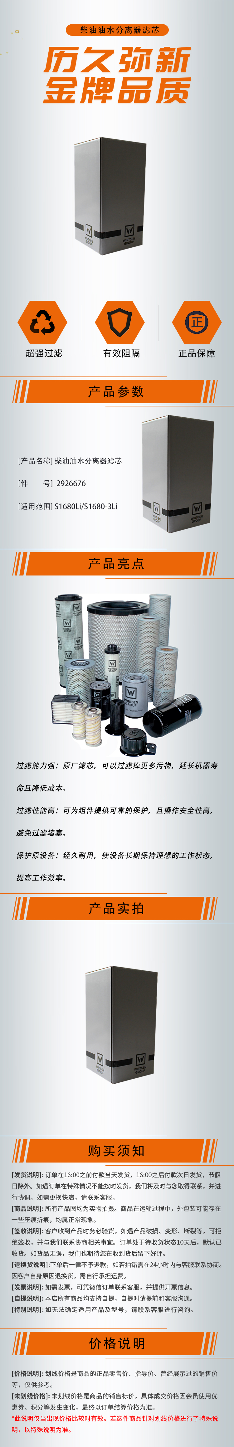 【柴油油水分离器滤芯2669976】适用于S1680Li/S1680-3Li