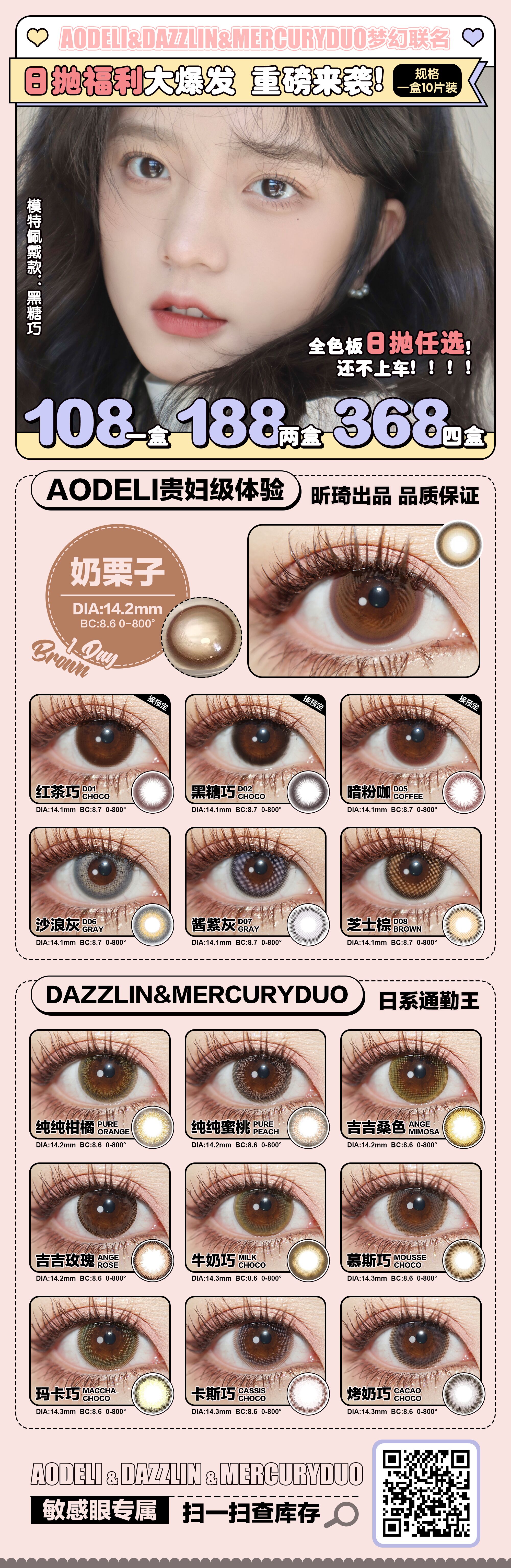 ʚAodeli奥德丽日抛活动ɞ 0-800度(无525/575) 奶栗子 红茶巧 黑糖巧 暗粉咖 酱紫灰 沙浪灰 芝士棕 HOT