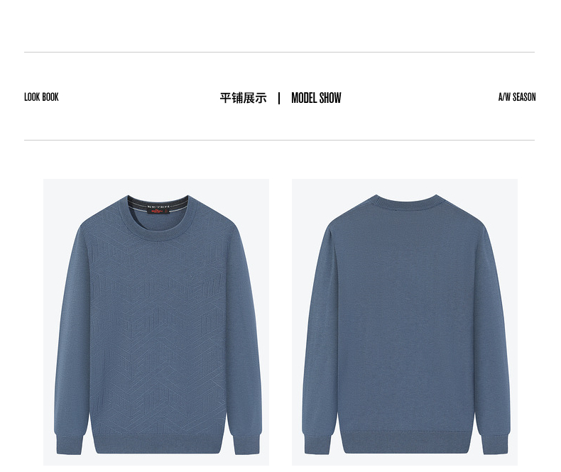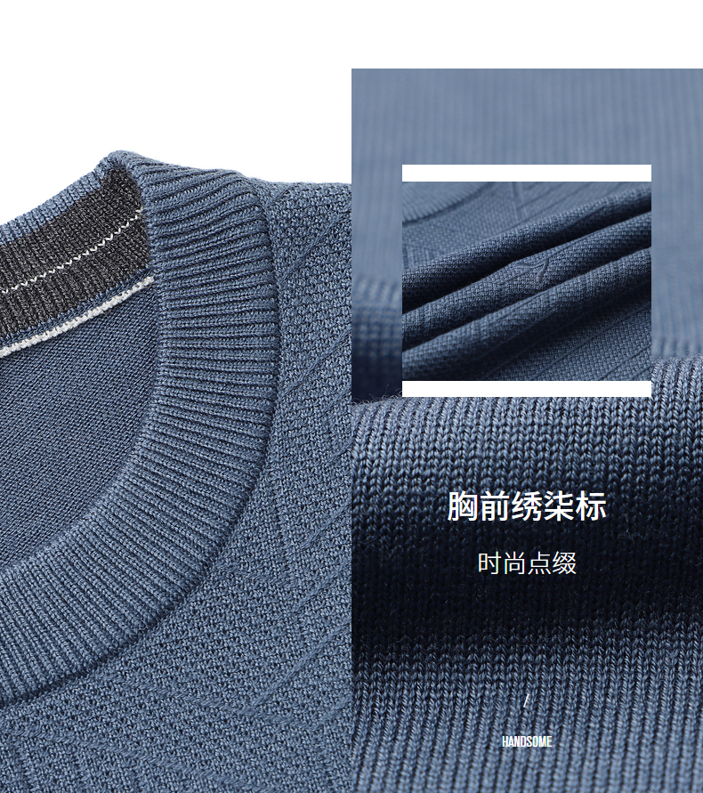【可机洗】柒牌男士毛衣2024春夏新款时尚字母提花抗静电圆领毛衫126Y70040