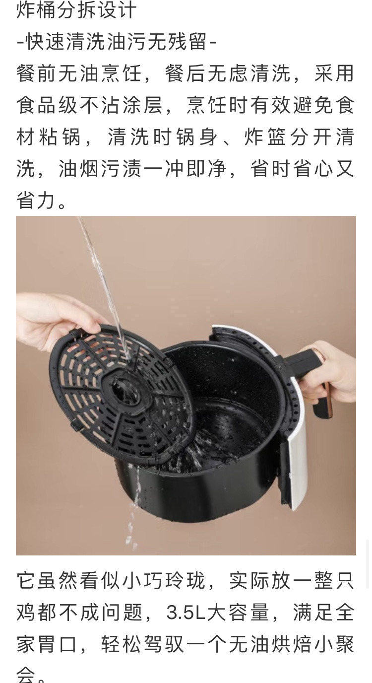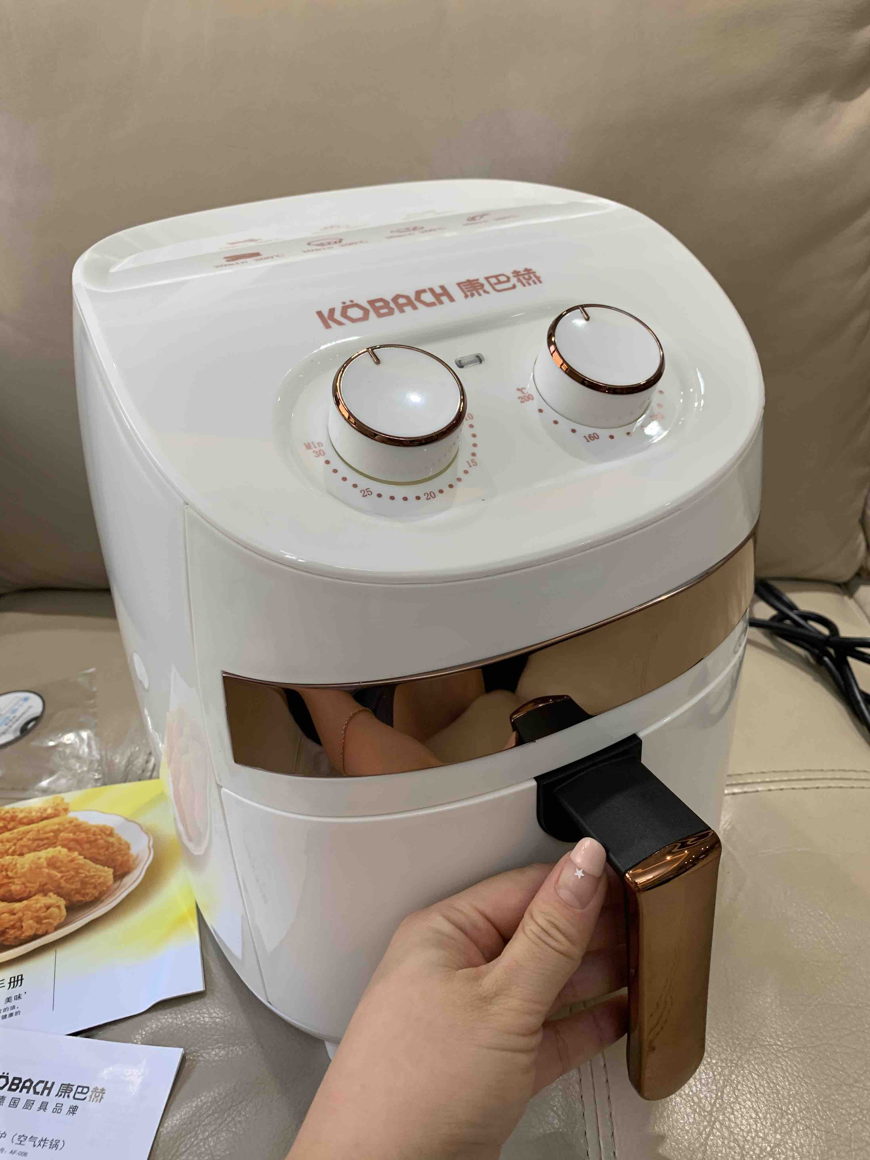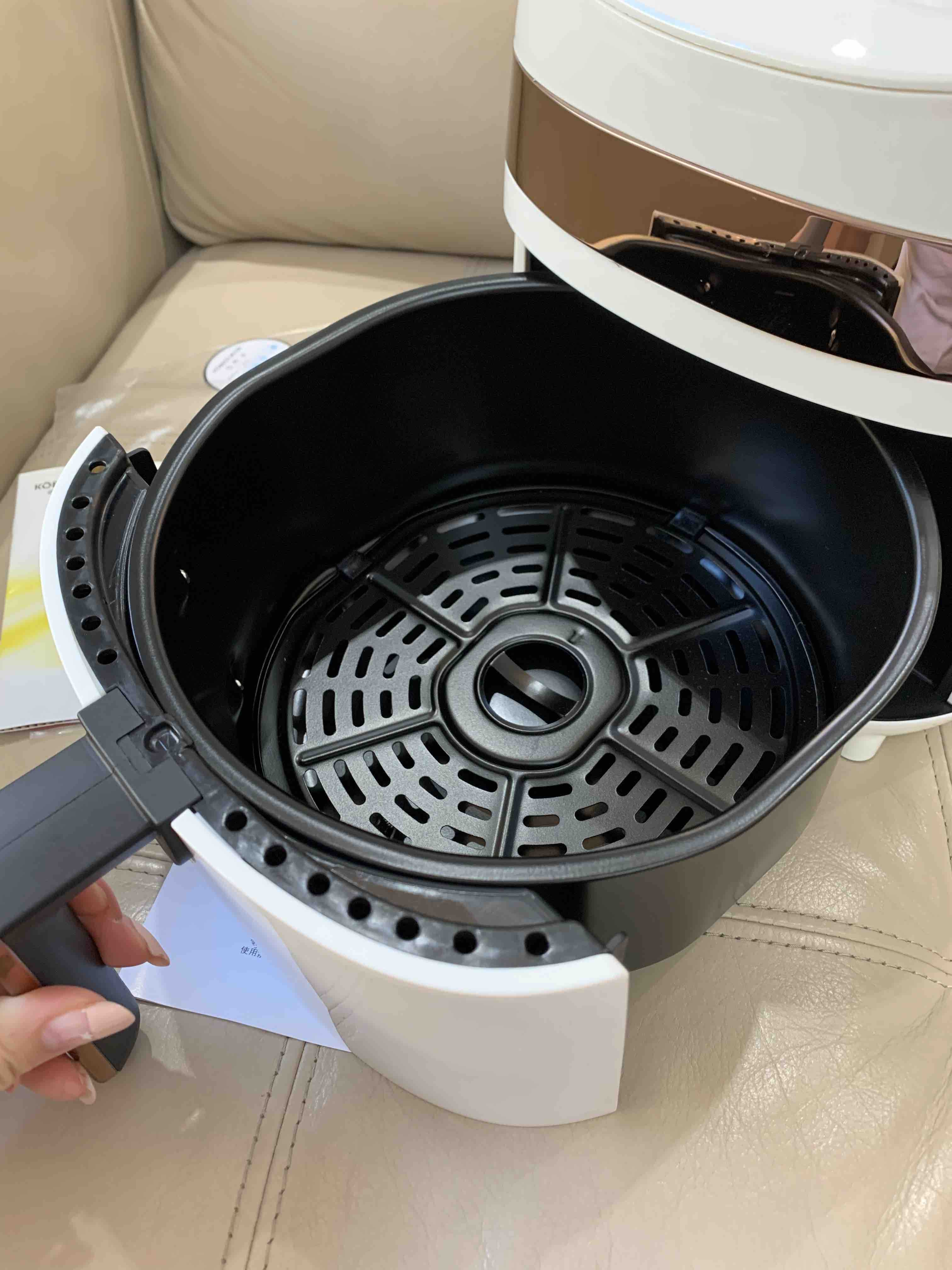 其实我手上已经过了无数个空气炸锅,一打开就塑料味很呛人的就不在少数,所以我迟迟没能上。今天的康巴赫用的很愉快,用的顺手没有异味。3.5L大容量,象牙白,家庭用起来十分惬意。