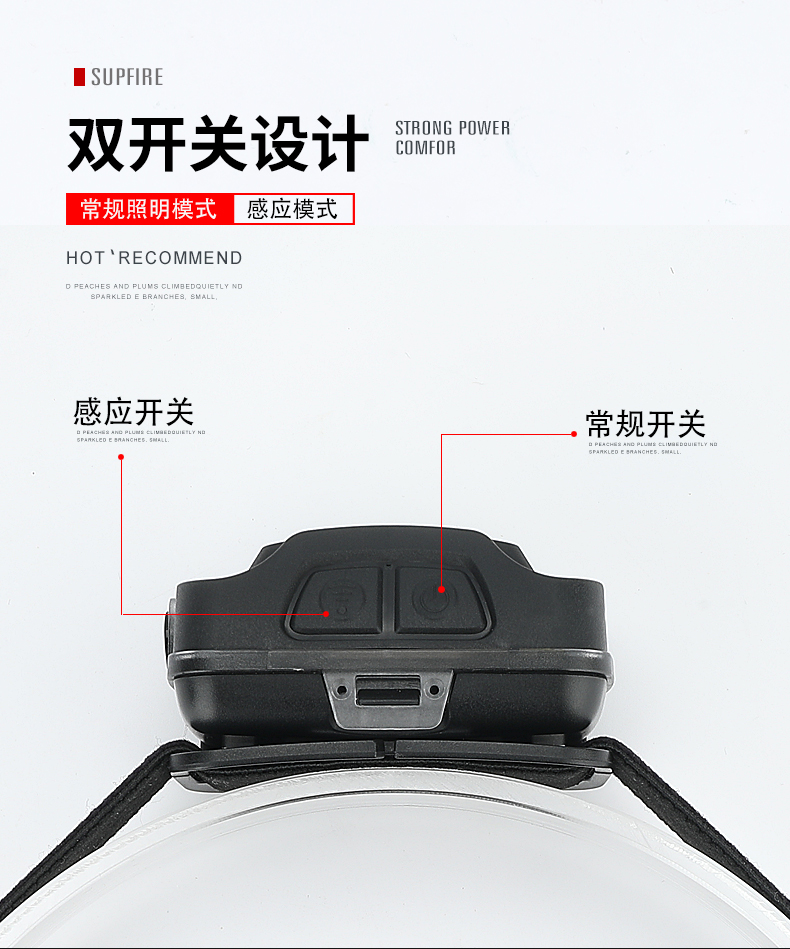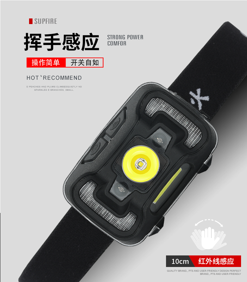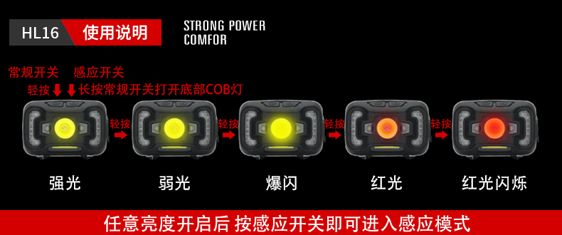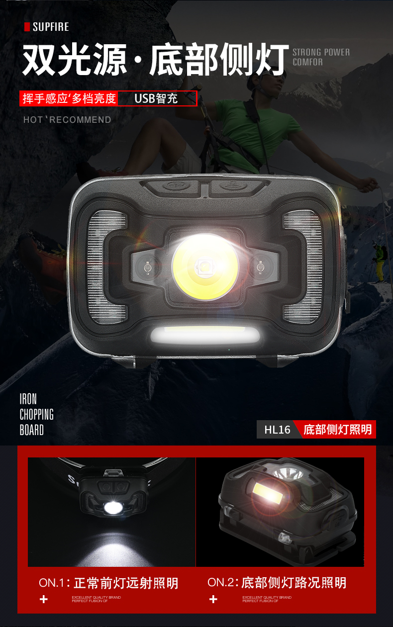 SUPERFIRE神火HL16头灯感应强光头戴式钓鱼灯led可充电超亮迷你户外夜钓灯