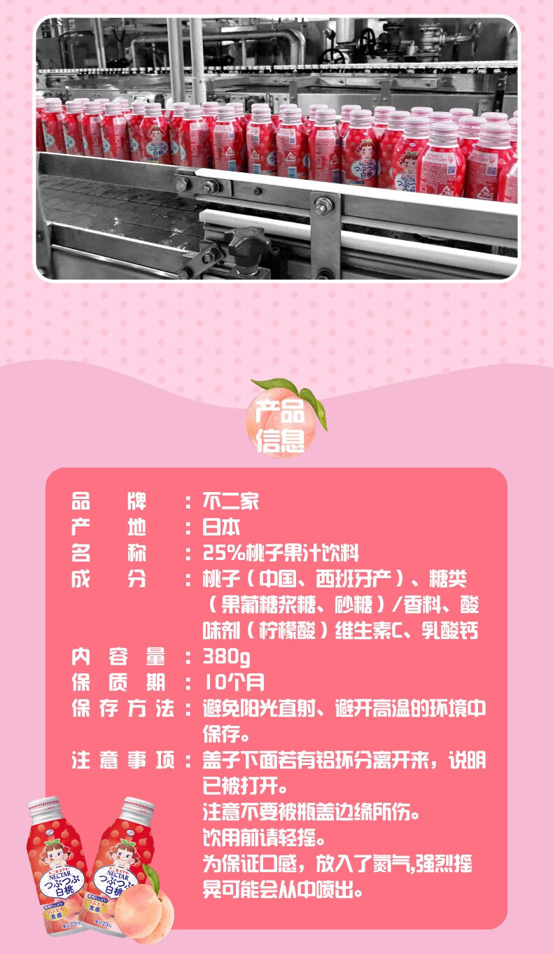 不二家白桃果汁饮料380ml/020516 果味浓郁细腻甘甜