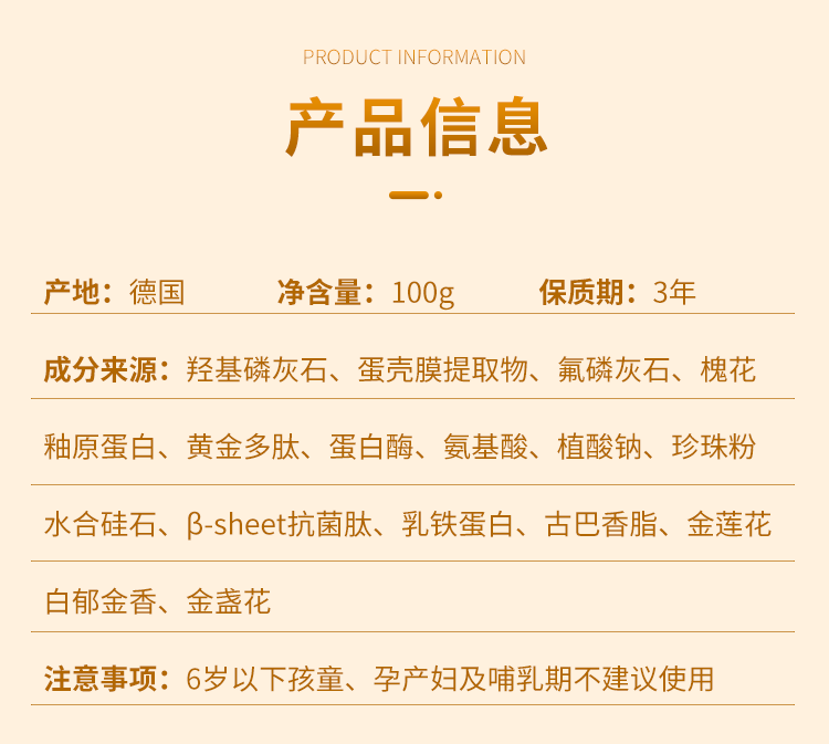 【品名】德国Aufna奥夫纳 鎏金修护牙膏 3支/5支装 温和清爽 净味飘香 【规格】100g/支 【产地】德国 【保质期】3年 【发货包装】独立包装盒 【发货地】河南 【发货快递】中通,圆通 【不发货区域】港澳台 【补邮费地区】新疆,西藏+15元 【发货时效】48-72小时,周末节假日顺延 |