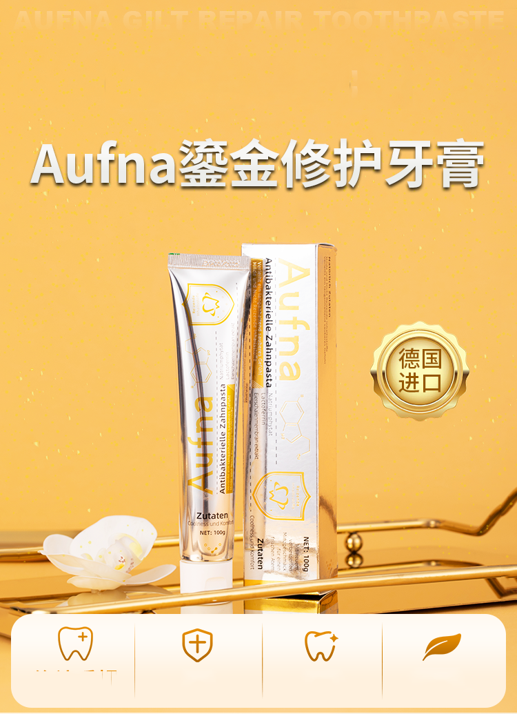 德国Aufna奥夫纳 鎏金修护牙膏 小金管牙膏 3支/5支装 温和清爽 净味飘香 100g/支