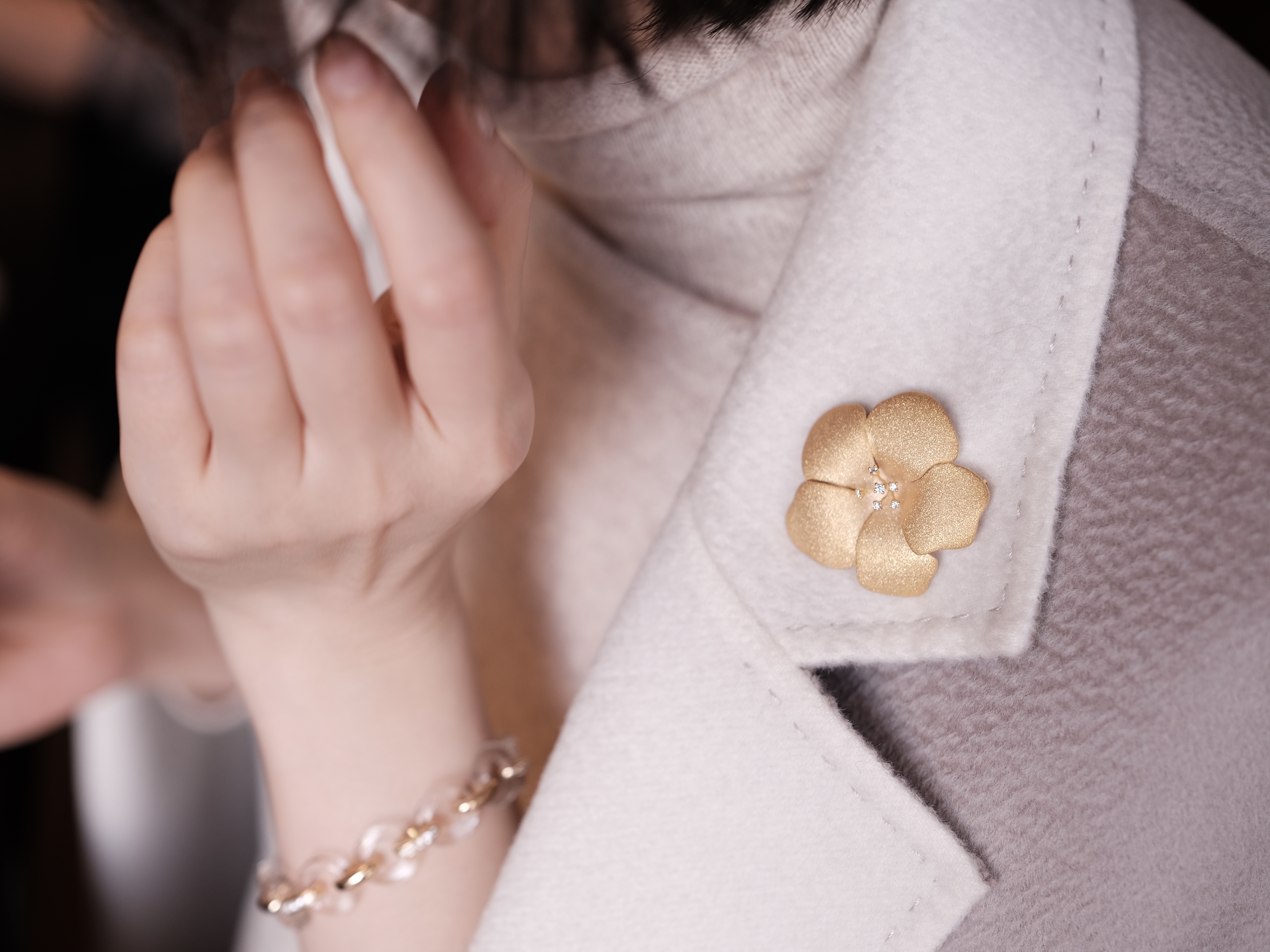18K金 黄金磨砂工艺 山茶花造型