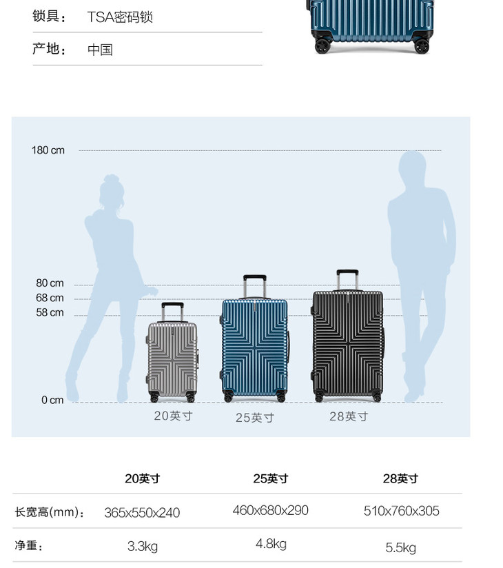 新秀丽经典拼接条纹旅行箱 细窄铝框结构 安全升级PC材质拉杆箱 GV5