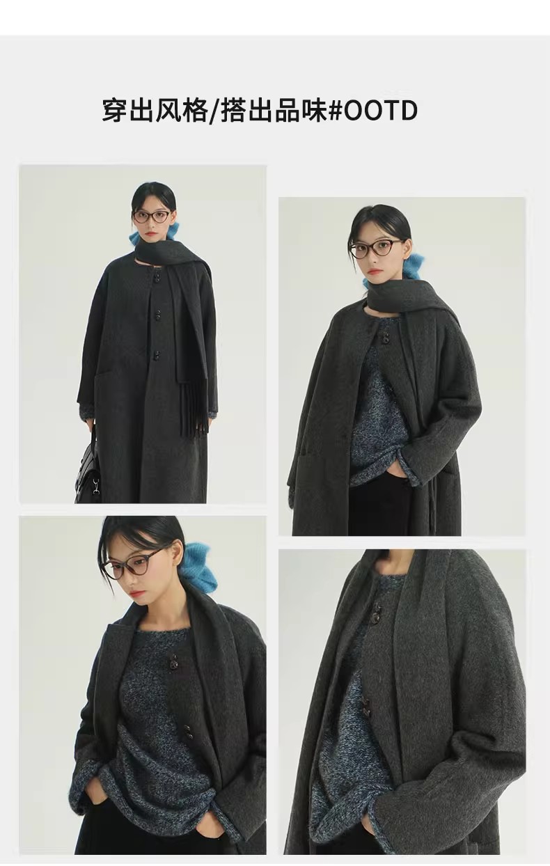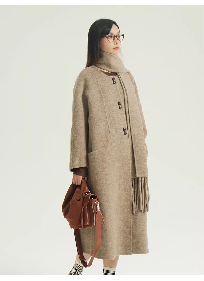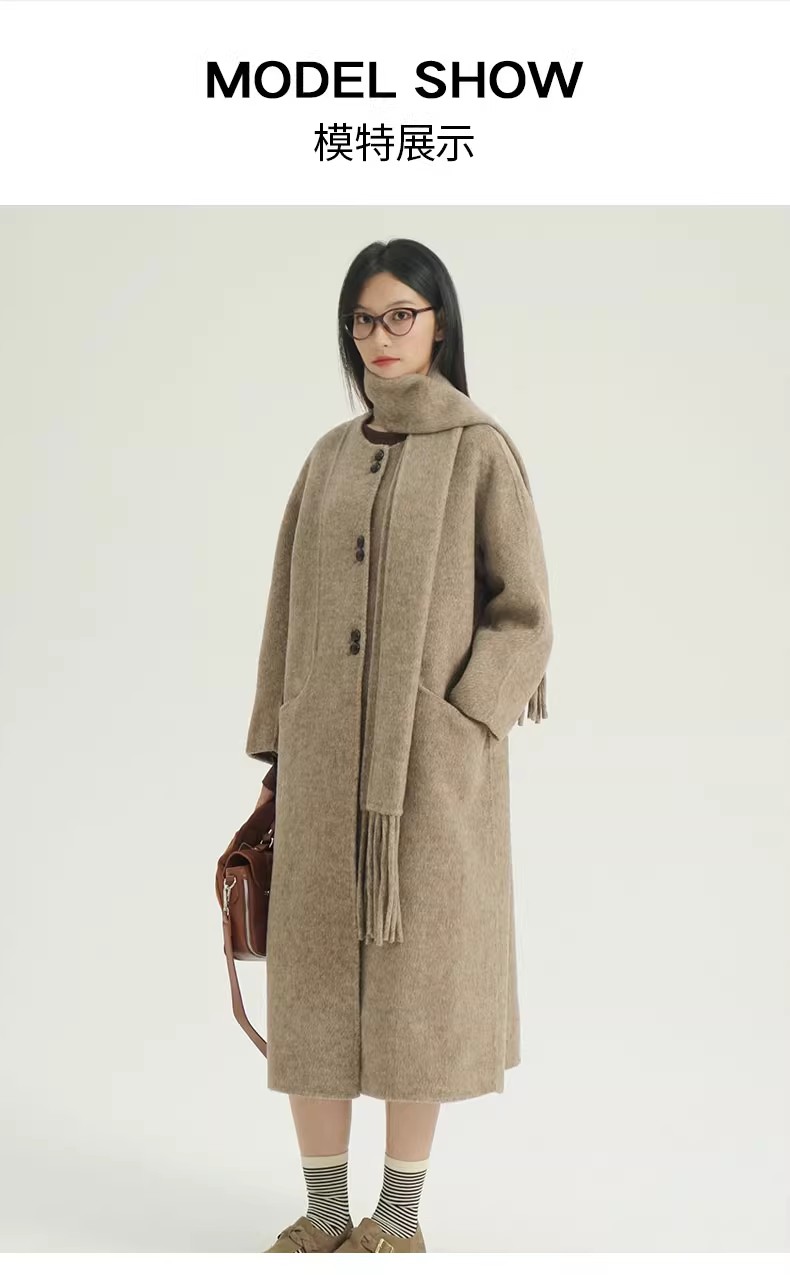 【门店同款】ENJOY冬季柔韧与共流苏围巾韩系大衣 159495279