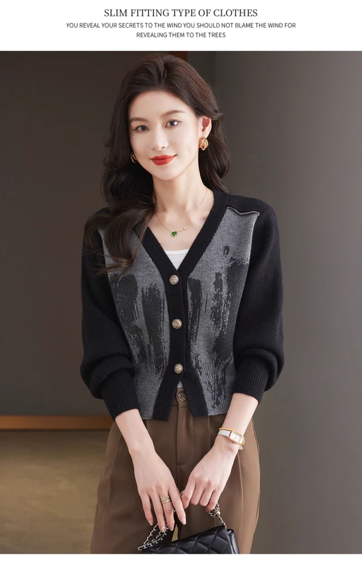 港风针织衫开衫,外搭高腰短款披肩小外套CC- 27-24137