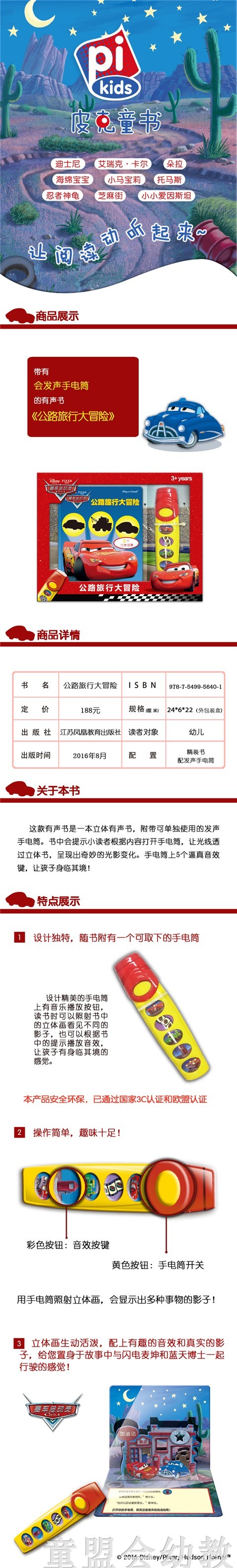 pi?kids品牌打造,迪士尼公司授权,产品畅销欧美等多个国家和地区;国际印制标准,产品由迪士尼公司指定印刷厂加工印制。