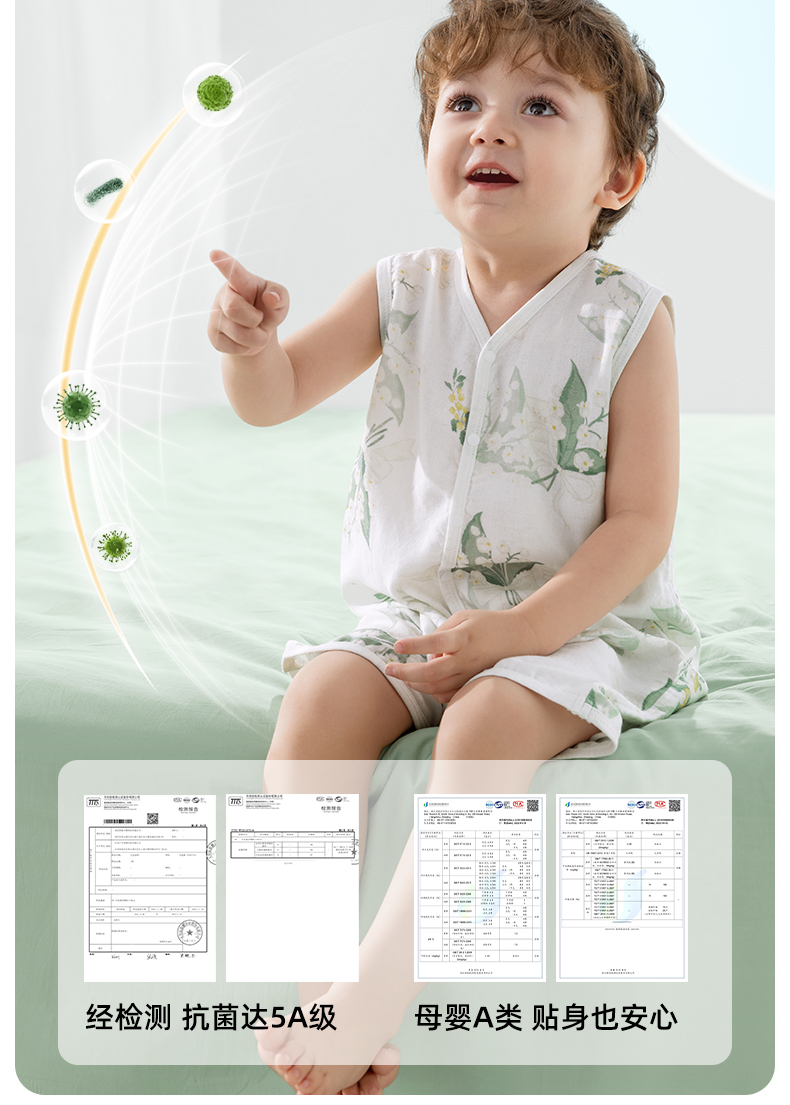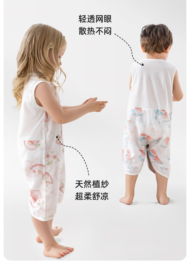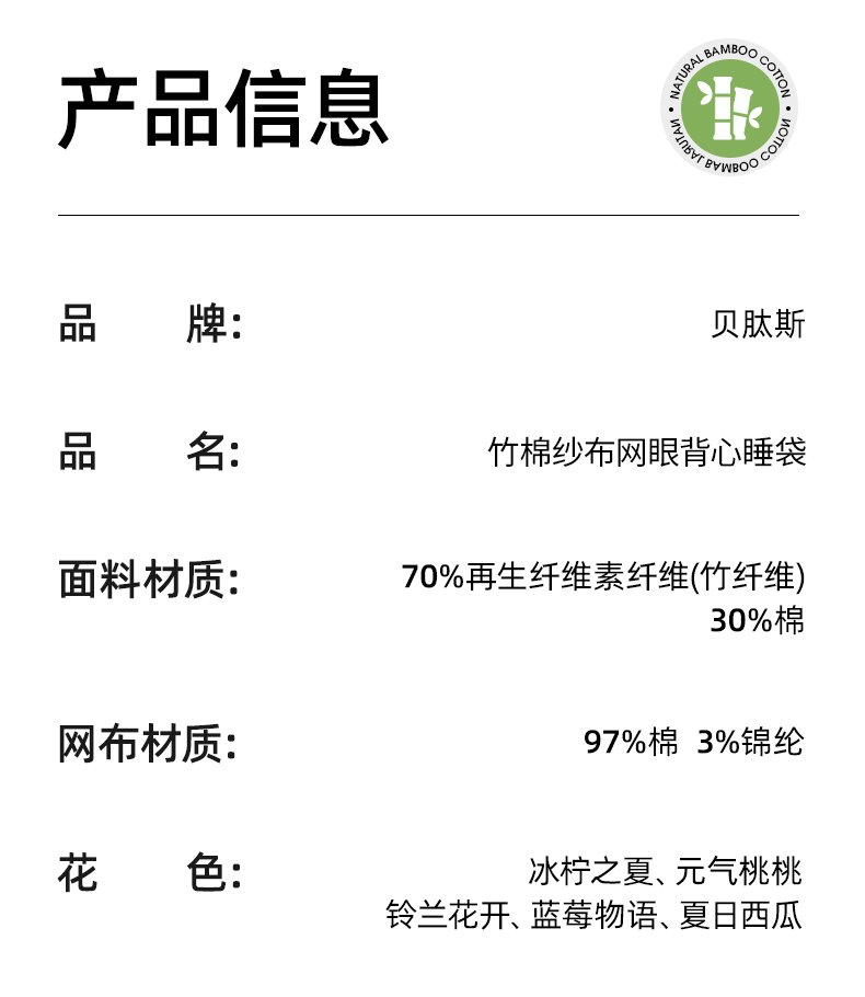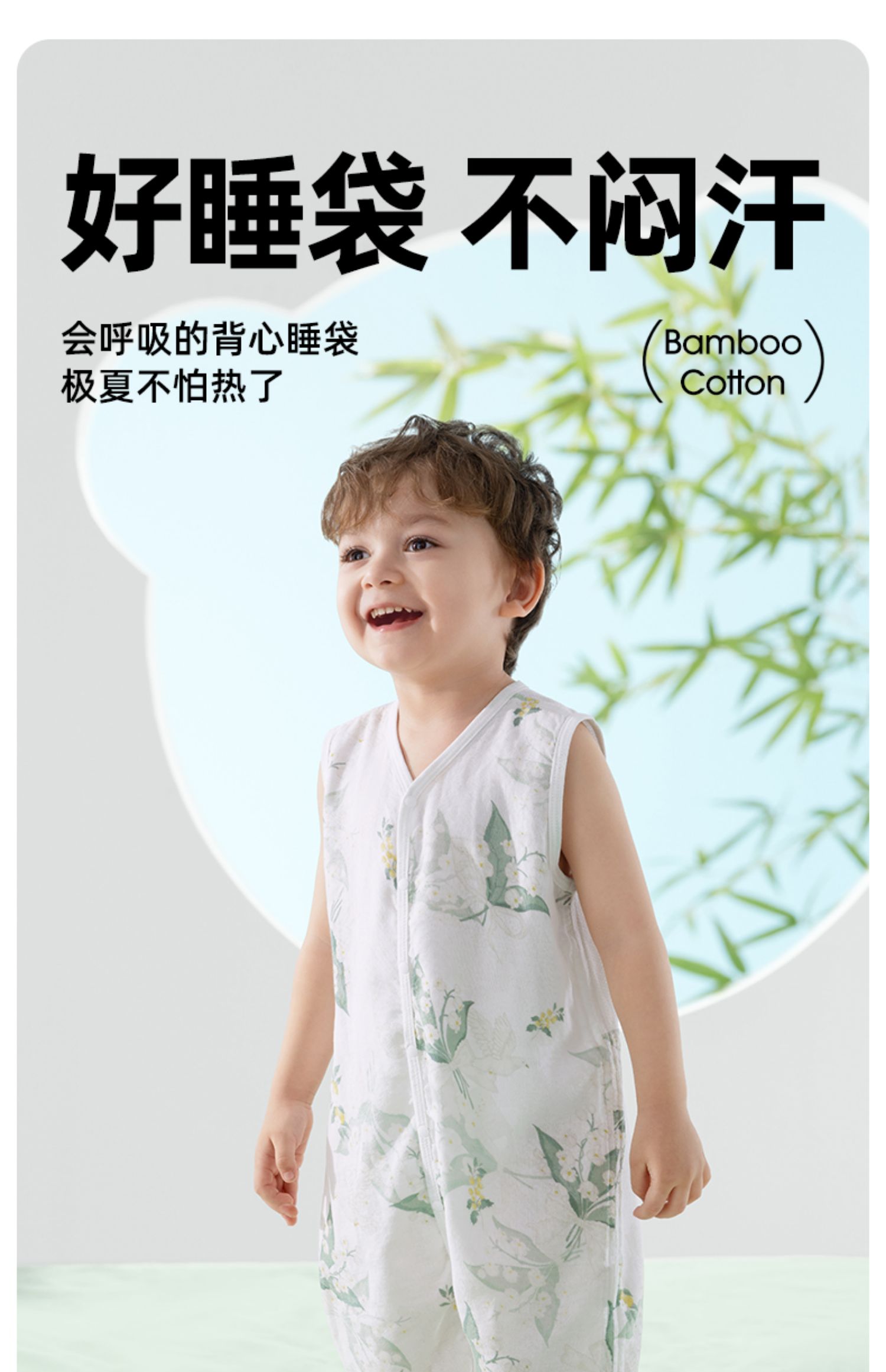 贝肽斯婴儿睡袋夏季竹棉纱布宝宝无袖背心式睡衣儿童防踢被子神器