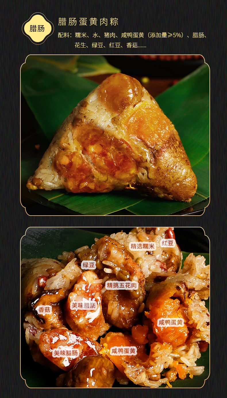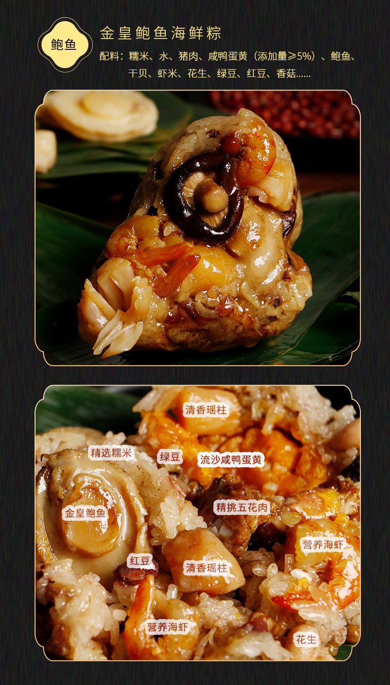 【潮汕粽子肉粽礼盒装】蛋黄鲍鱼粽子 潮州特产 广东手工大肉粽端午礼品 送朋友家人