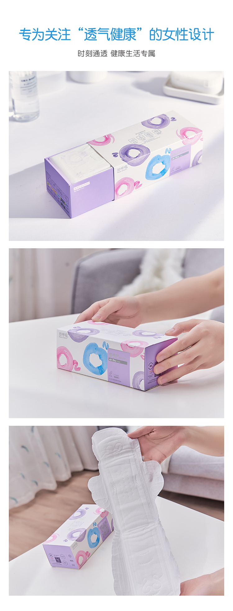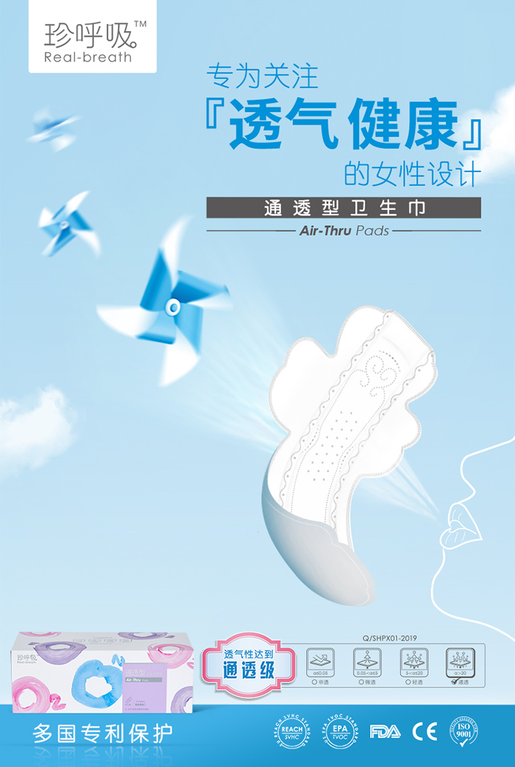 珍呼吸超长夜用卫生巾410mm*4片通透型量多防漏安心加长大姨妈巾
